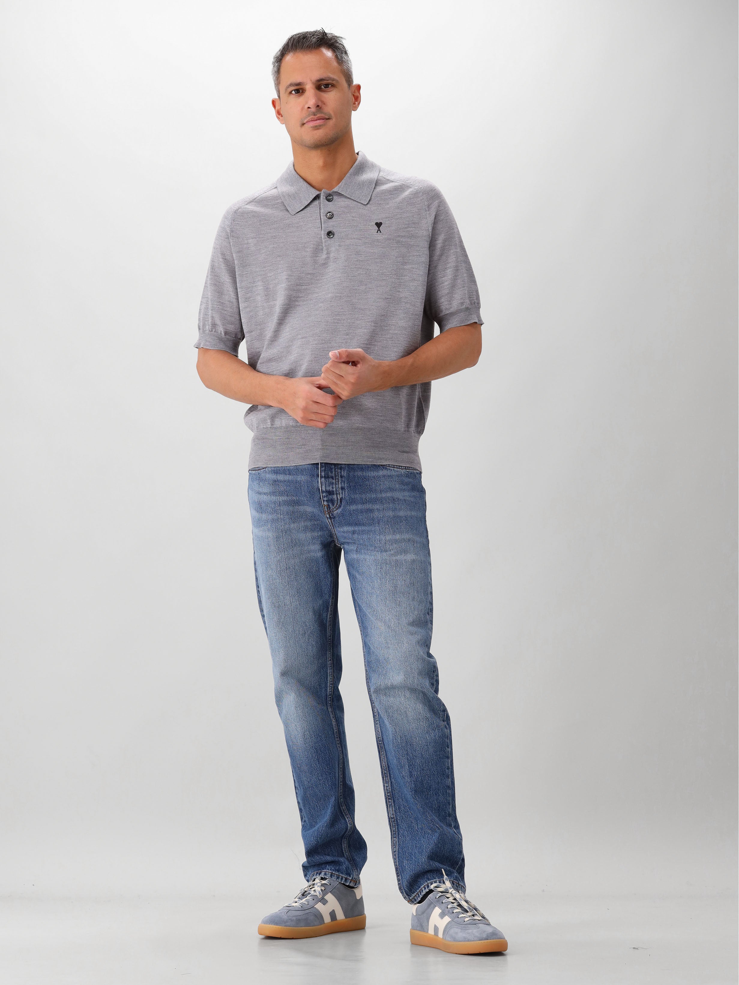 AMI Paris Gebreide Polo Grijs ADC
