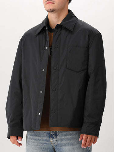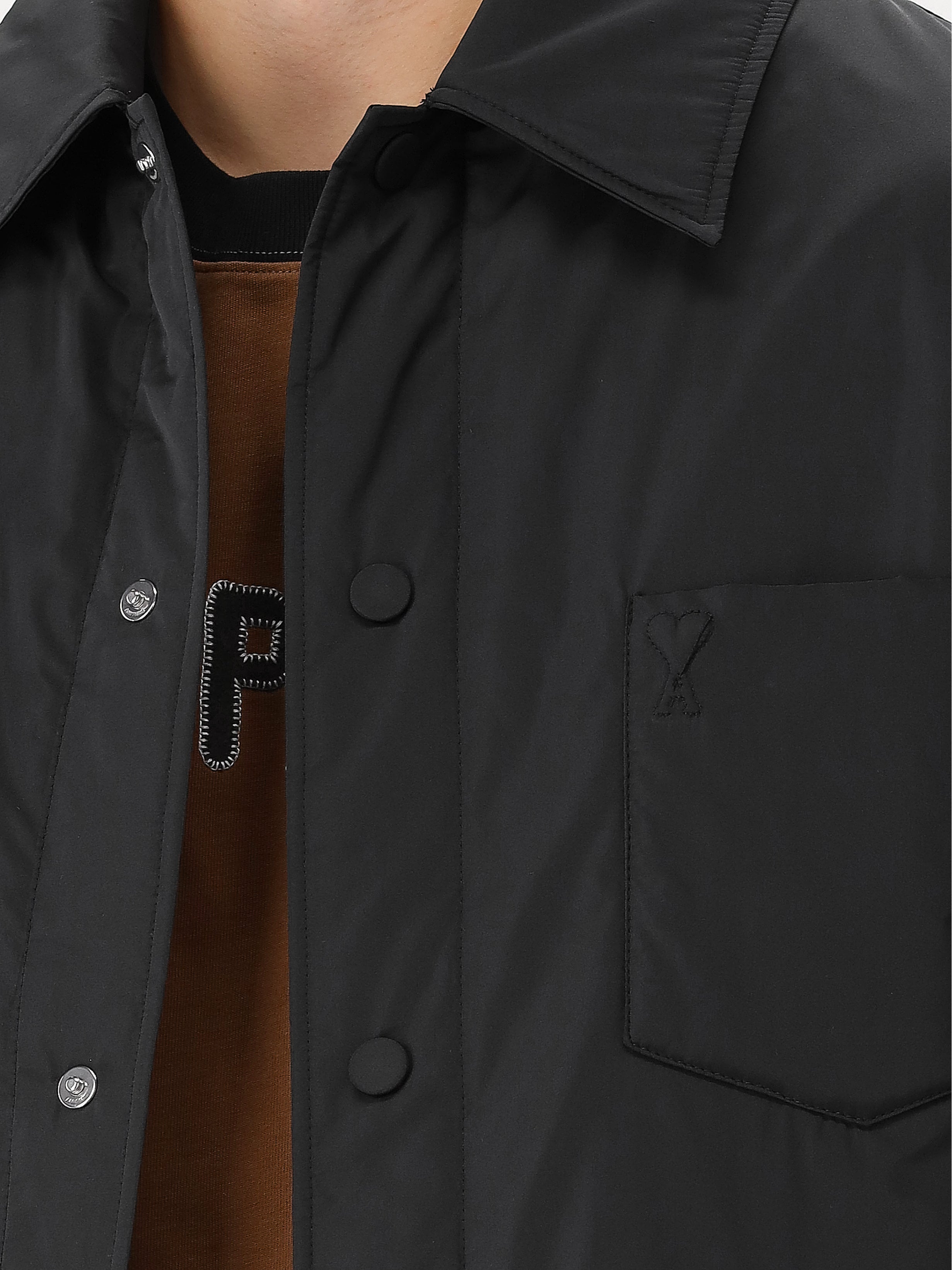 Dit met polyester gevulde overshirt van AMI Paris heeft een understated look. Op de borst vind je een heel klein logo terug. Het overshirt wordt met een knoopsluiting gesloten.