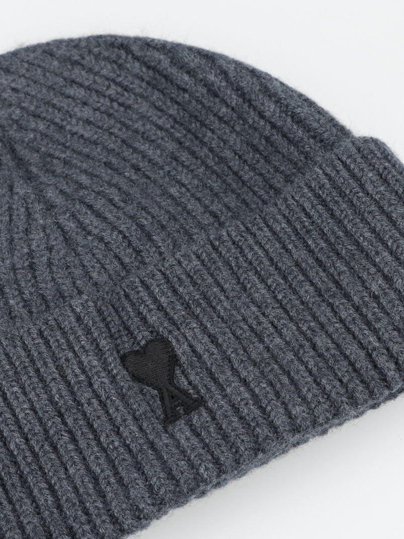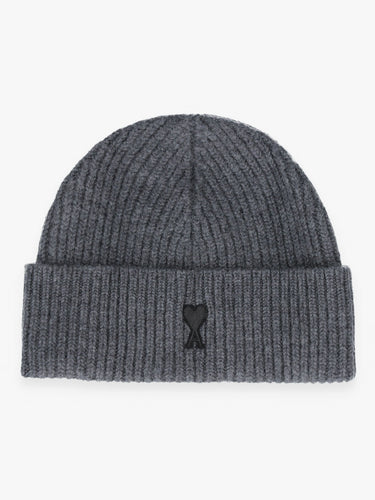 Kies deze grijze muts van AMI Paris. De muts bestaat voor 100% uit onbewerkte wol. Op de voorzijde vind je het merklogo in een zwarte kleur terug.