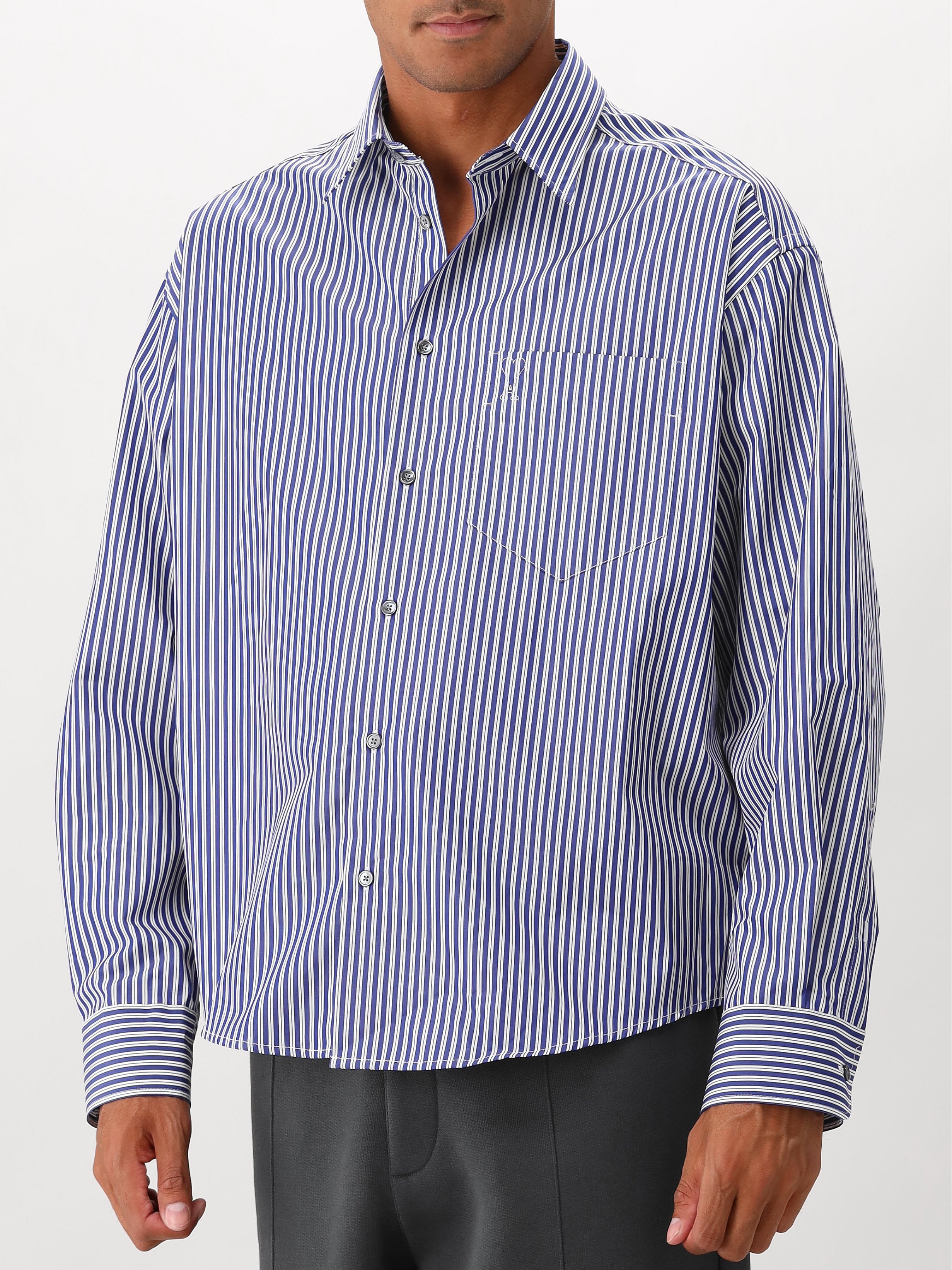 Kies voor dit oversized overhemd van AMI Paris. Het overhemd heeft een boxy fit, over het hemd vind je verticale strepen. Het overhemd is tijdloos en stijlvol.