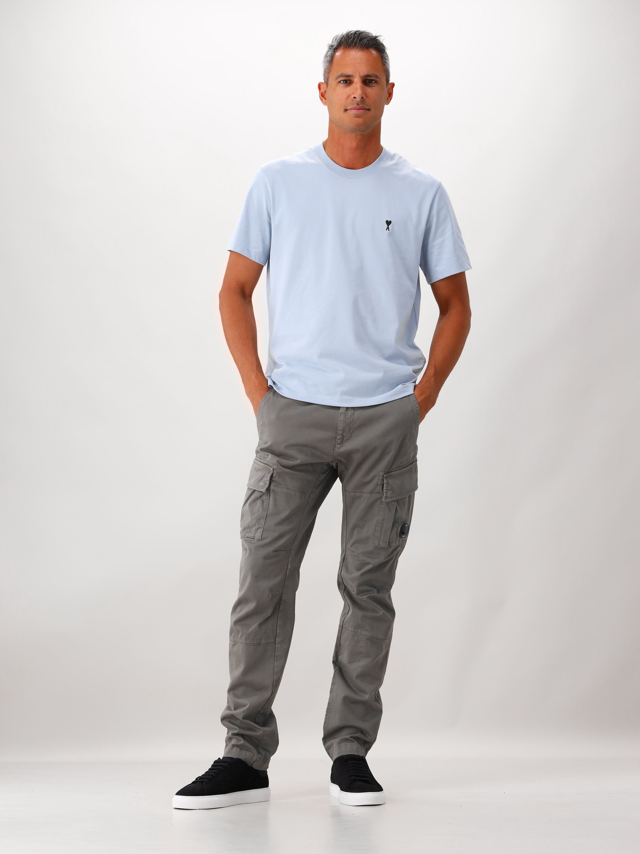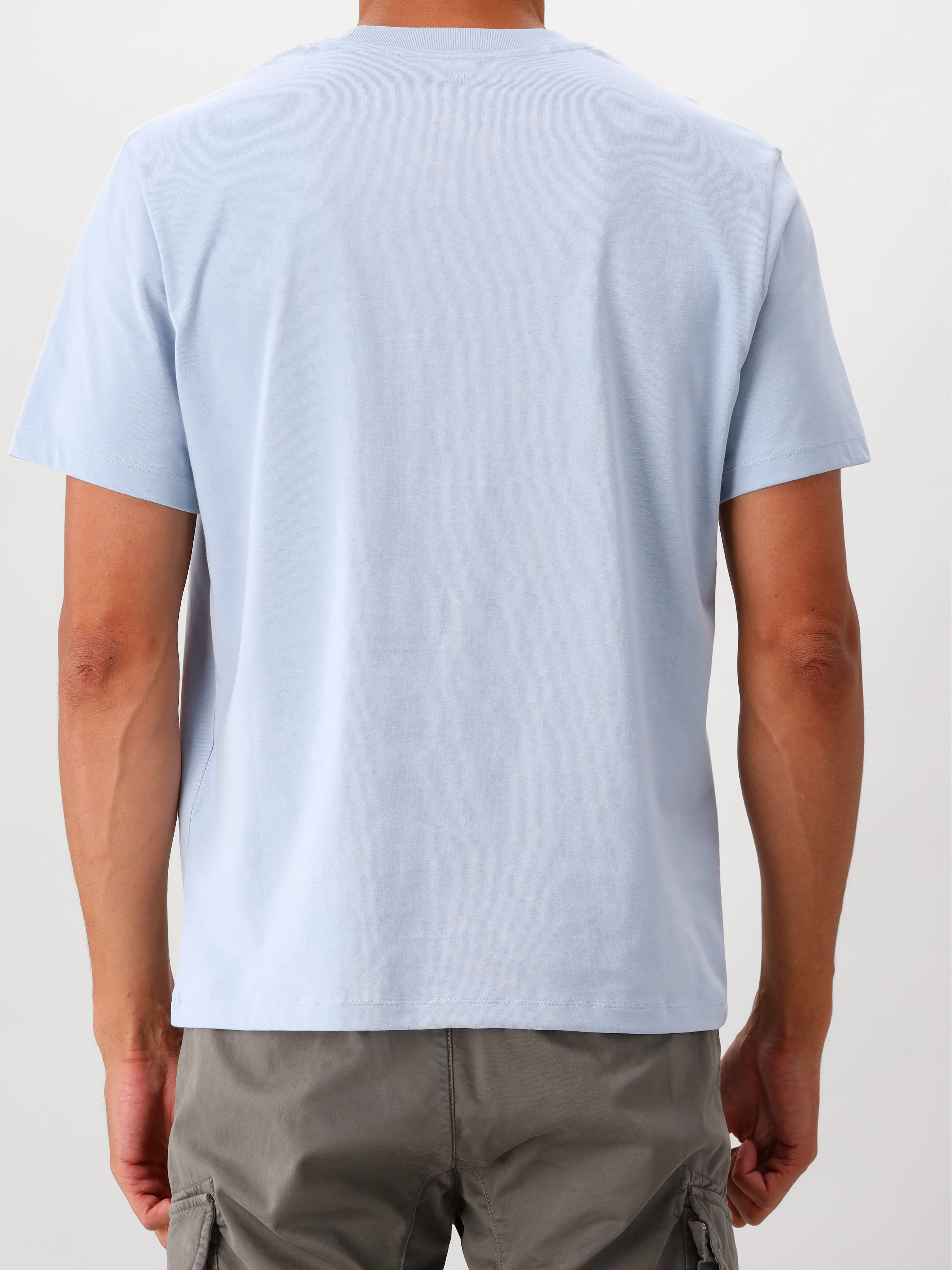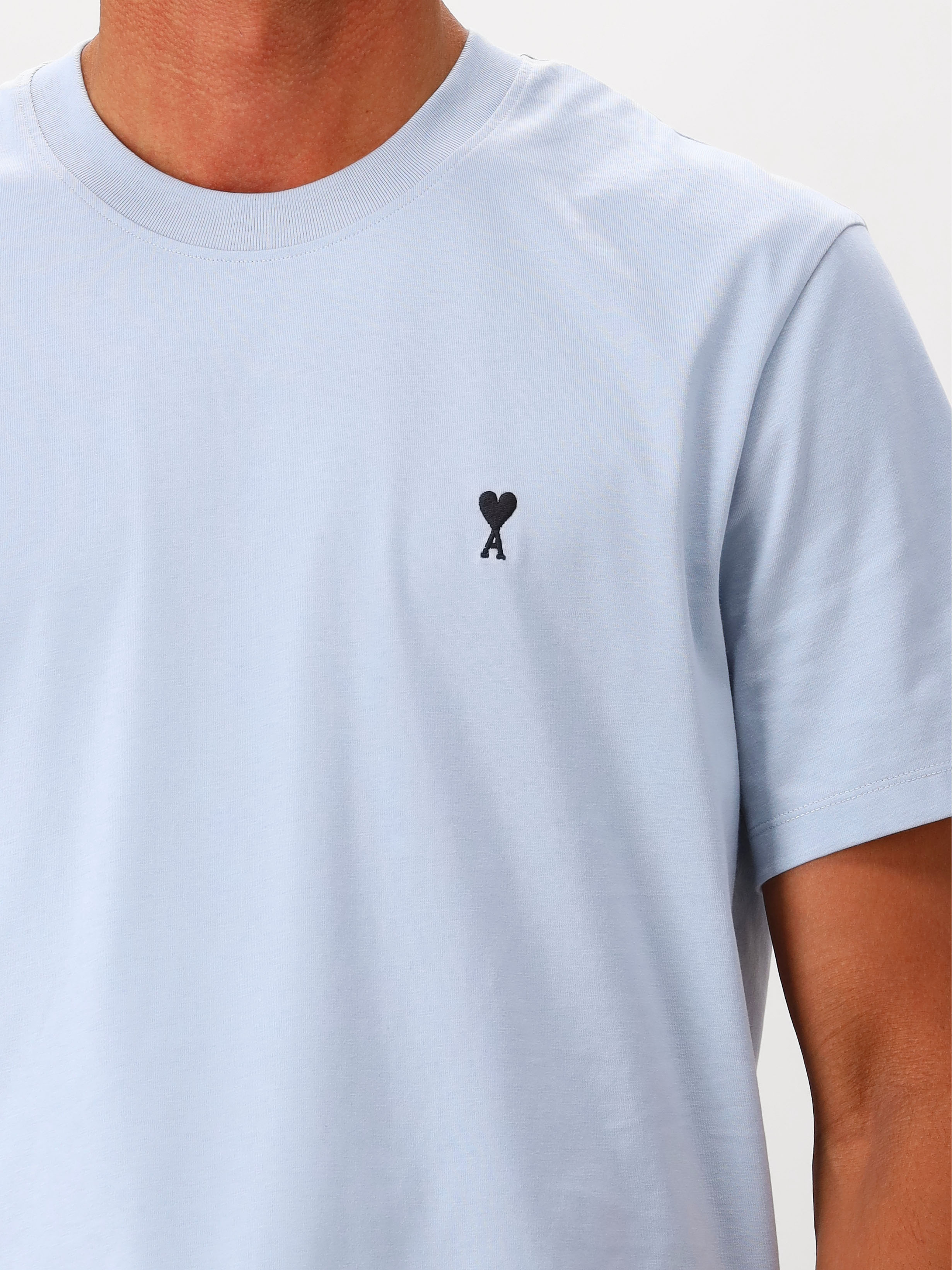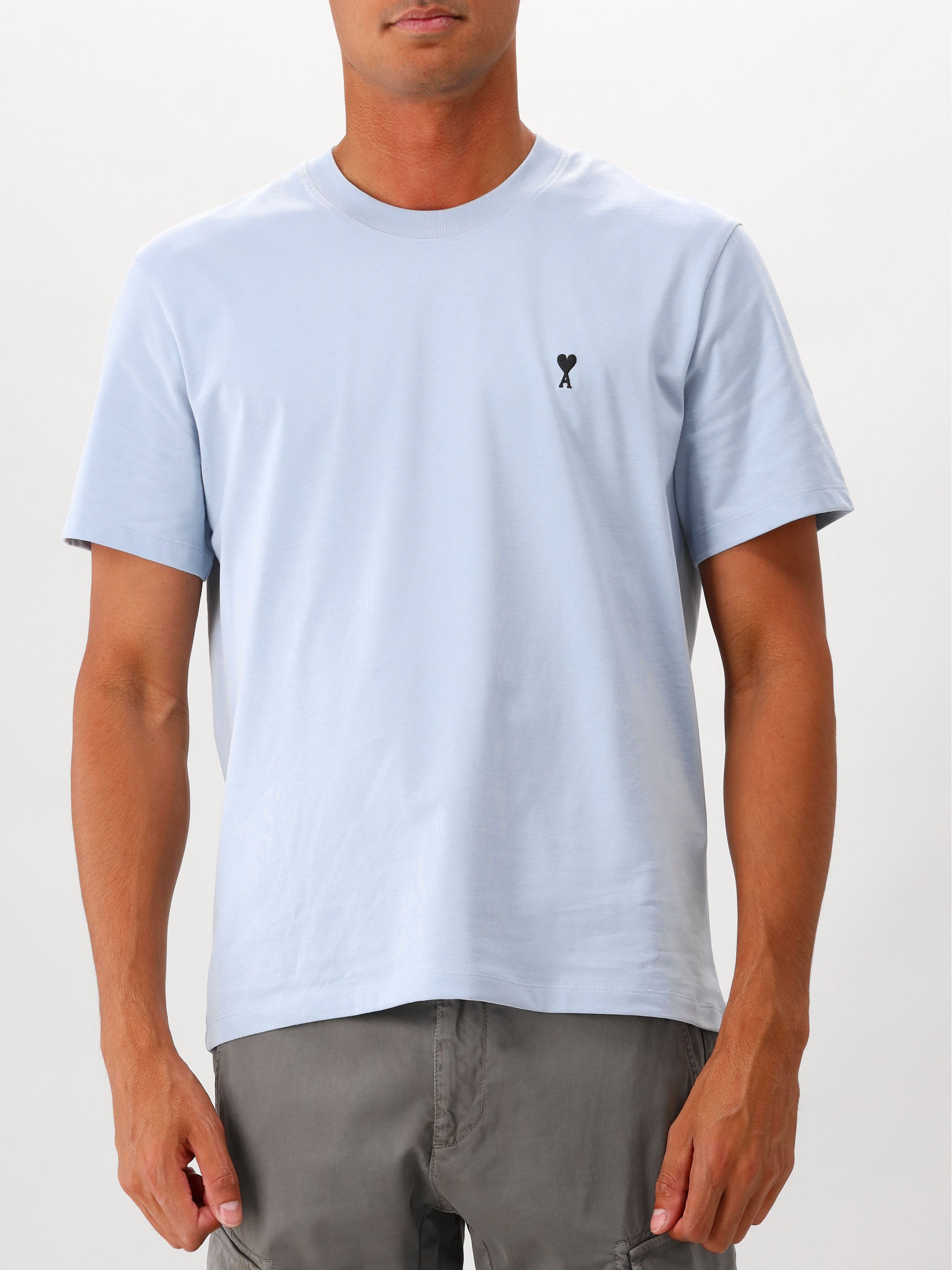 Lichtblauw T-shirt van AMI Paris. Op de borst zie je het merklogo van AMI Paris, geborduurd in het zwart. Het shirt heeft een regular fit en is gemaakt van 100% katoen. Shop dit shirt ook in andere kleuren!