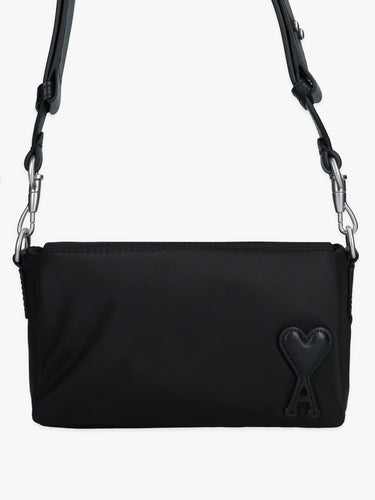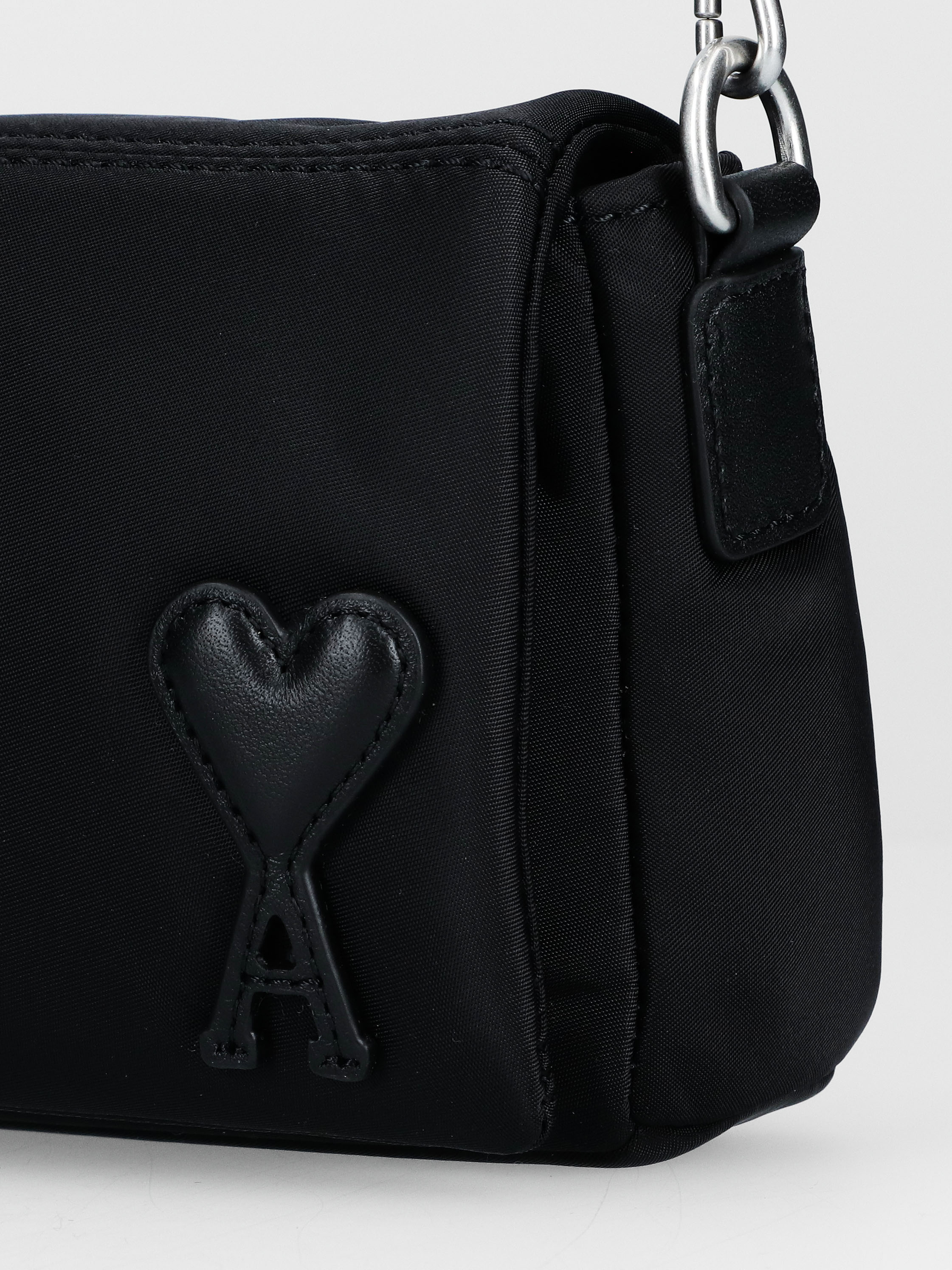 Kies voor deze zwarte schoudertas van AMI Paris. De tas wordt gesloten met een magneetsluiting, en is hierom erg handzaam! Op de voorzijde vind je een groot logo van AMI Paris terug in het leer. De tas kan op meerdere punten versteld worden op een juiste maat.