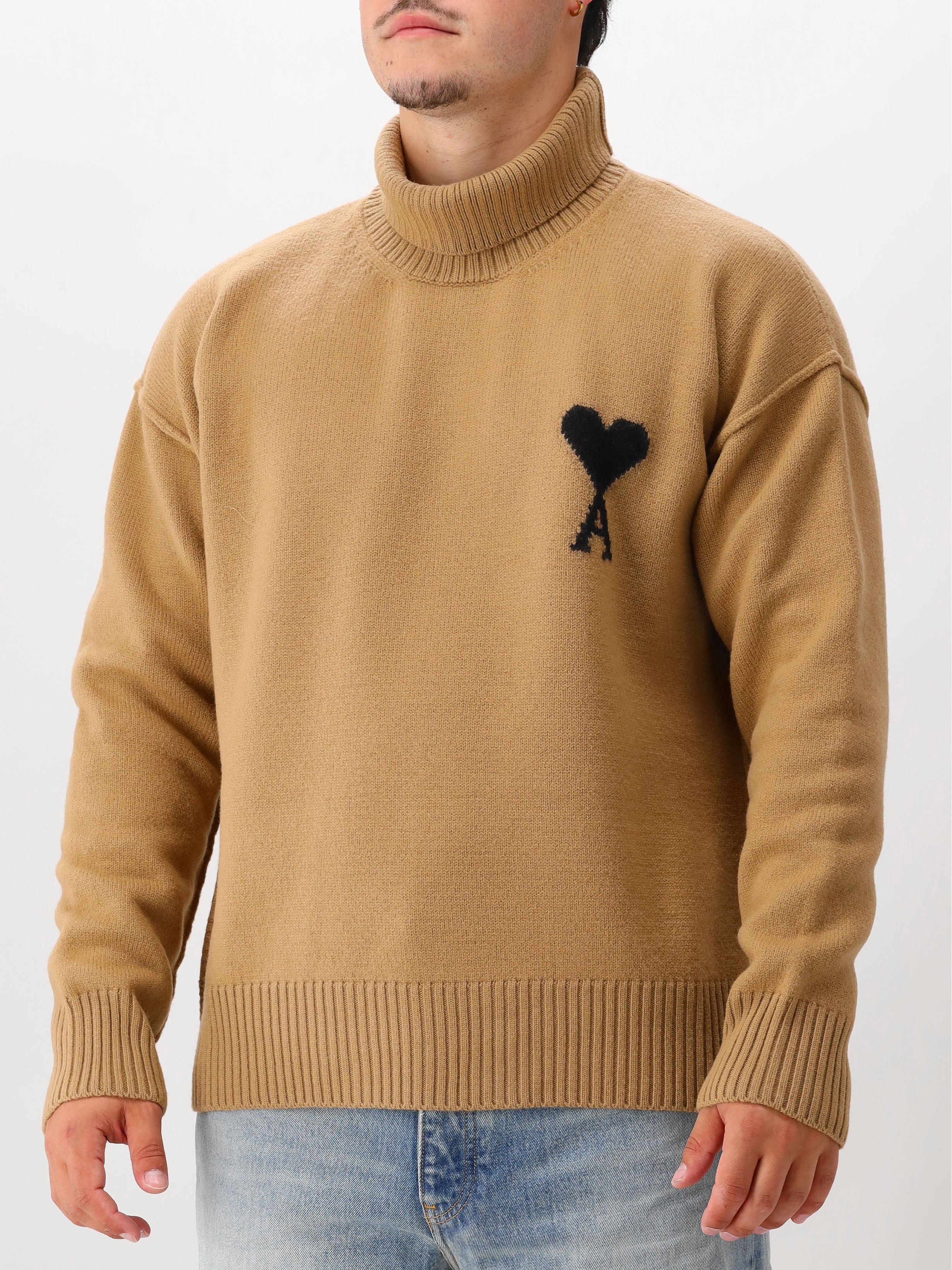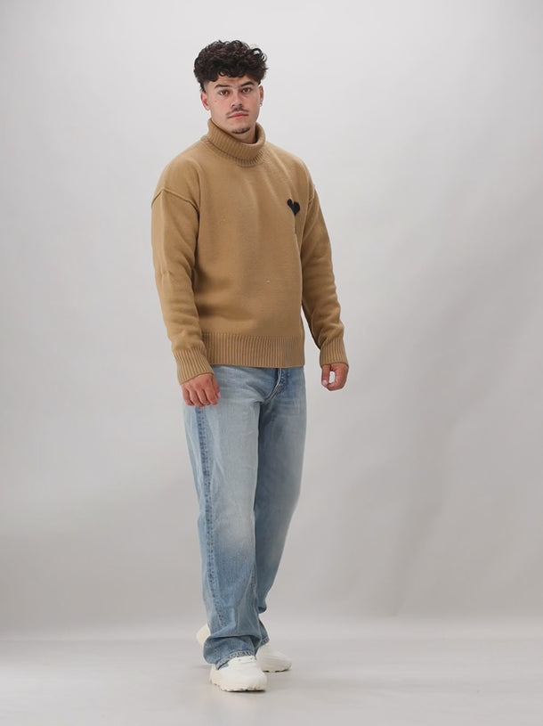 Deze gebreide trui van AMI Paris bestaat voor 100% uit onbewerkte wol. Op de borst vind je het logo van AMI Paris in een zwarte kleur terug. De bruine kleur is leuk te combineren op verschillende broeken.