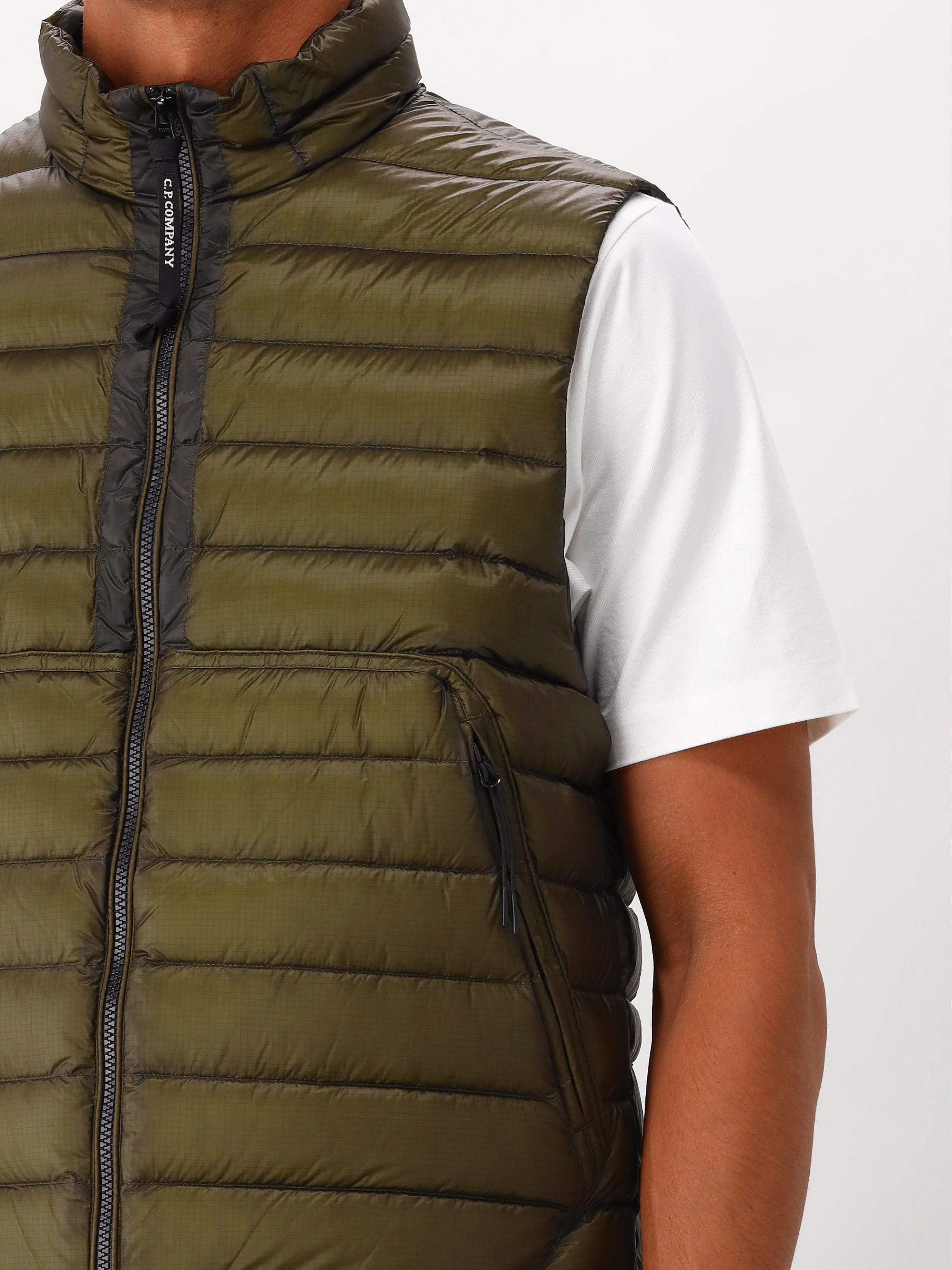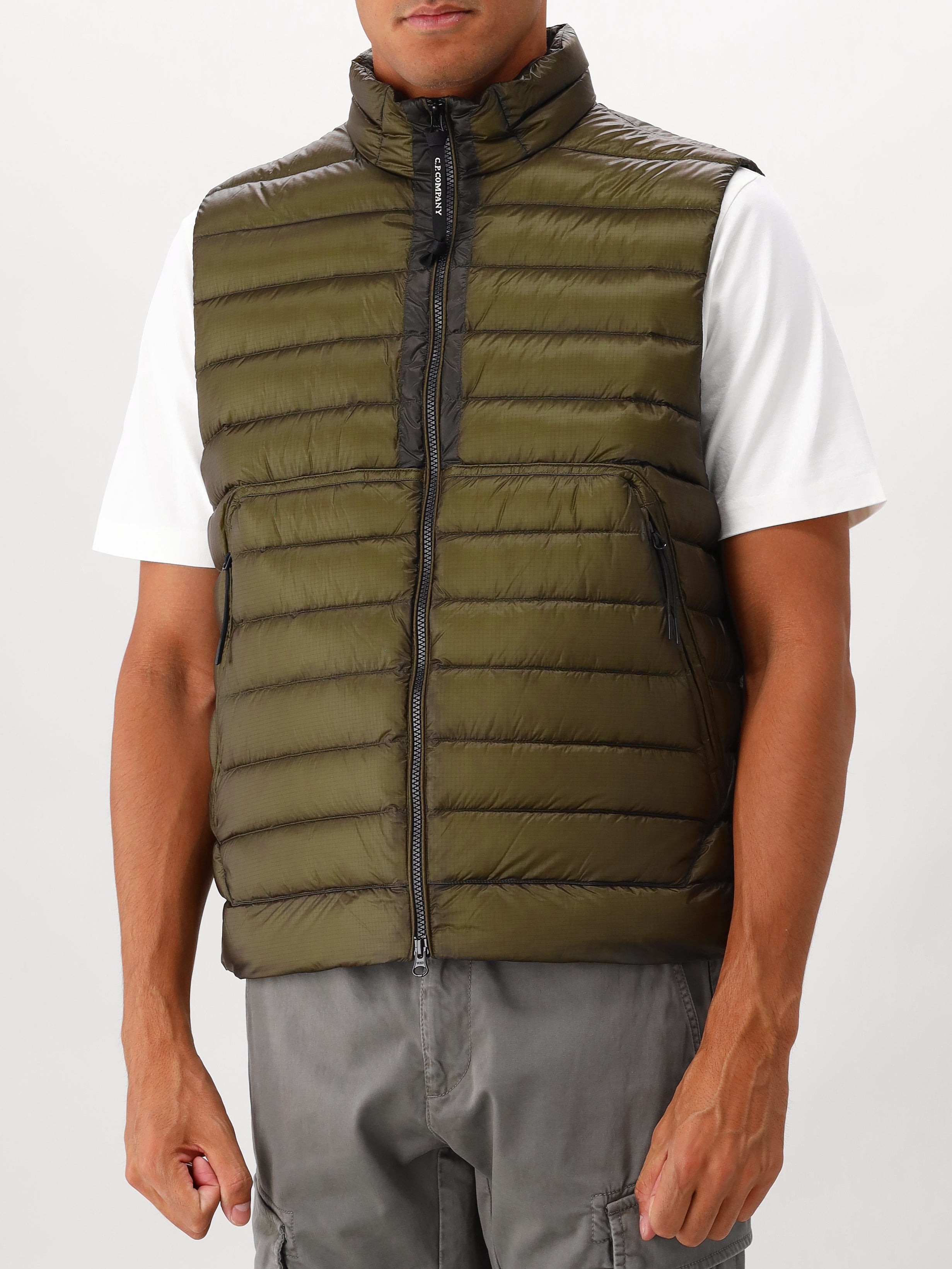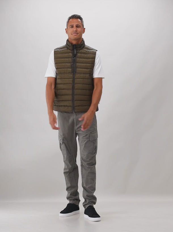 Shop deze groene bodywarmer van C.P. Company! De bodywarmer sluit met een rits en heeft twee ritszakken aan de voorkant. Hij is gevuld met dons en heeft een regular fit. Op de achterkant zie je de herkenbare merklens van C.P. Company.