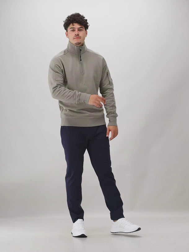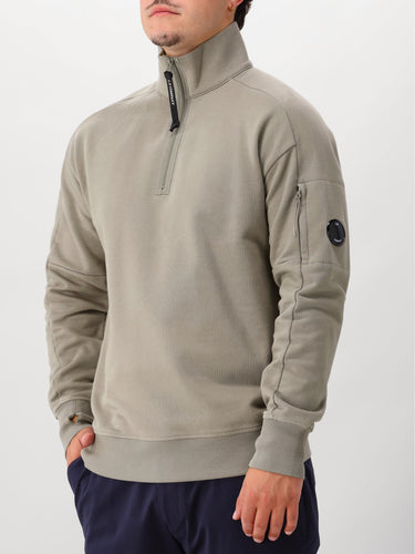 Deze groene sweater van C.P. Company bestaat voor 100% uit katoen. Op de linkermouw vind je de C.P. Company lens. De sweater heeft een halve rits, is stijlvol en tijdloos.