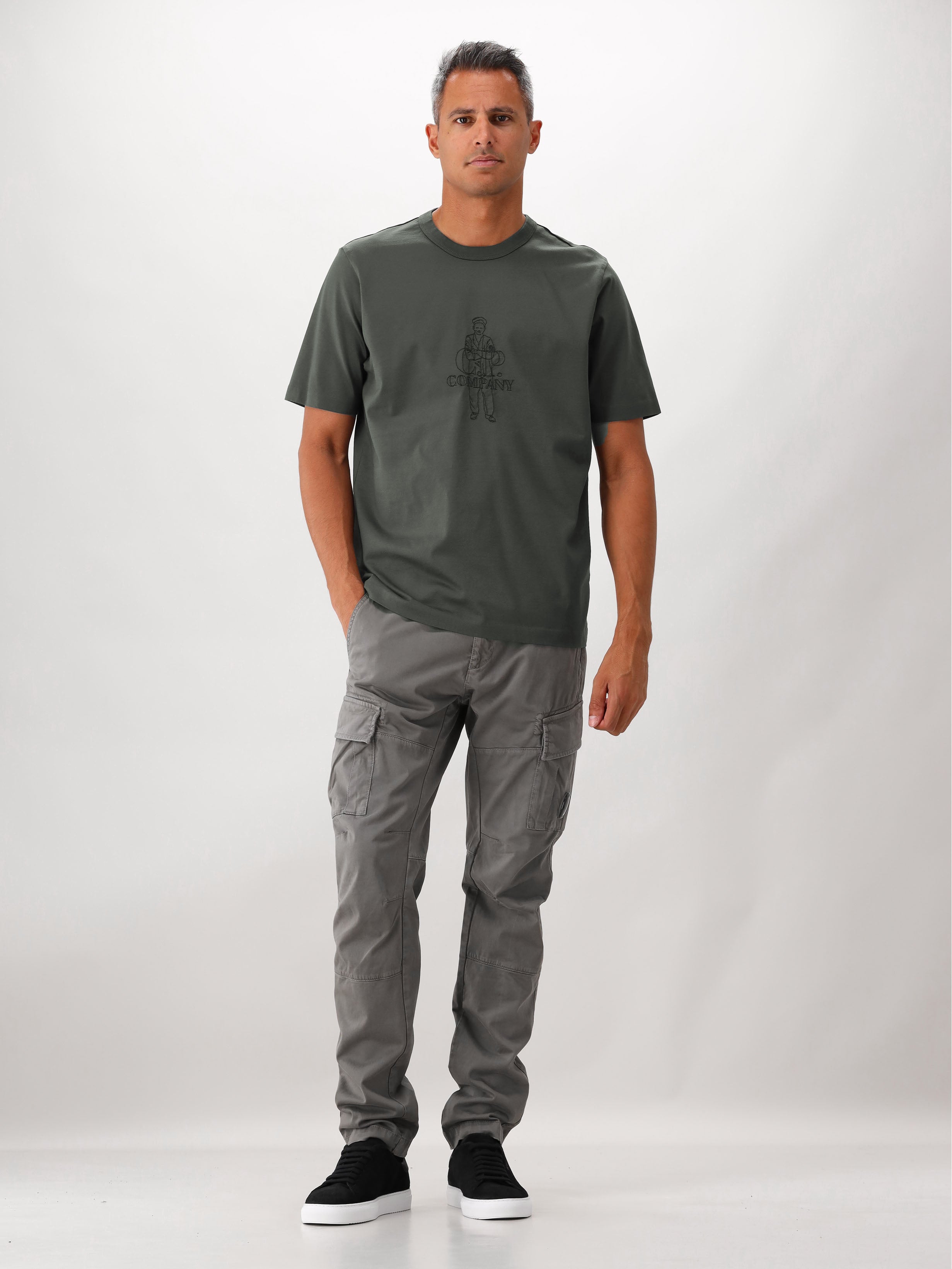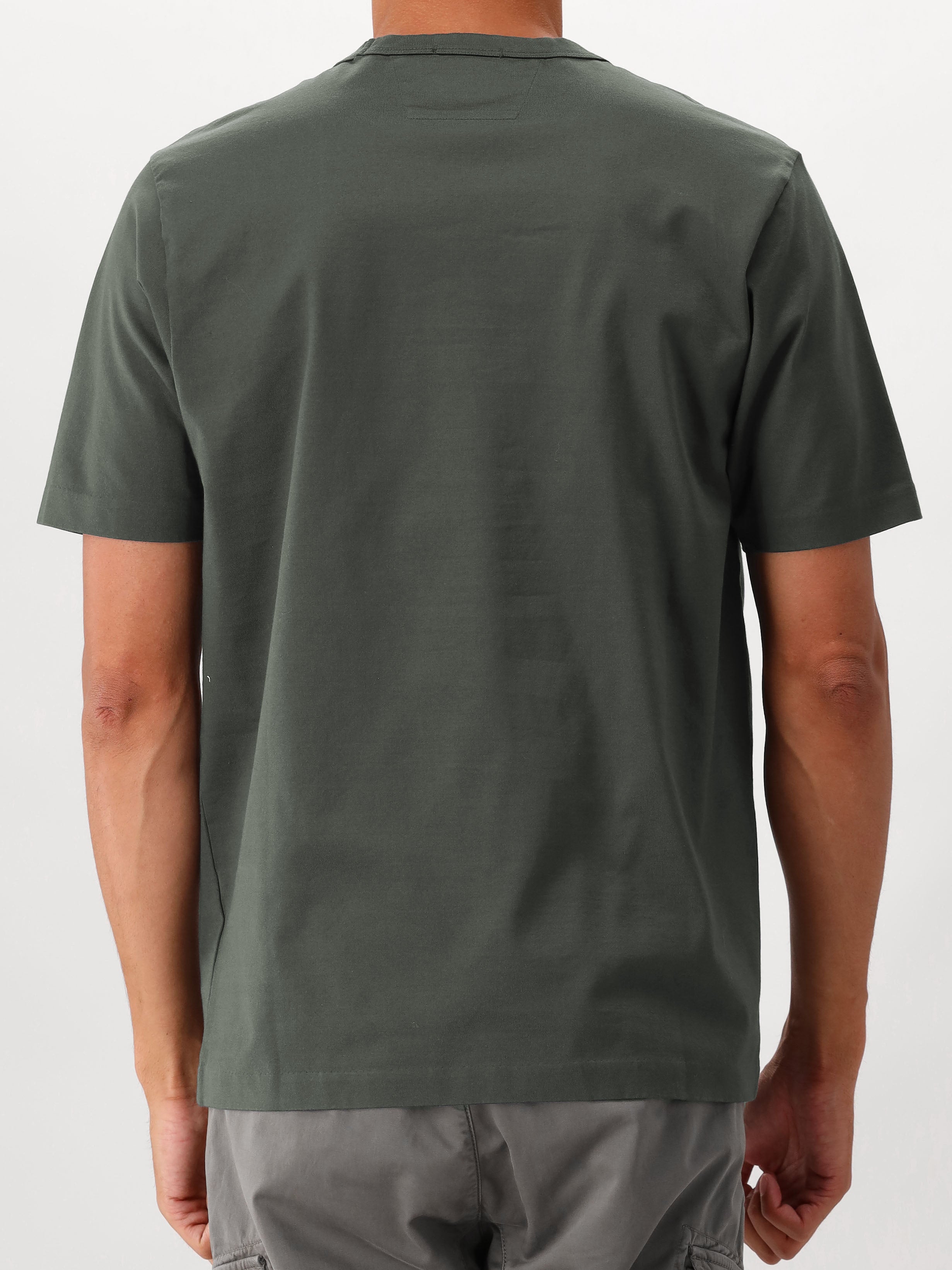 Shop dit donkergroene T-shirt van C.P. Company! Op de voorkant zie je een zwarte, geborduurde merkprint. Het shirt heeft een regular fit en een ronde hals. Het is gemaakt van 100% katoen en voelt stevig aan.