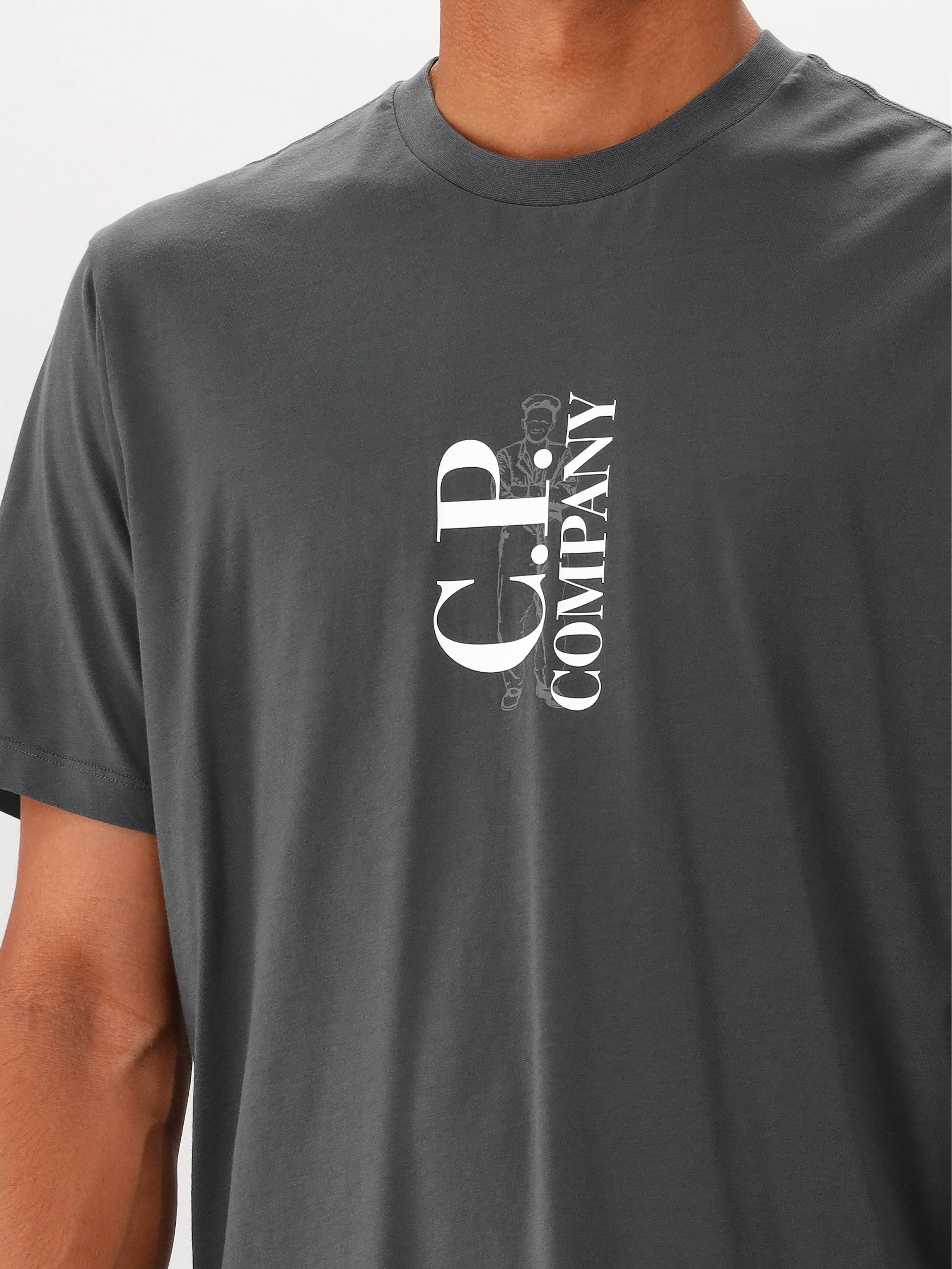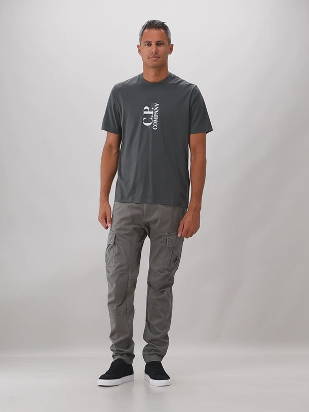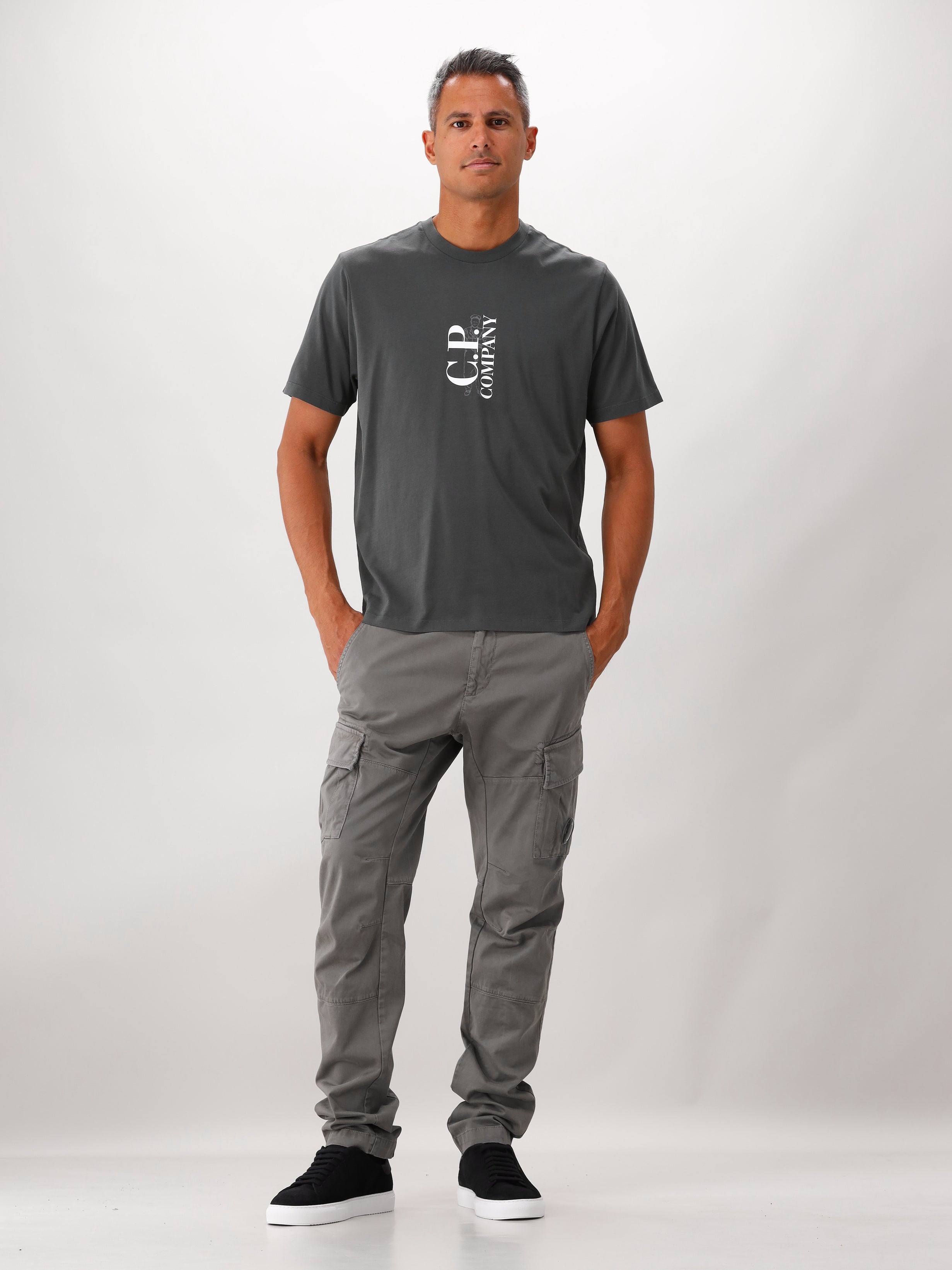Shop dit groen-grijze T-shirt van C.P. Company! Op de voorkant zie je het merklogo van C.P. Company, gedrukt in een witte kleur. Het shirt heeft een regular fit en een ronde hals. Gemaakt van 100% katoen en voelt zacht aan.