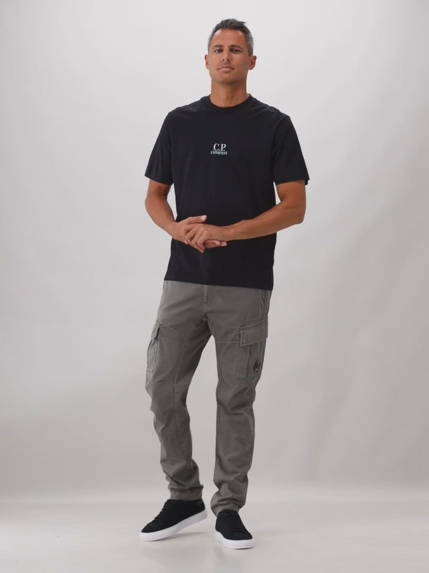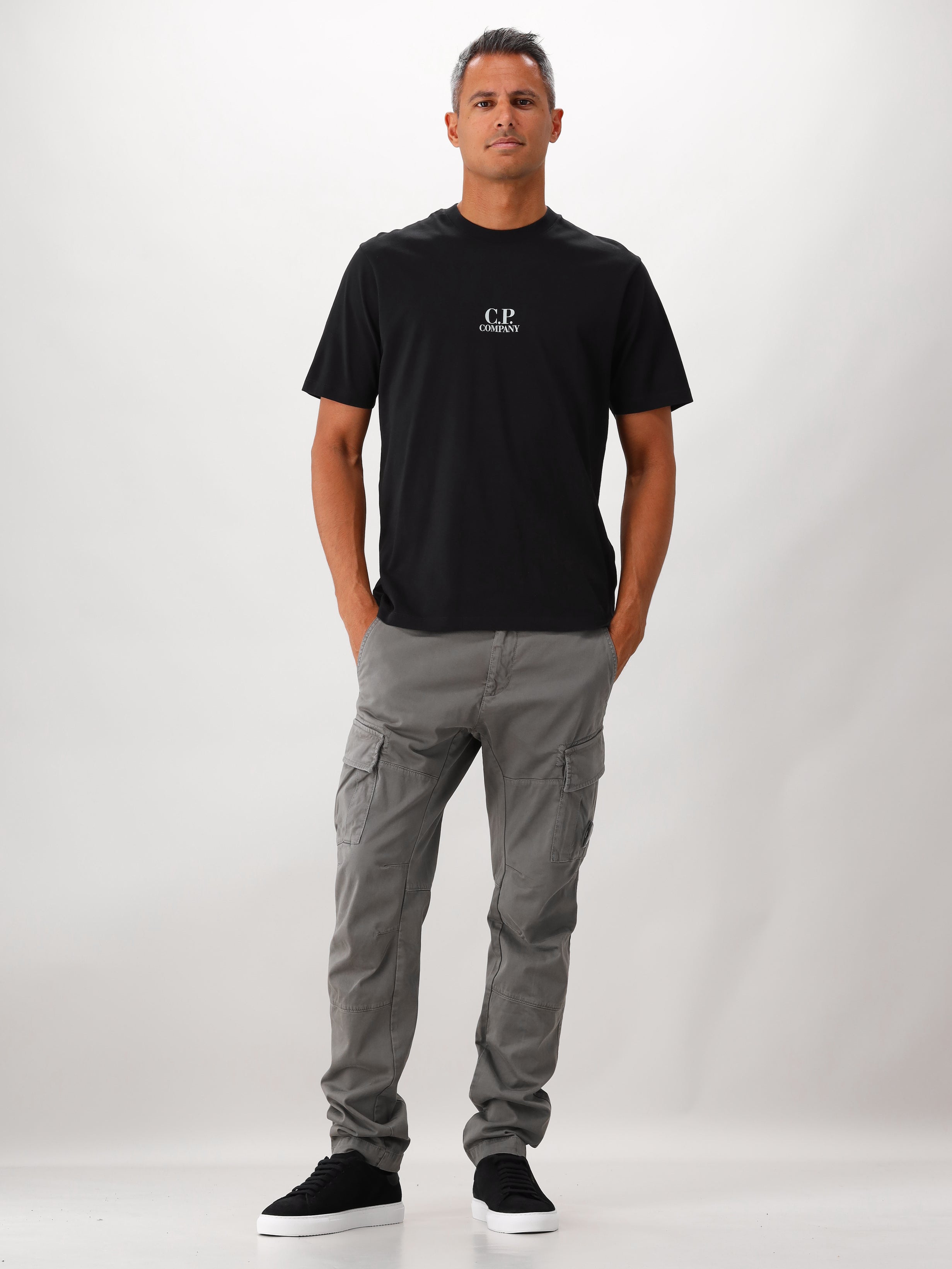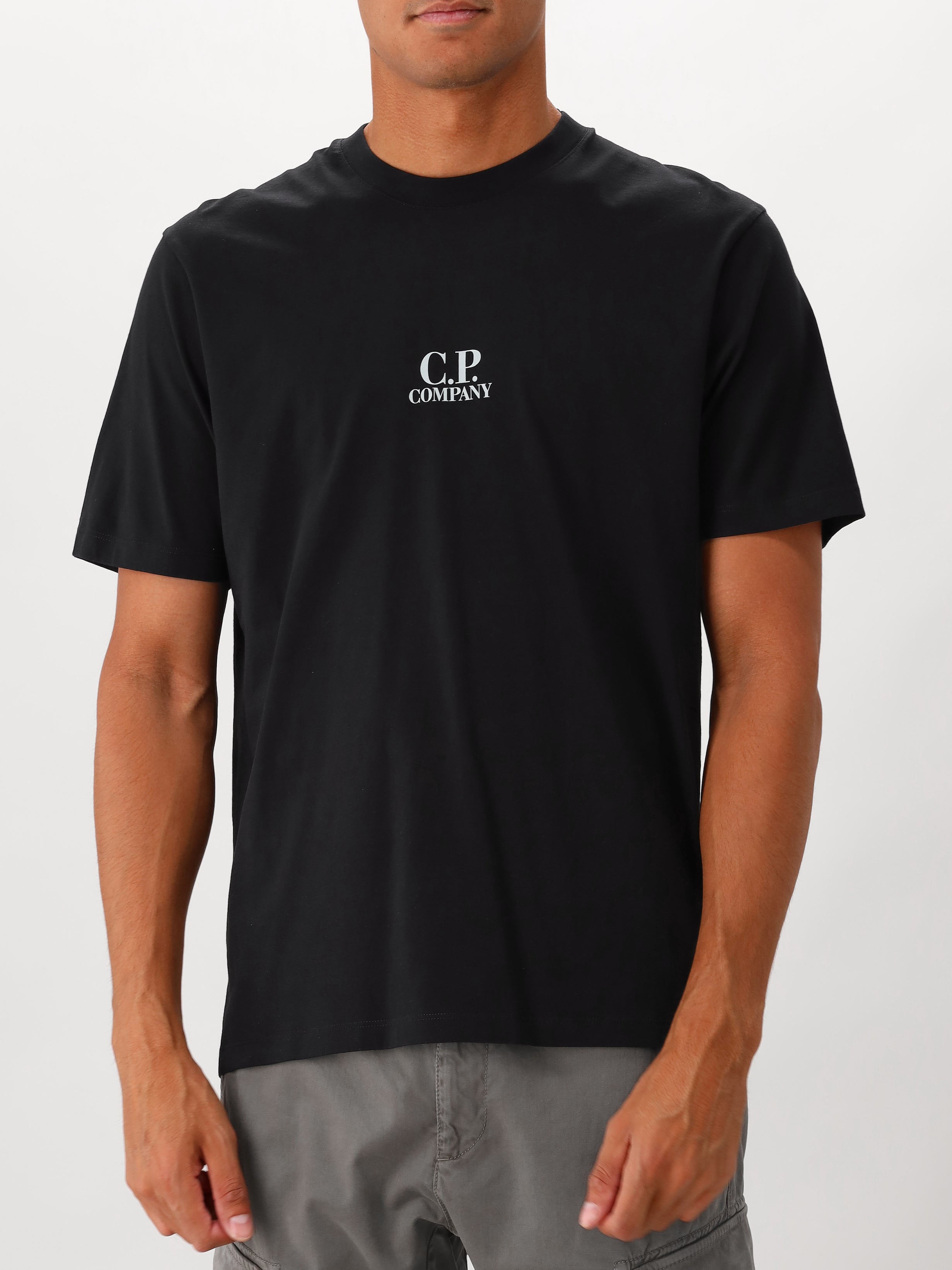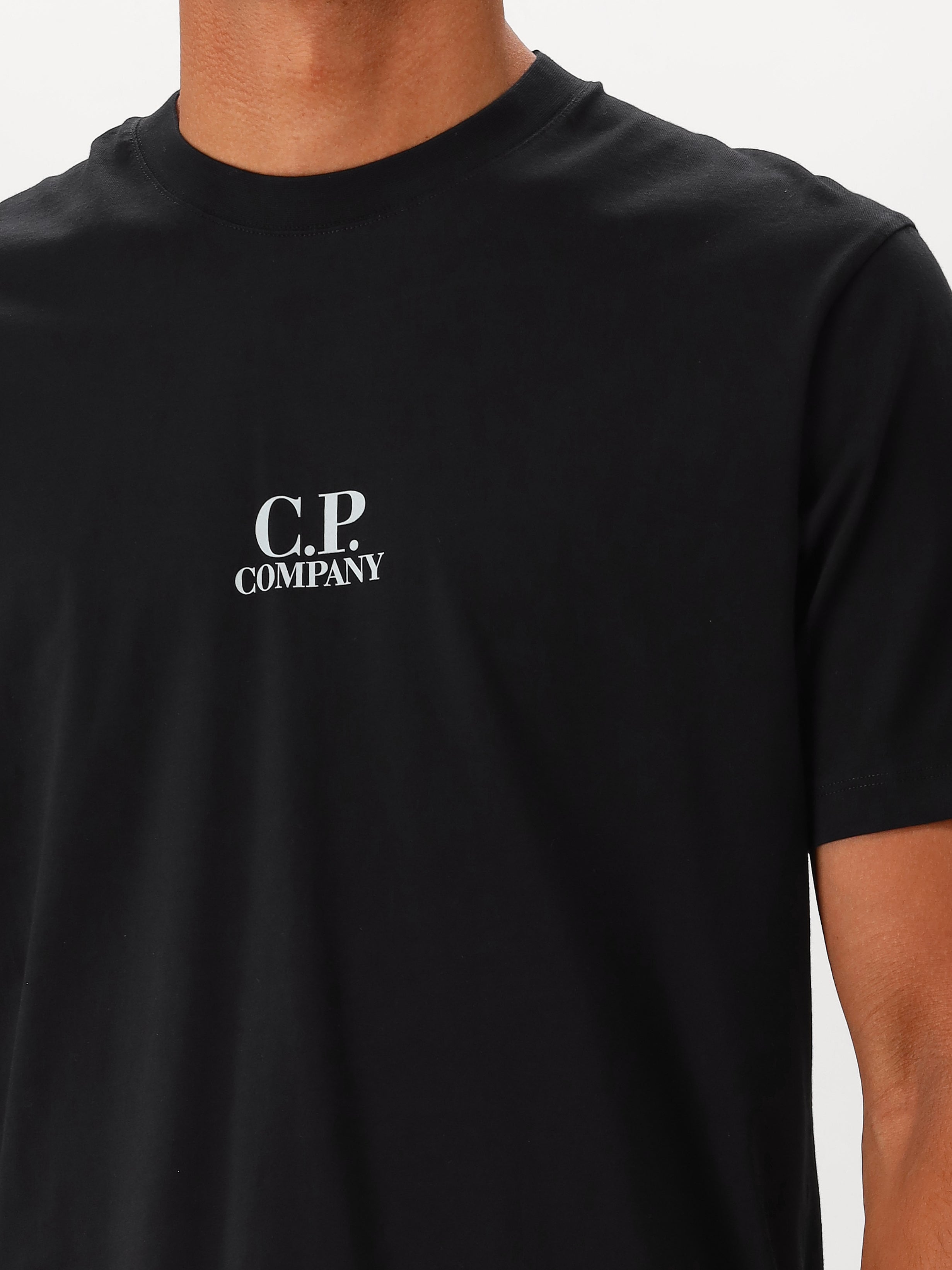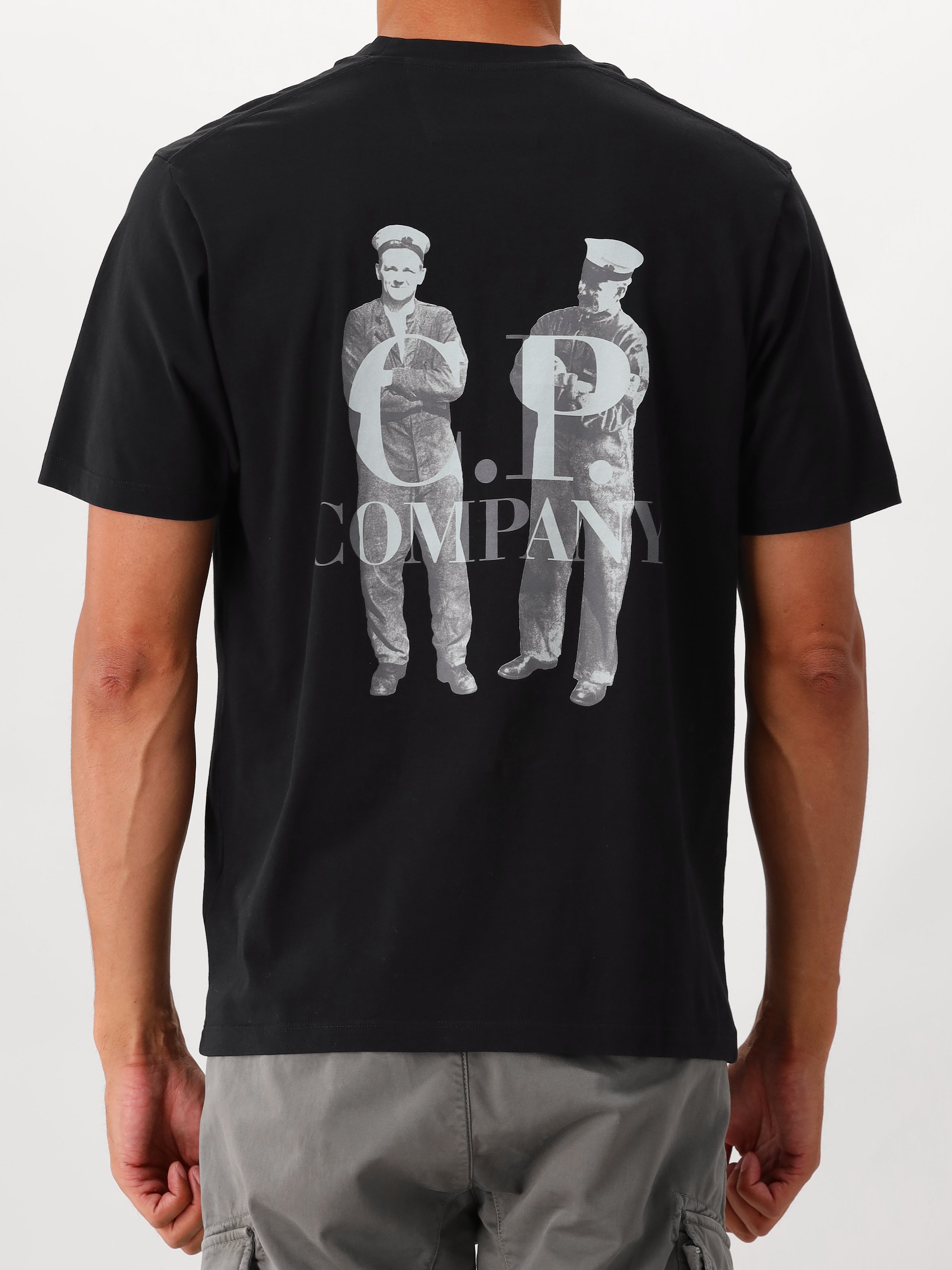Kies voor dit zwarte T-shirt van C.P. Company. Het T-shirt heeft een groot design op de rug met de welbekende matrozen. Op de borst vind je het logo van C.P. Company terug. De zwarte kleur is makkelijk te stijlen op verschillende broeken.