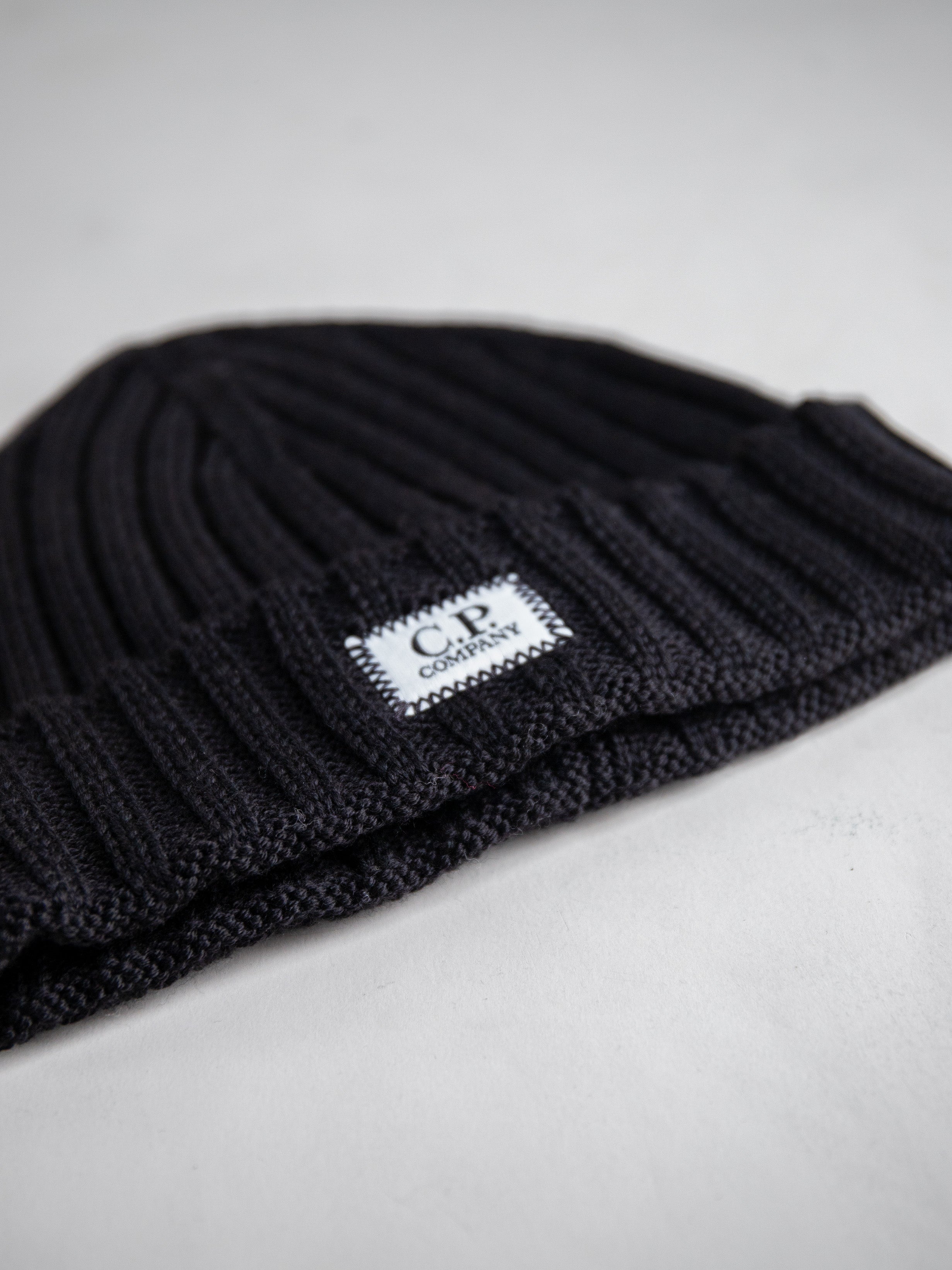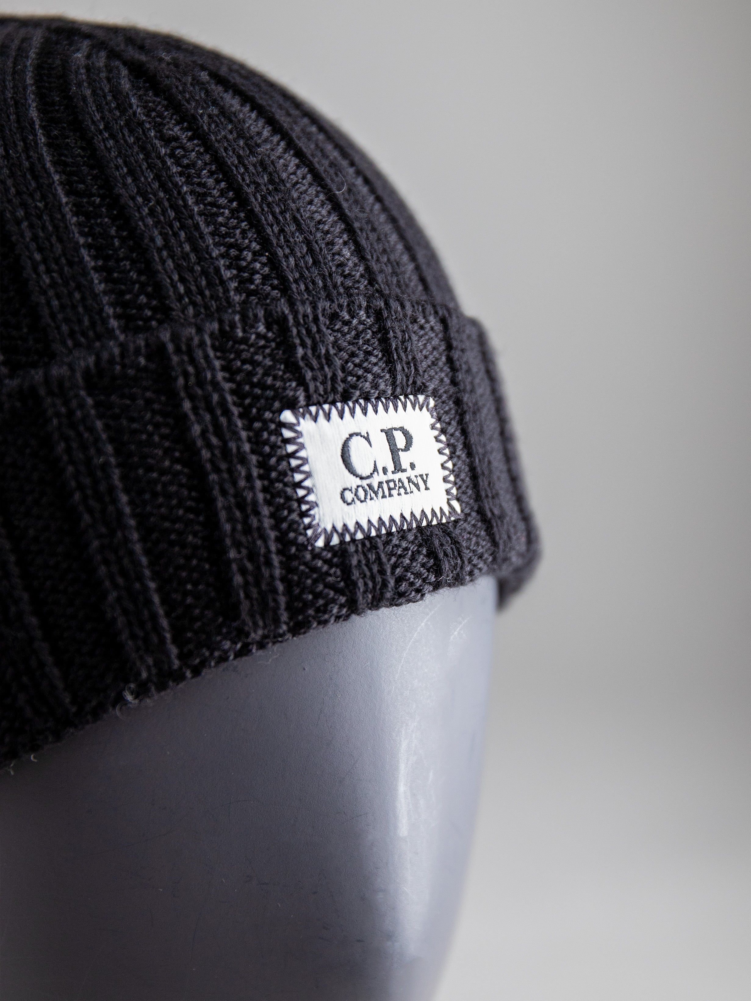 Cp Company Muts Zwart Knit Cap Merino Wool