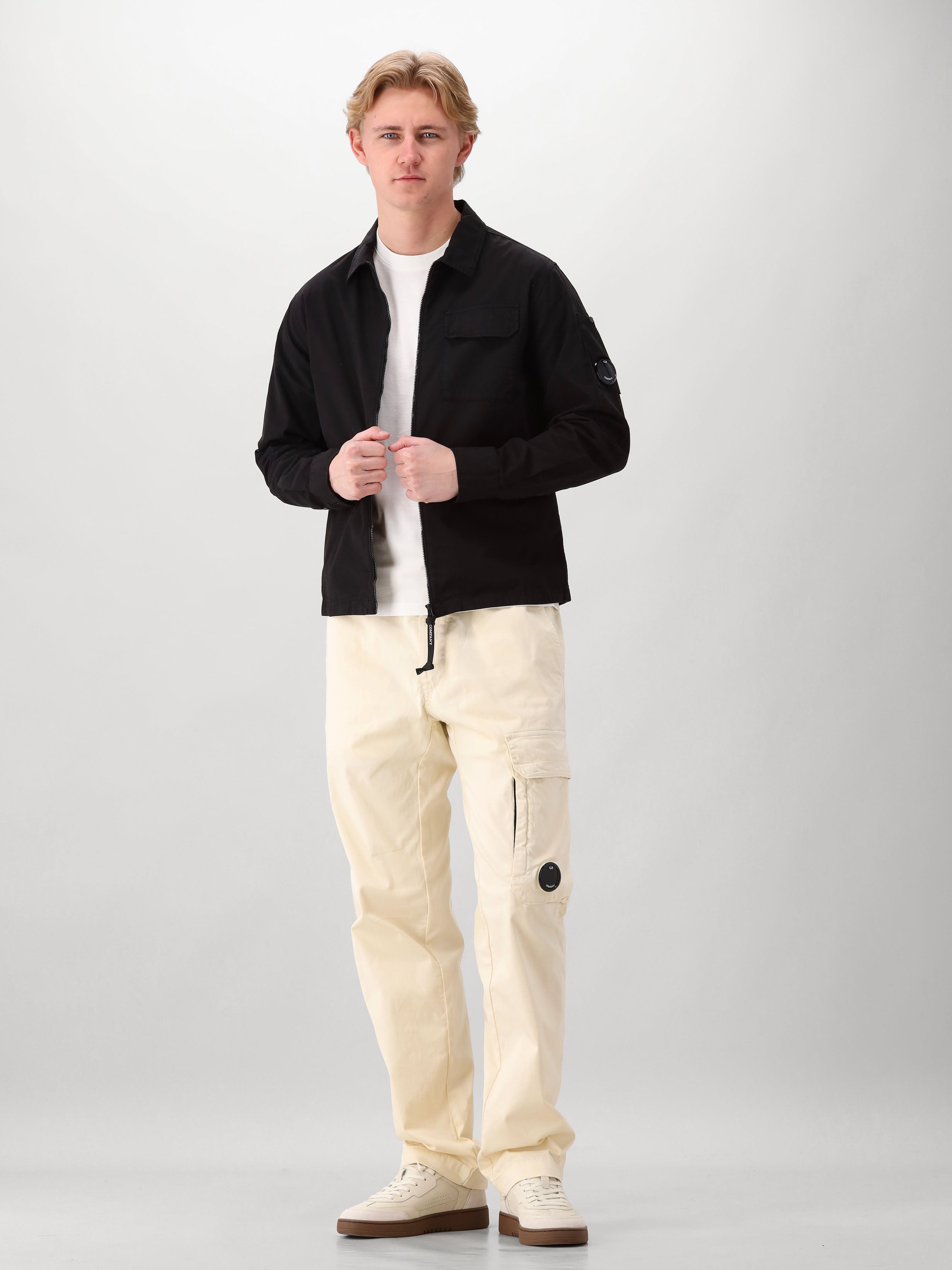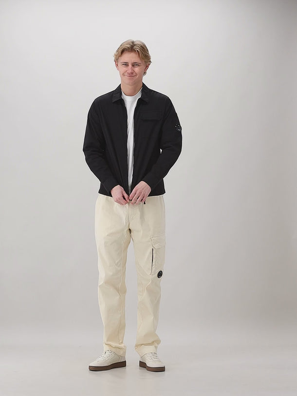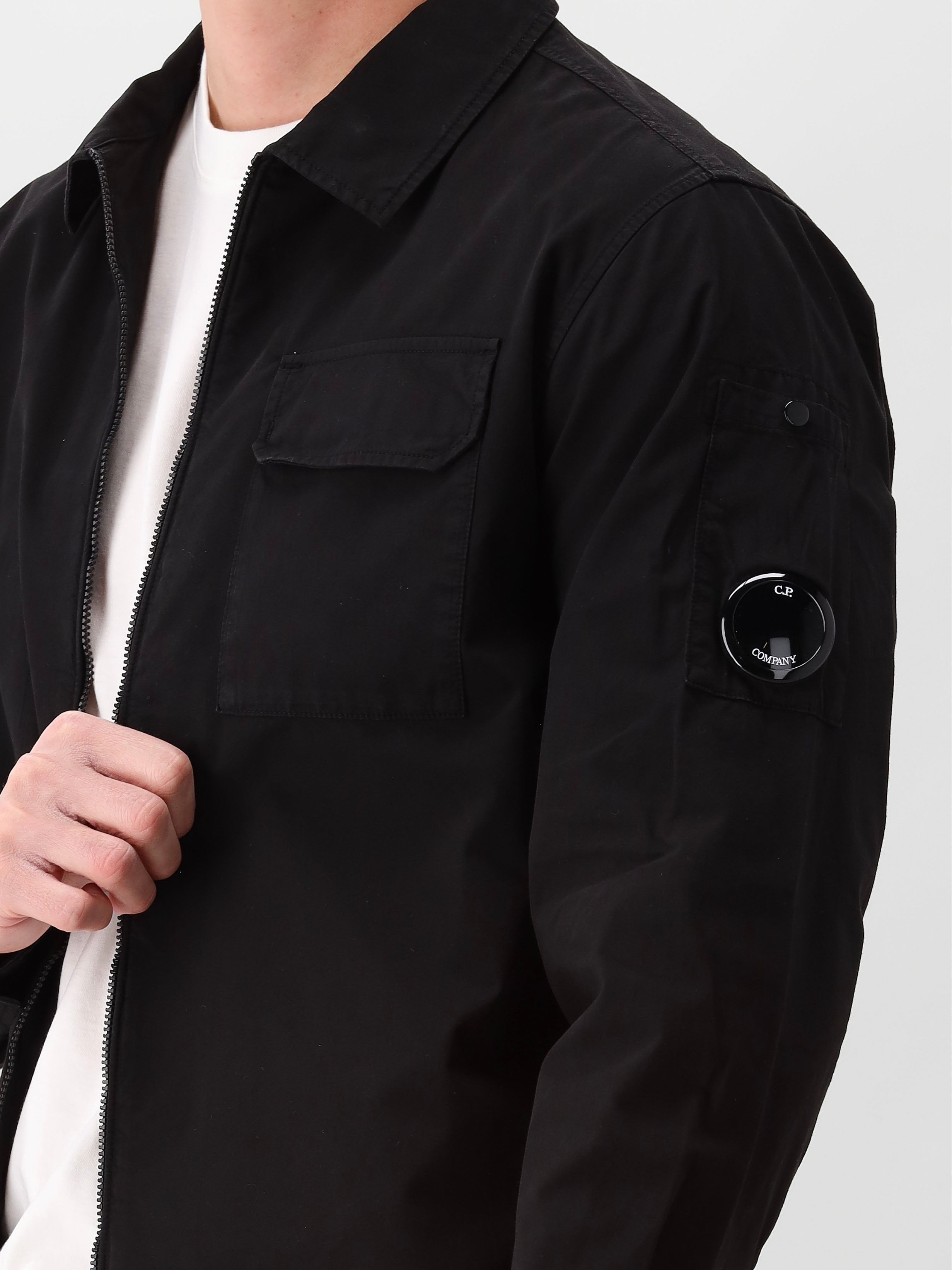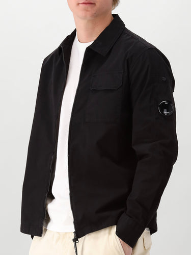 Het iconische CP Company lens logo is prominent aanwezig op de mouw, wat zorgt voor een herkenbare merkuitstraling. Het overshirt heeft praktische details zoals zakken.