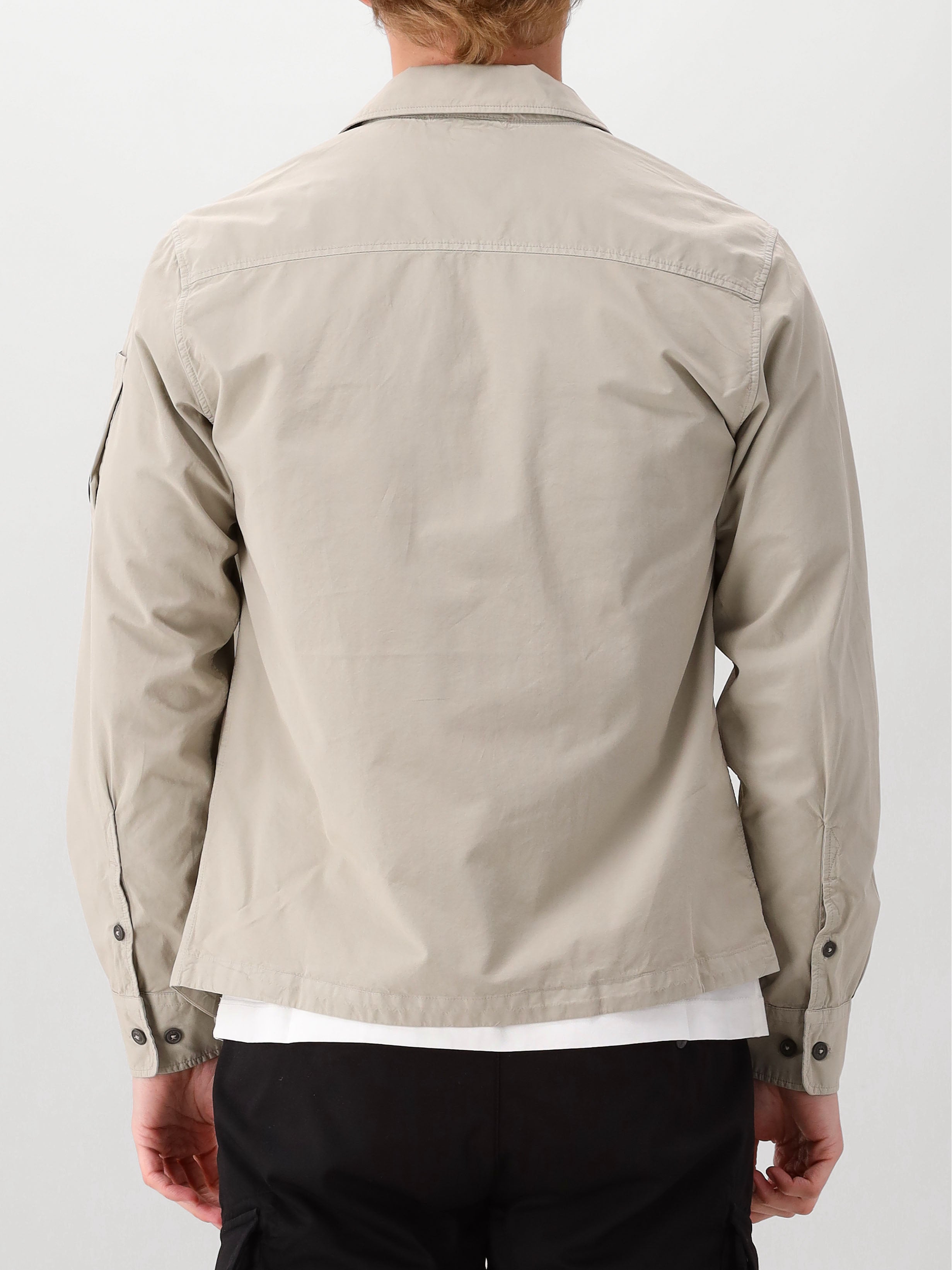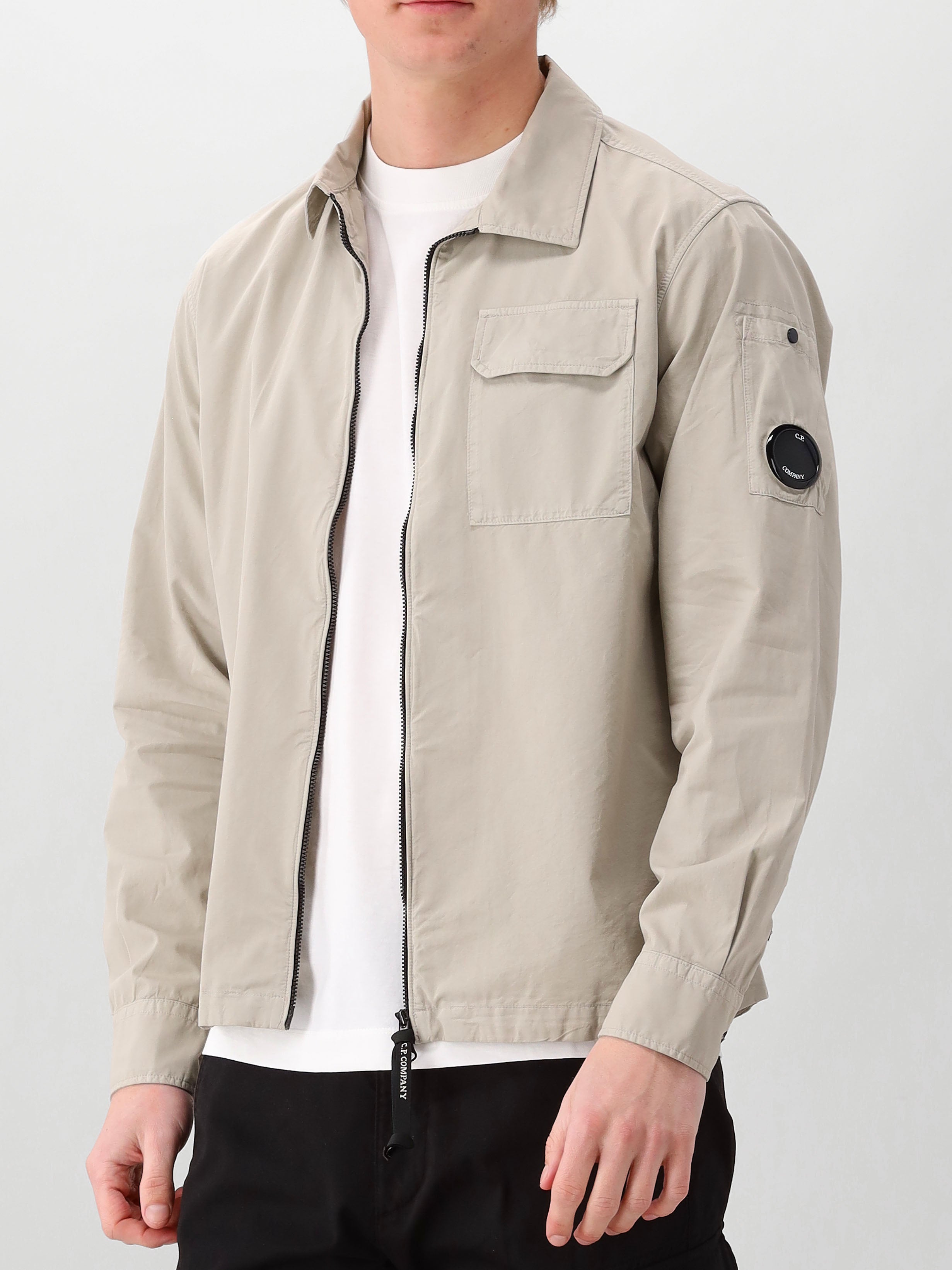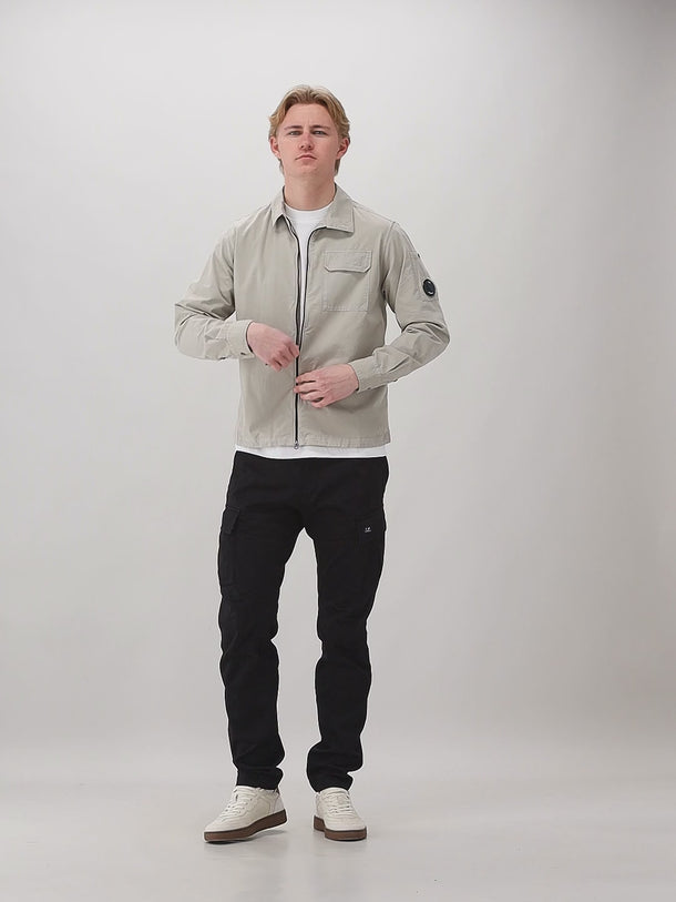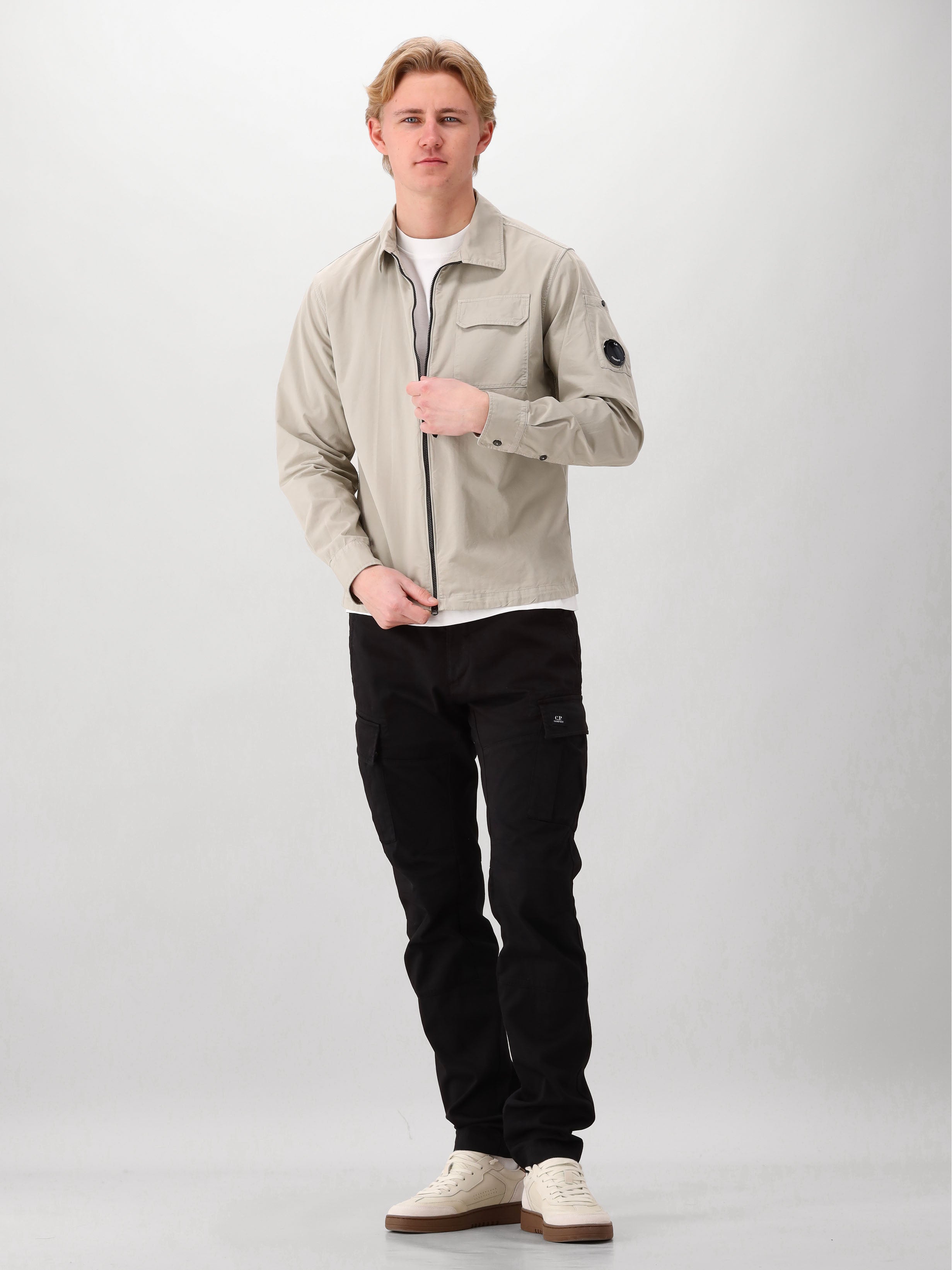 Het iconische CP Company lens logo is prominent aanwezig op de mouw, wat zorgt voor een herkenbare merkuitstraling. Het overshirt heeft praktische details zoals zakken.