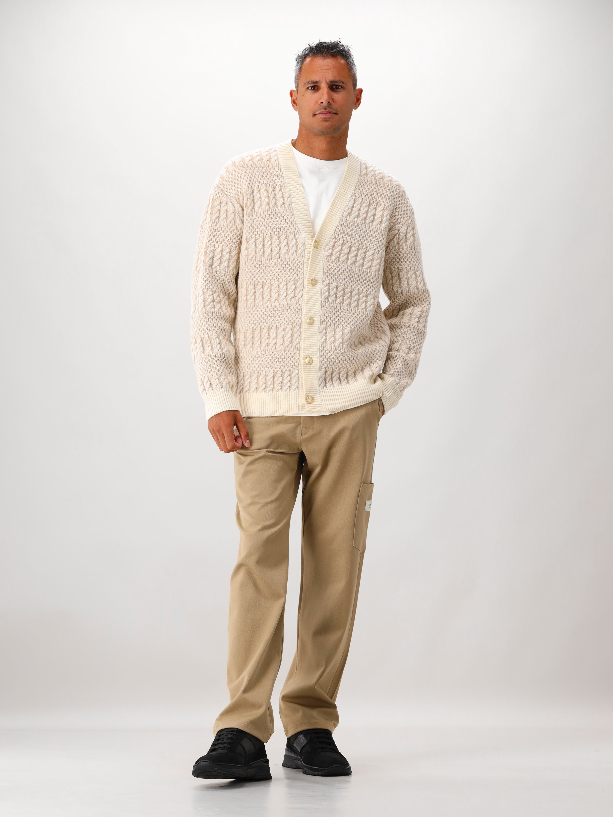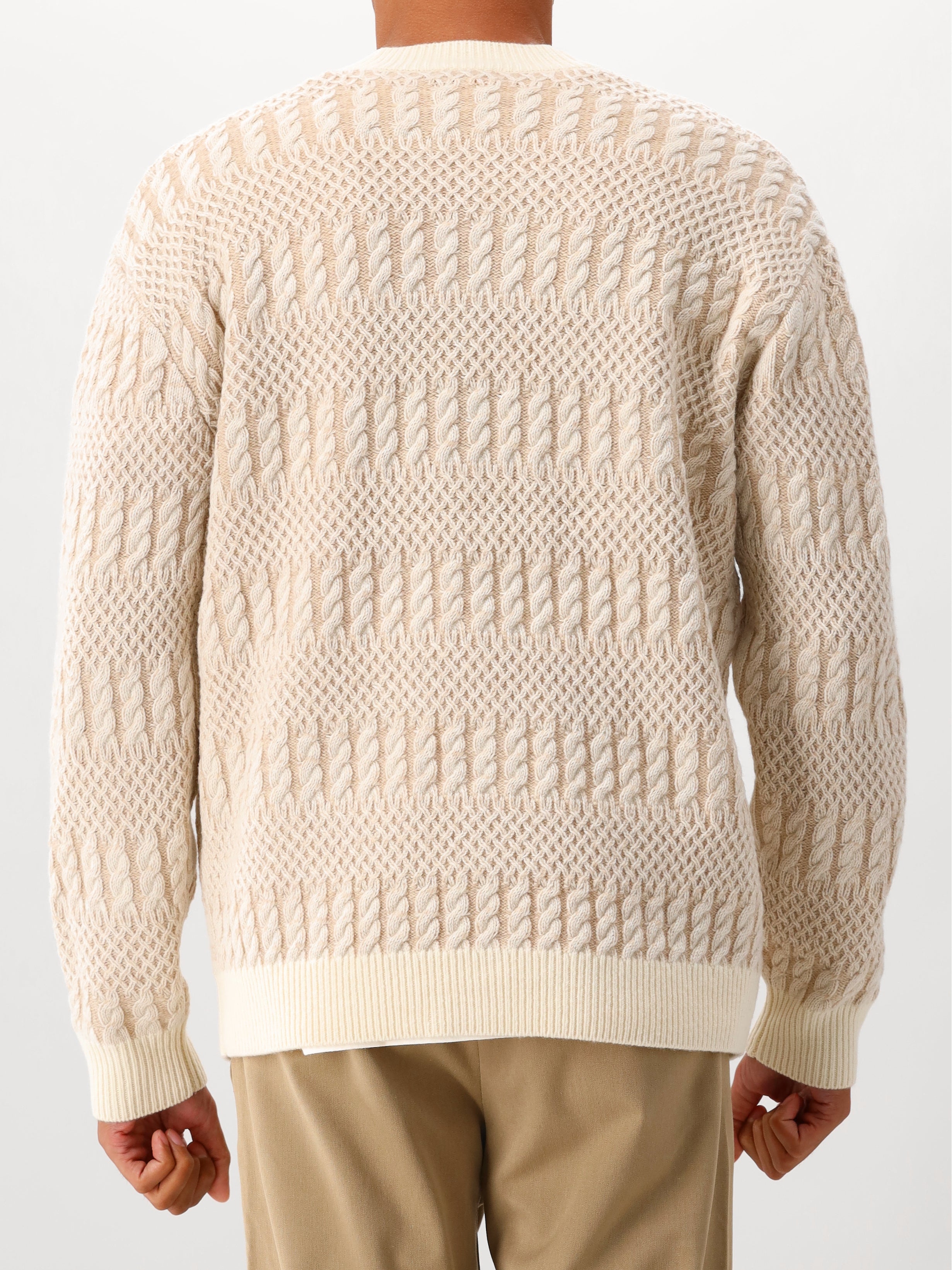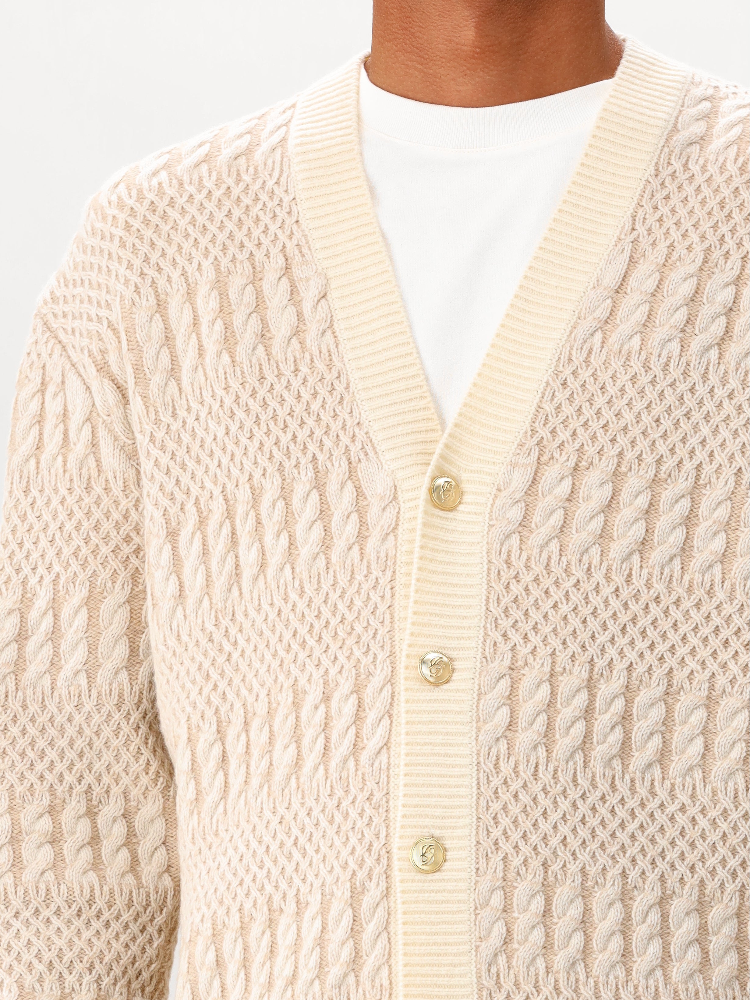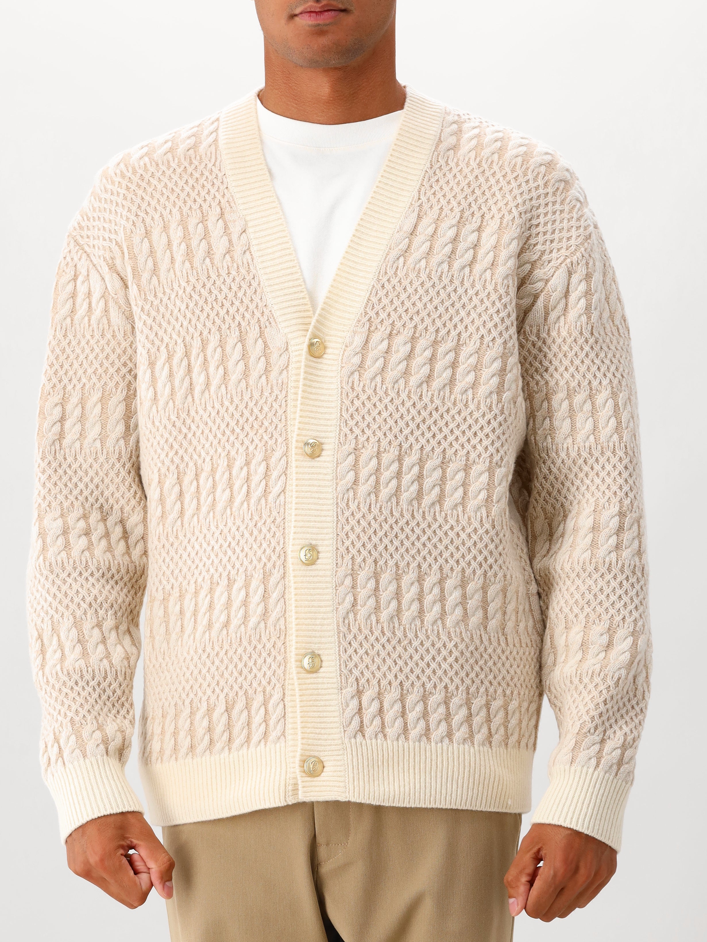 Drôle de Monsieur Vest Beige Le Cardigan Torsades Bicolore