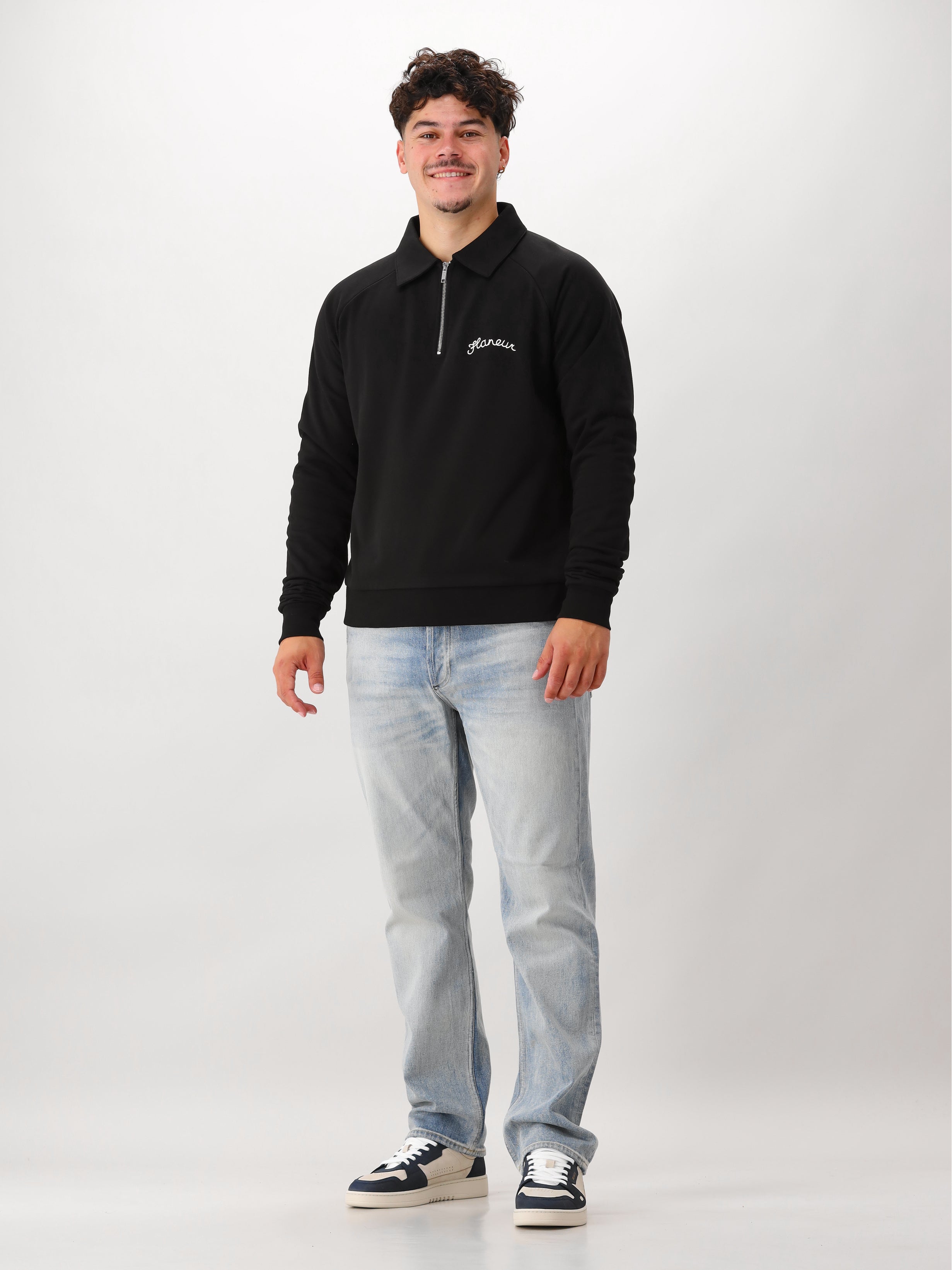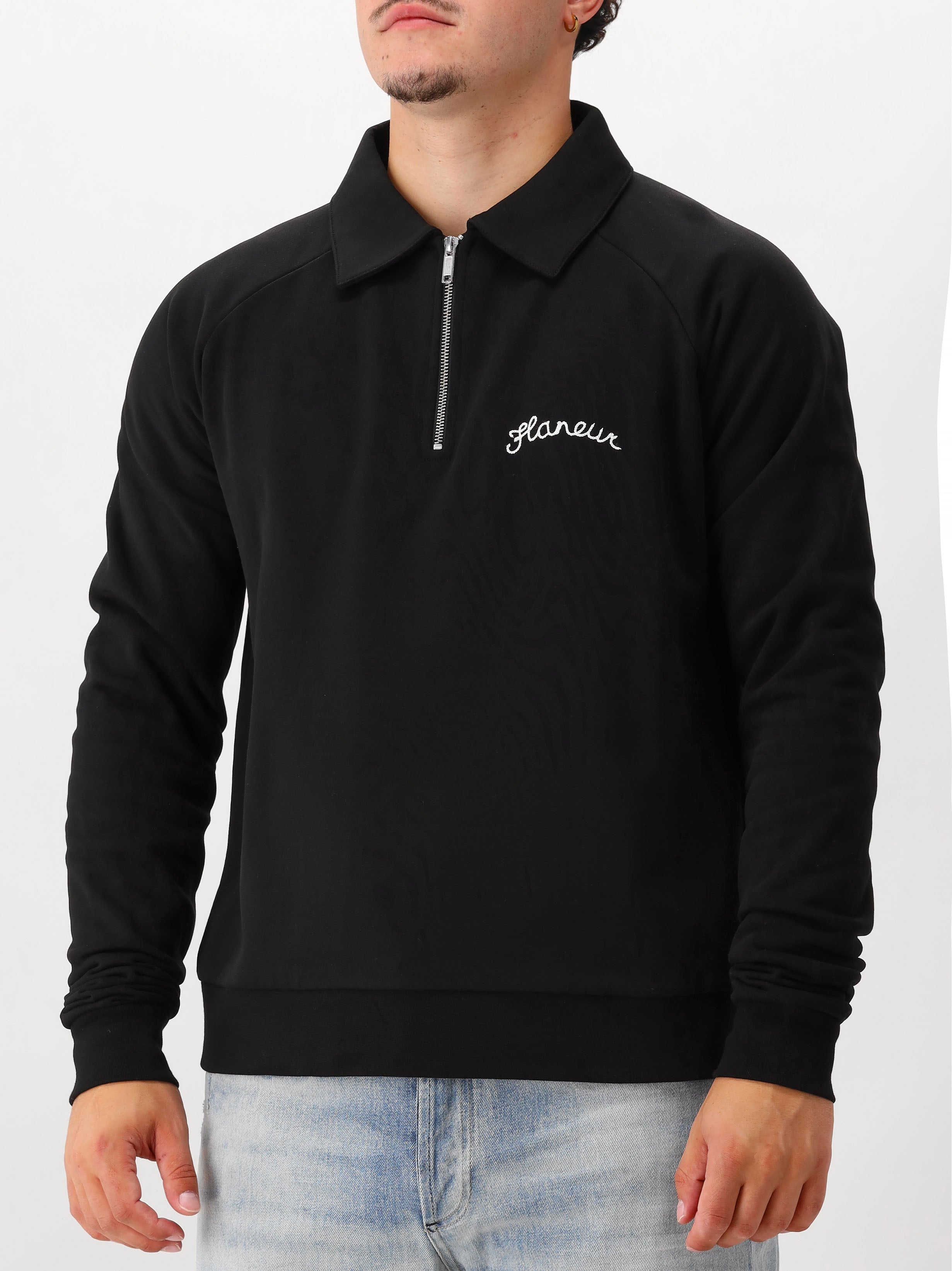 Flâneur Sweater Zwart Signature Raglan Half Zip