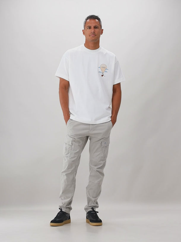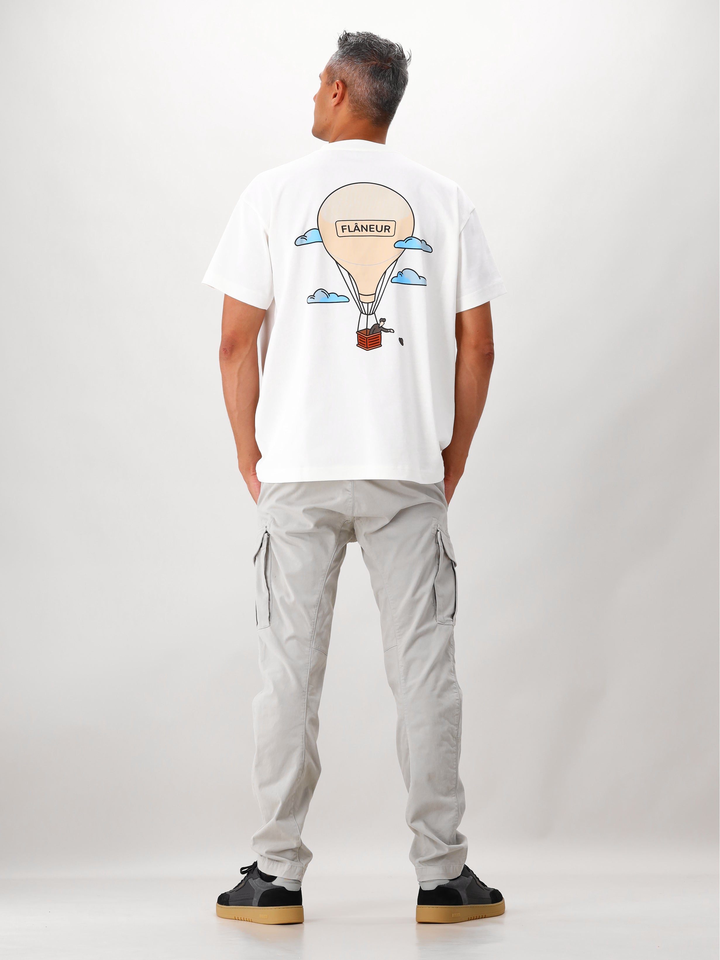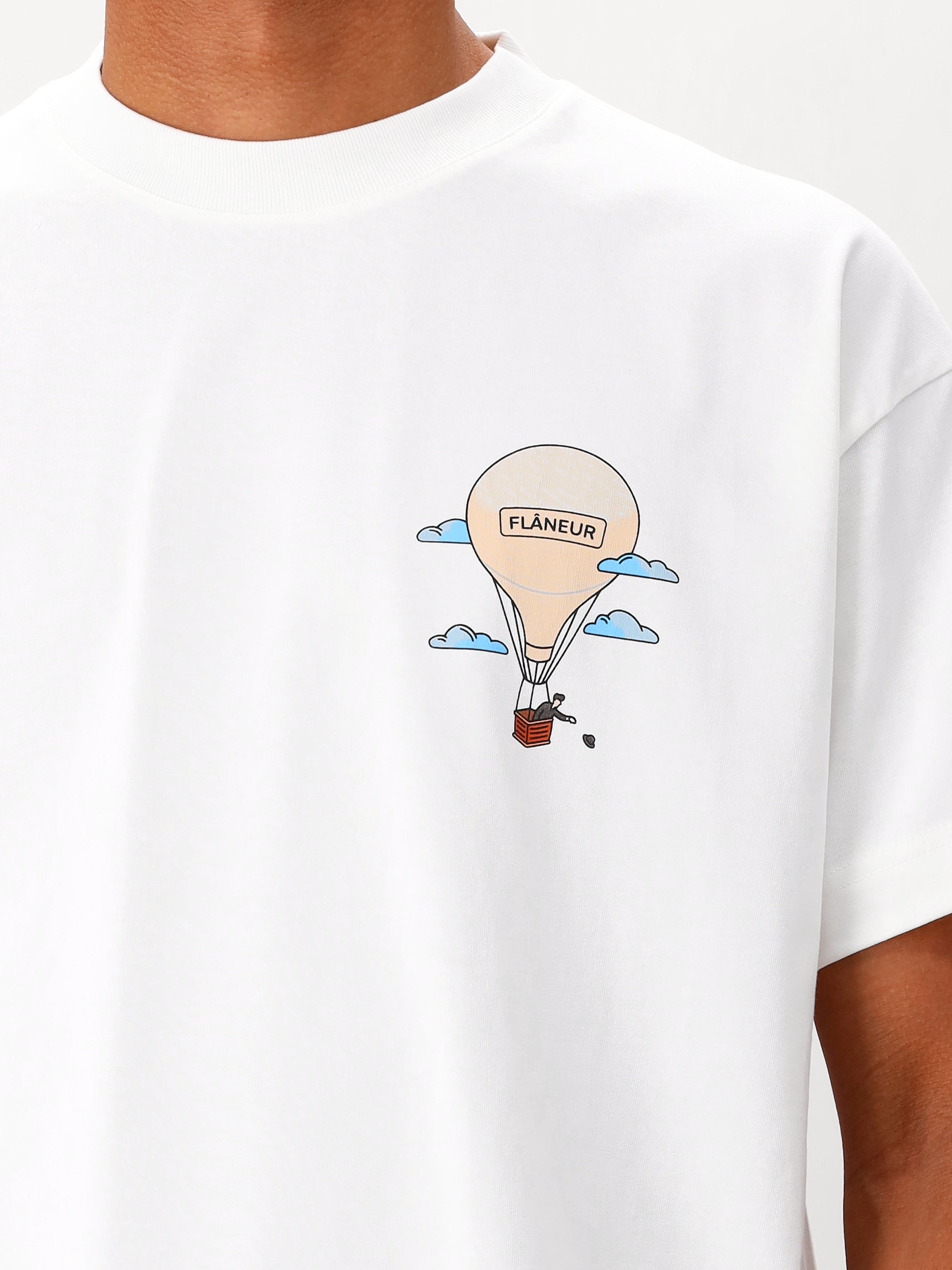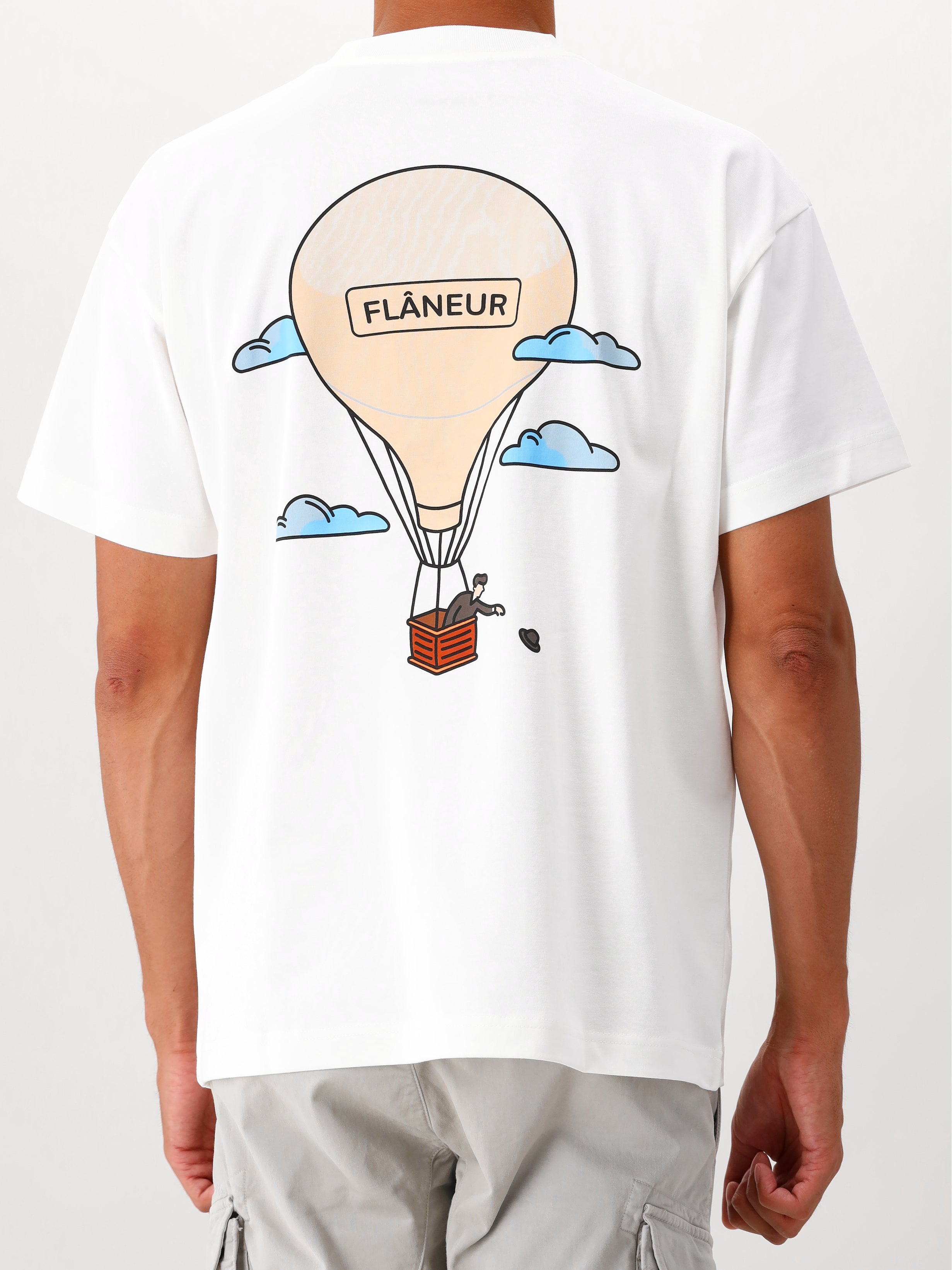 Stijlvol de deur uit dankzij dit witte T-shirt van Flâneur. Het T-shirt bestaat voor 100% uit katoen, op de rug vind je een groot merkdesign va Flâneur terug.