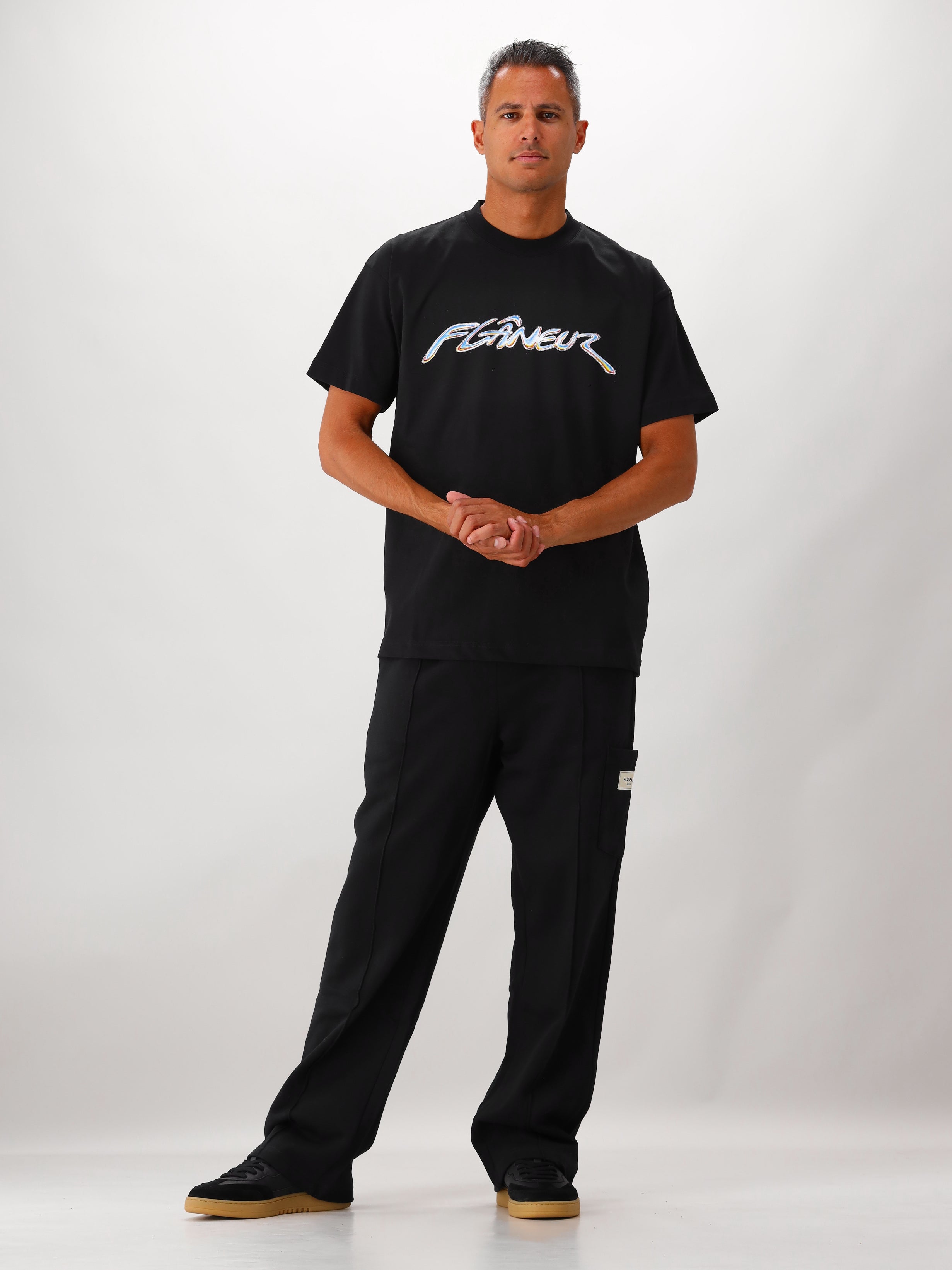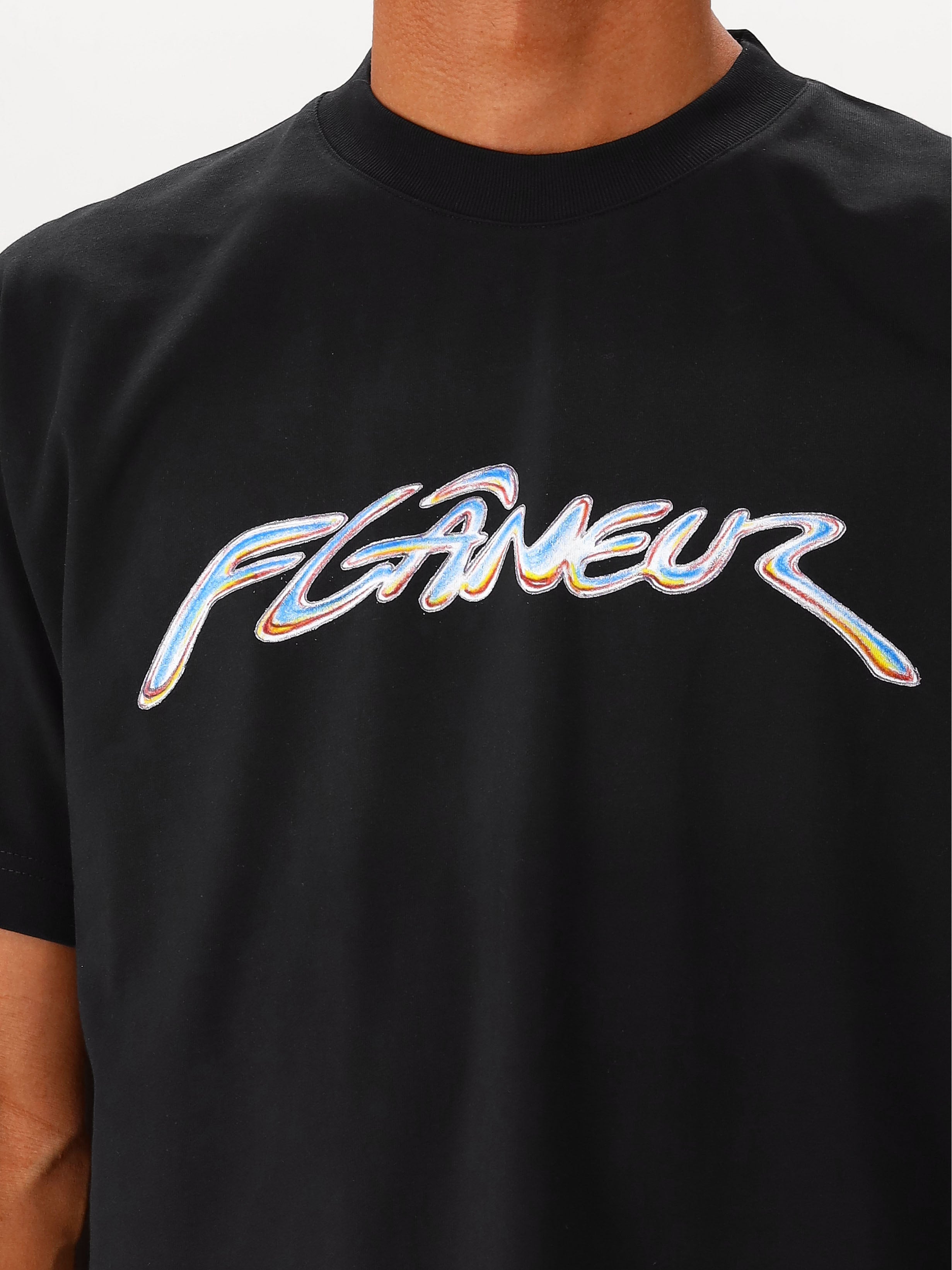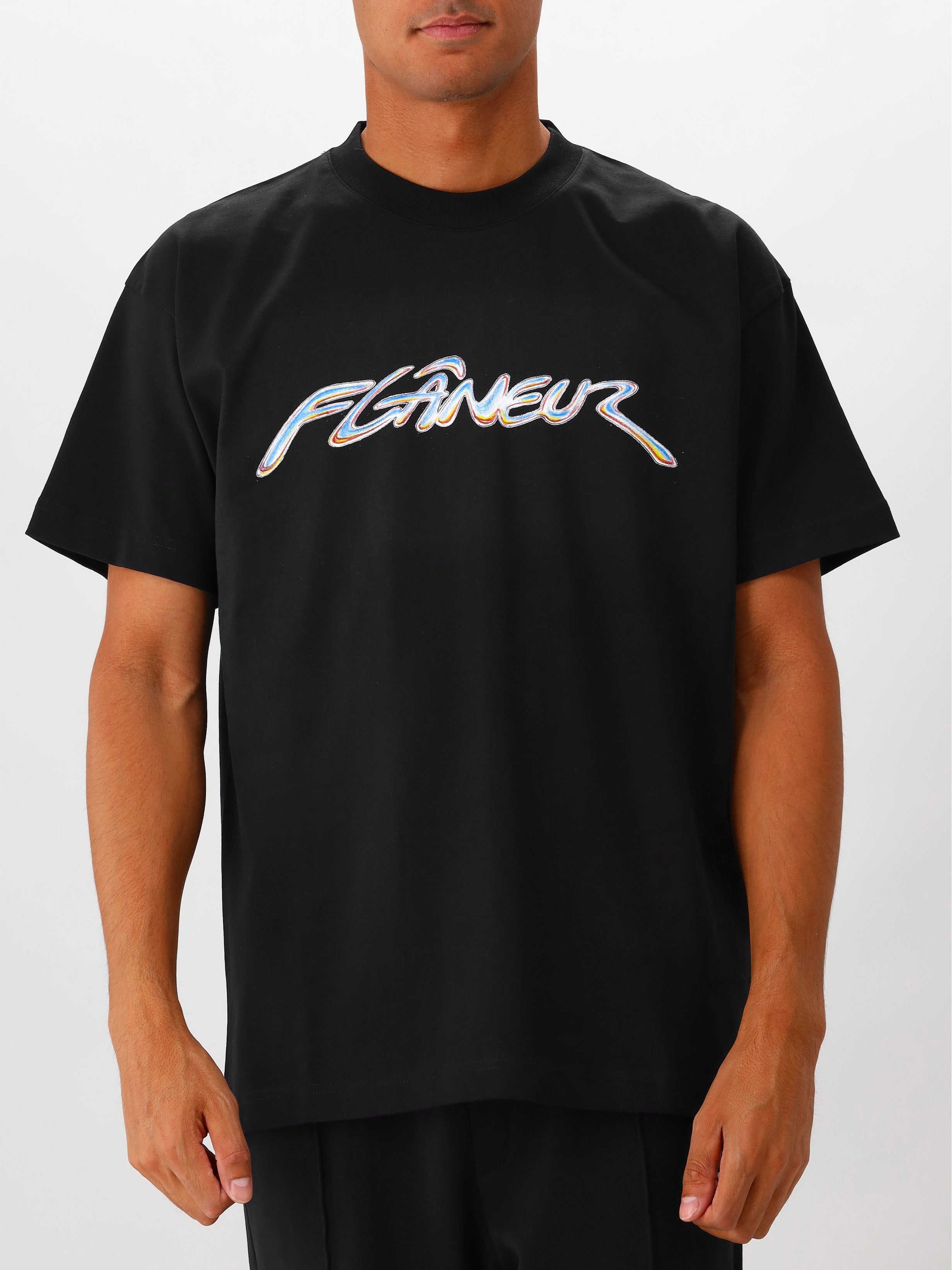 Shop dit zwarte shirt van Flaneur! Op de voorkant zie je een gekleurde merkprint van Flaneur. Het shirt heeft een oversized fit en een ronde hals. Het is gemaakt van 100% katoen.