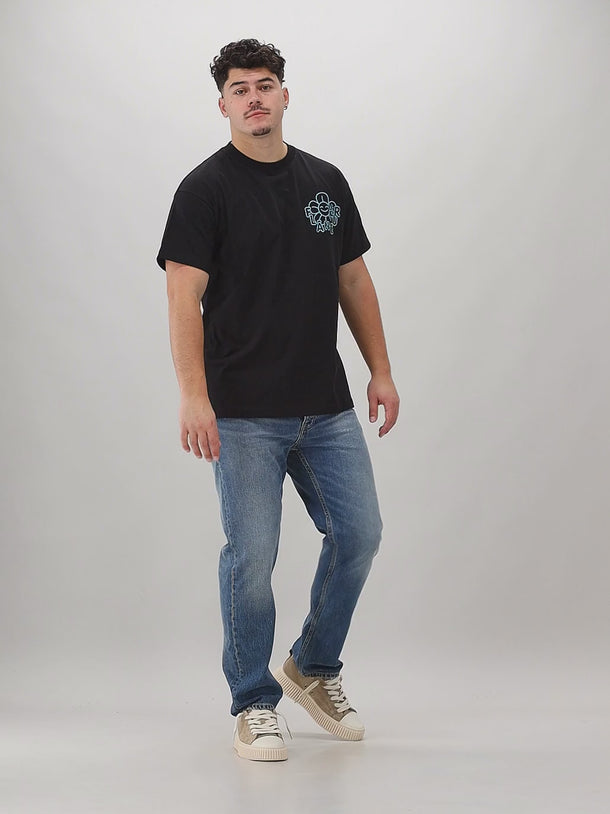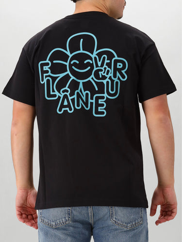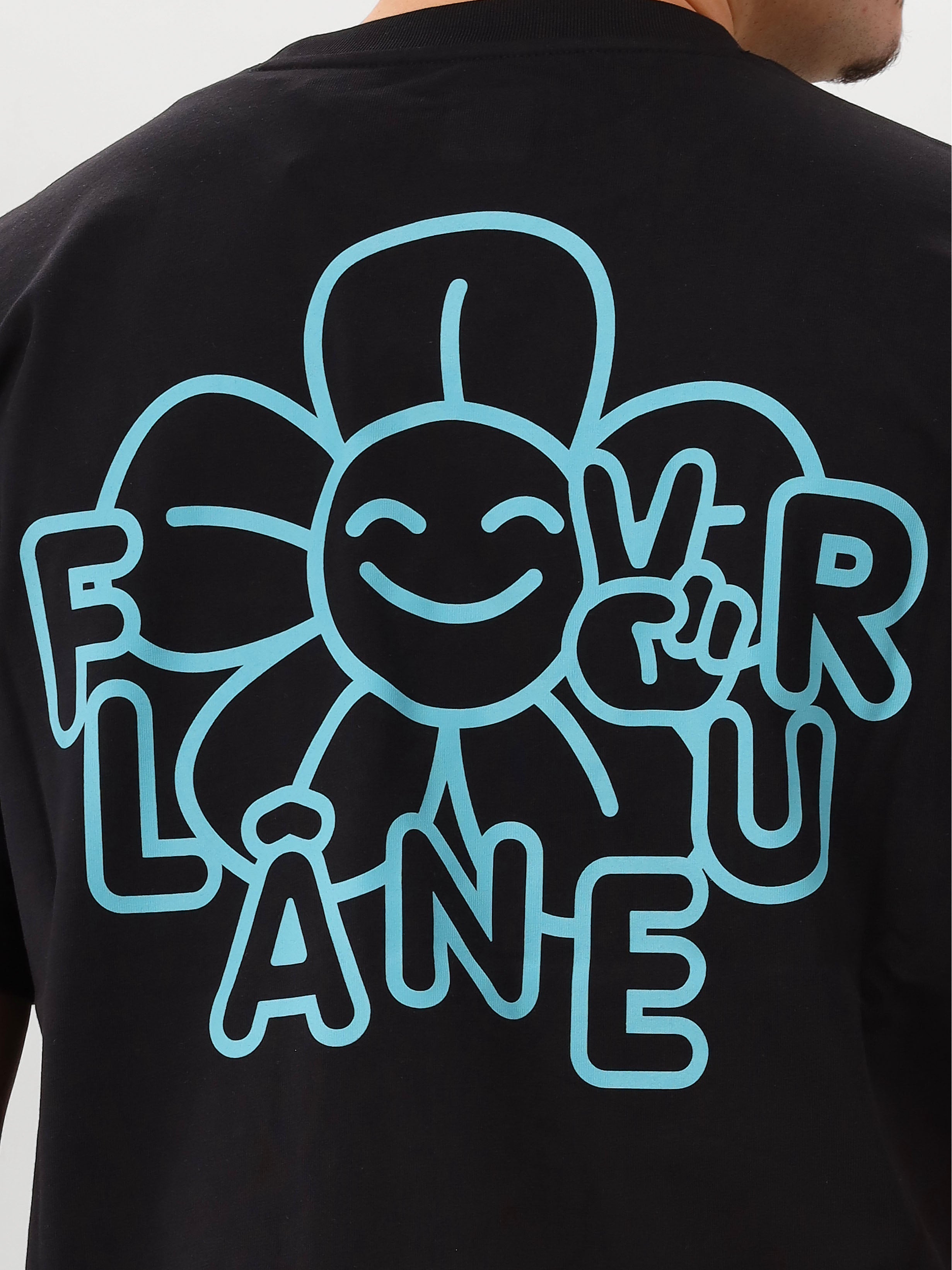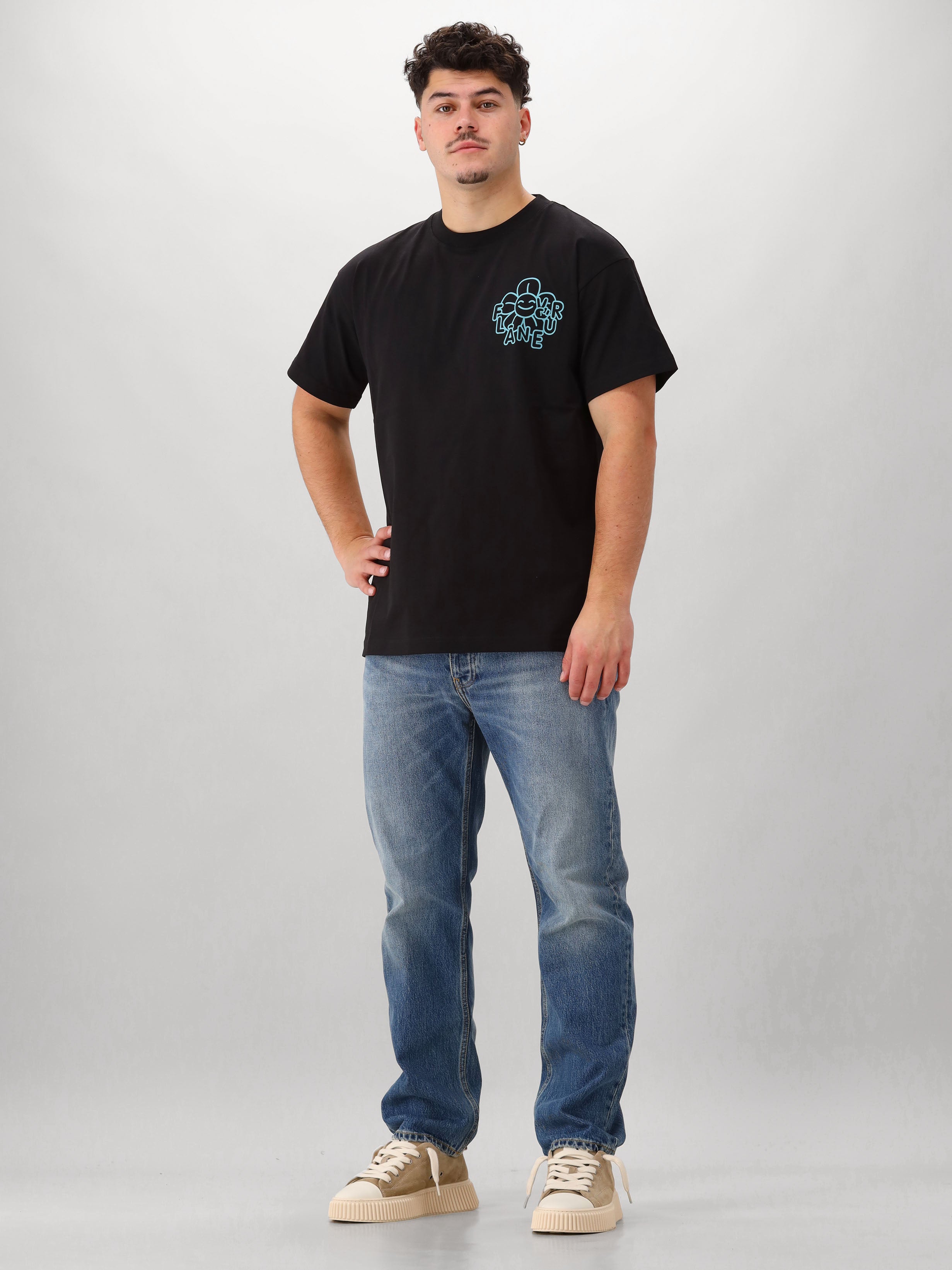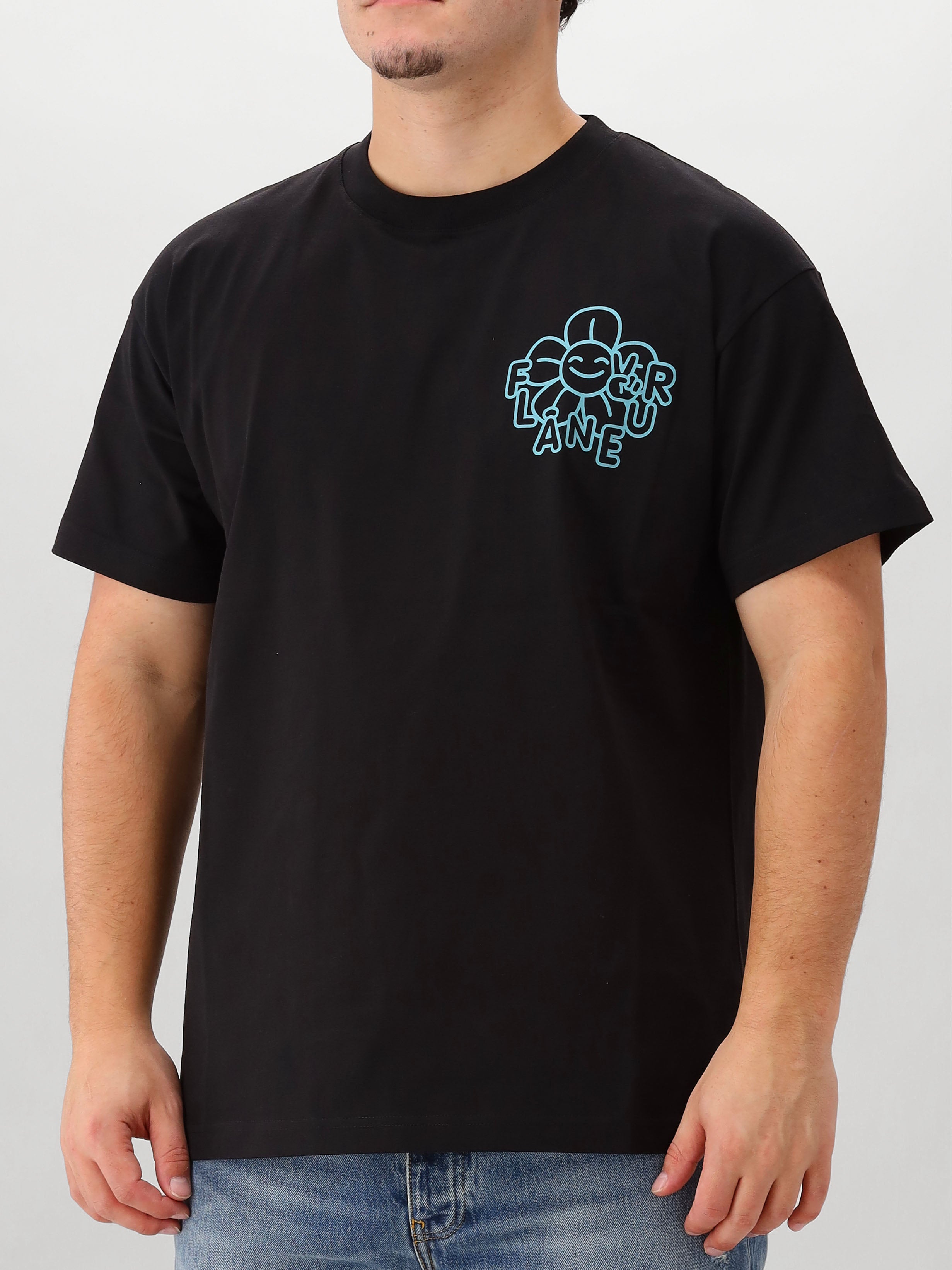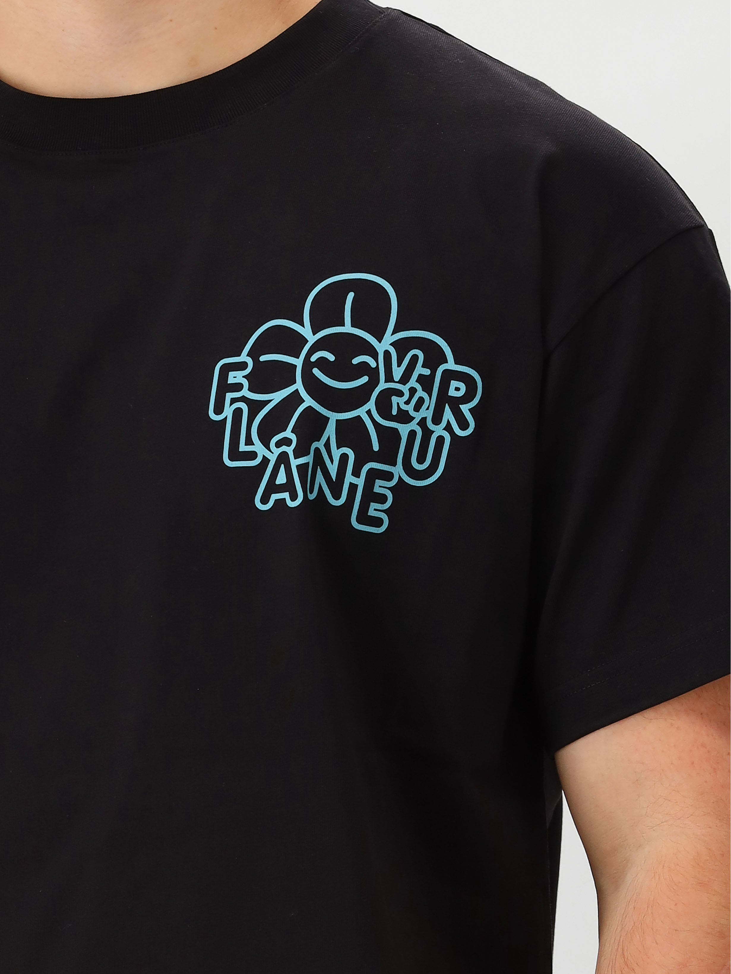 Dit zwarte oversized T-shirt van Flâneur heeft een vrolijk design op de rug en borst staan. Het T-shirt is vervaardigd uit 100% katoen. De blauwe kleur van het design contrasteert geweldig tegenover het shirt zelf.