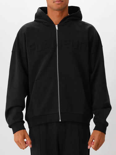 Flâneur Vest Zwart Embossed Zip-Up Hoodie
