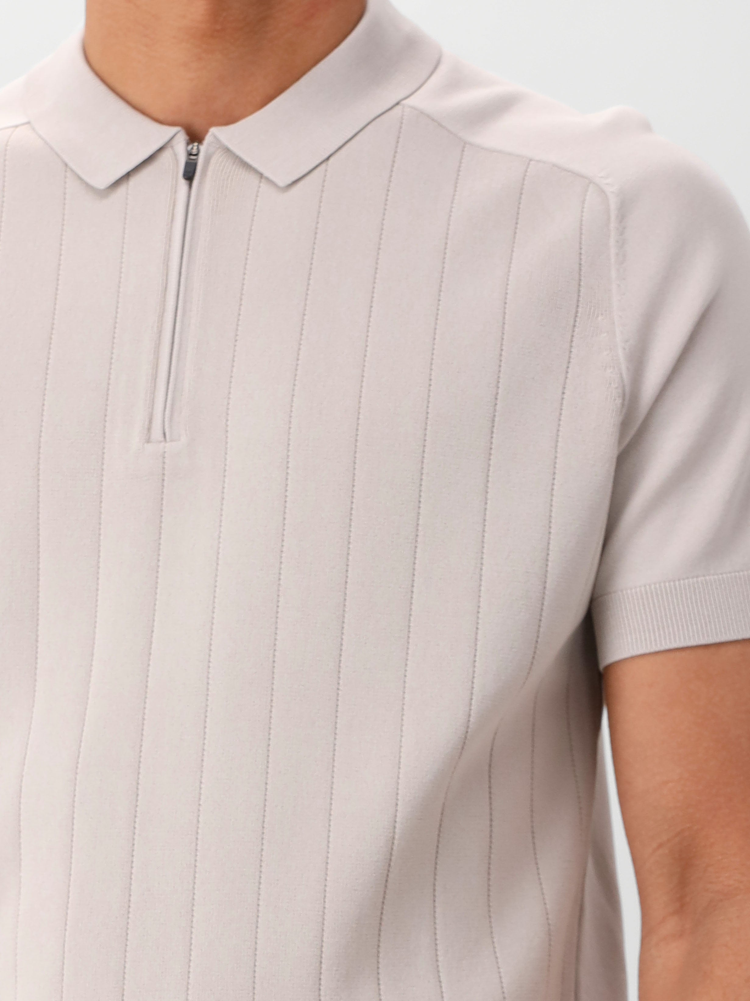 Deze beige gebreide polo van Genti is een stijlvol en veelzijdig item voor jouw garderobe. De polo heeft een ritssluiting aan de kraag en is vervaardigd uit hoogwaardig gebreid materiaal. Het gebreide materiaal geeft de polo een verfijnde textuur en zorgt voor optimaal draagcomfort.