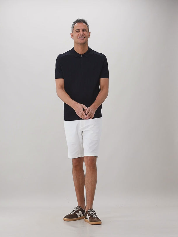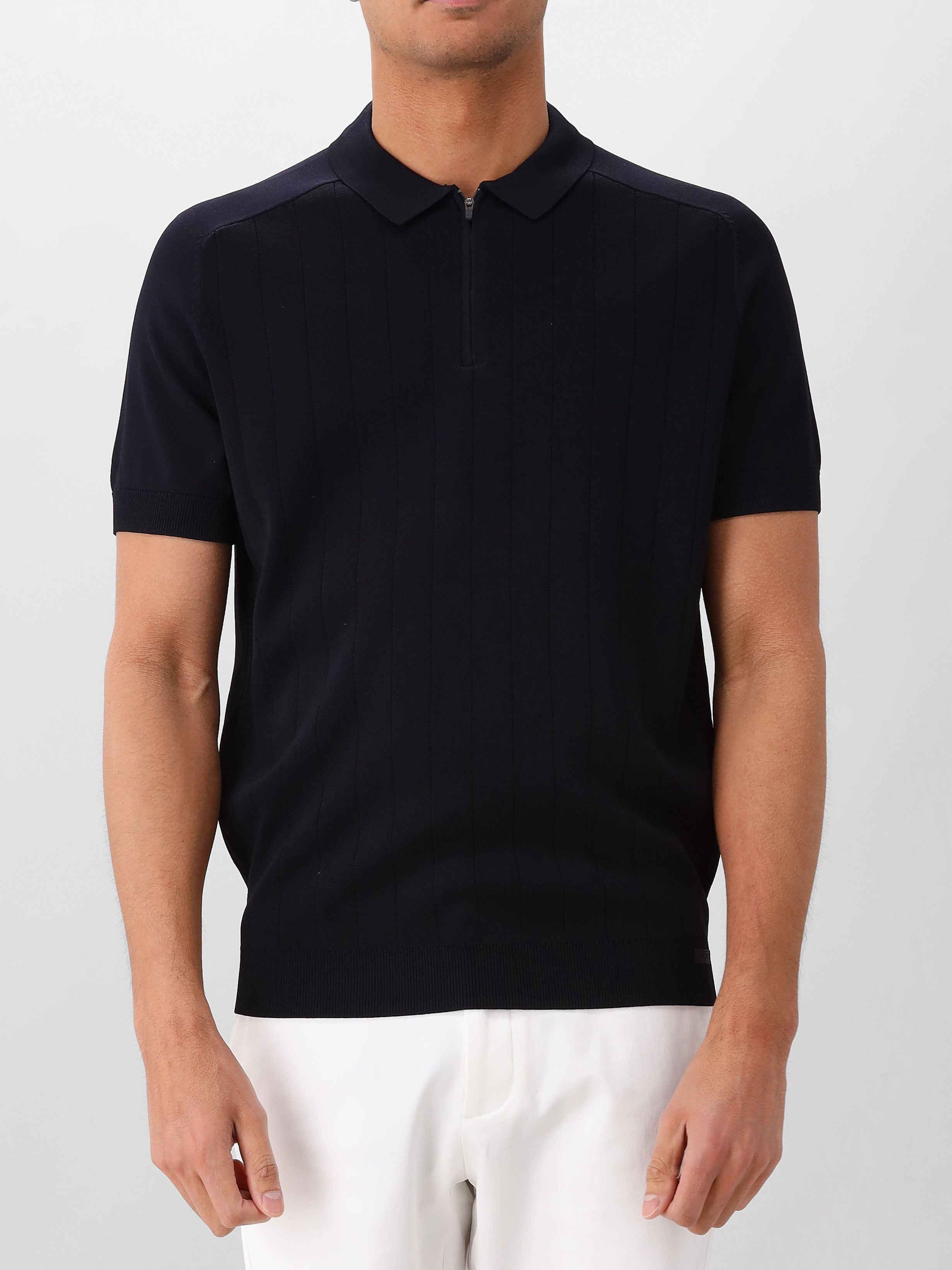 Genti Gebreide Polo Blauw Zip SS