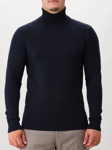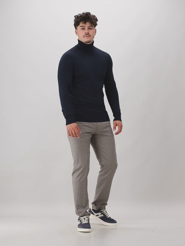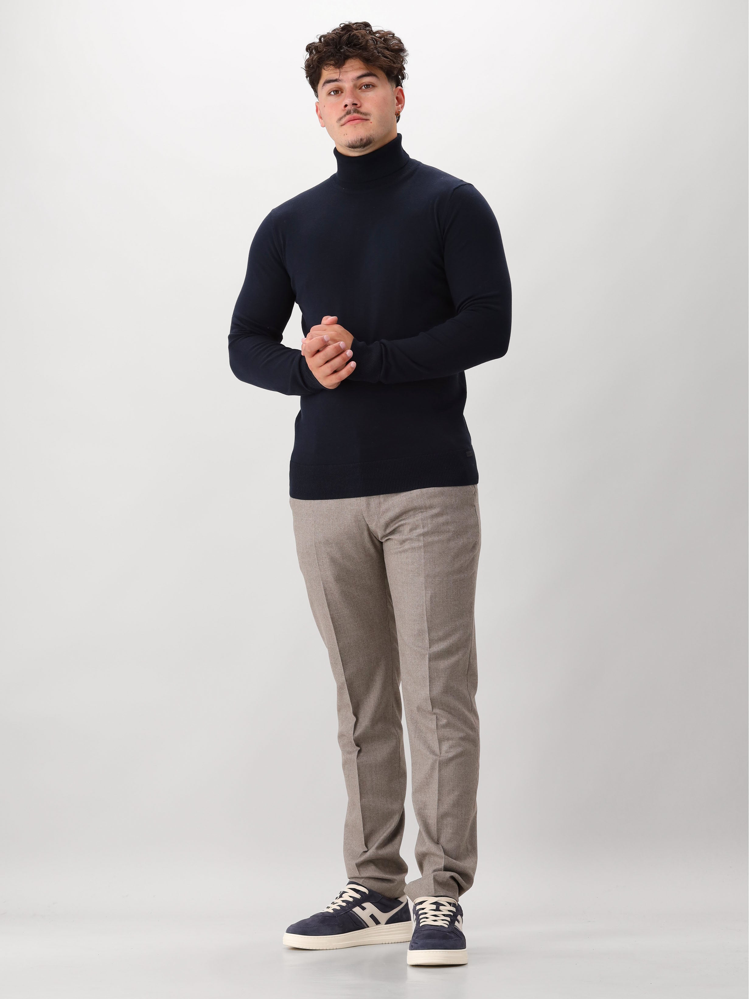 Stijlvol de deur uit dankzij deze donkerblauwe gebreide trui van Genti. De kleur is makkelijk te stijlen en combineren op verschillende broeken. Het item bestaat voor 100% uit katoen. Onderaan de trui vind je een merklabel terug.