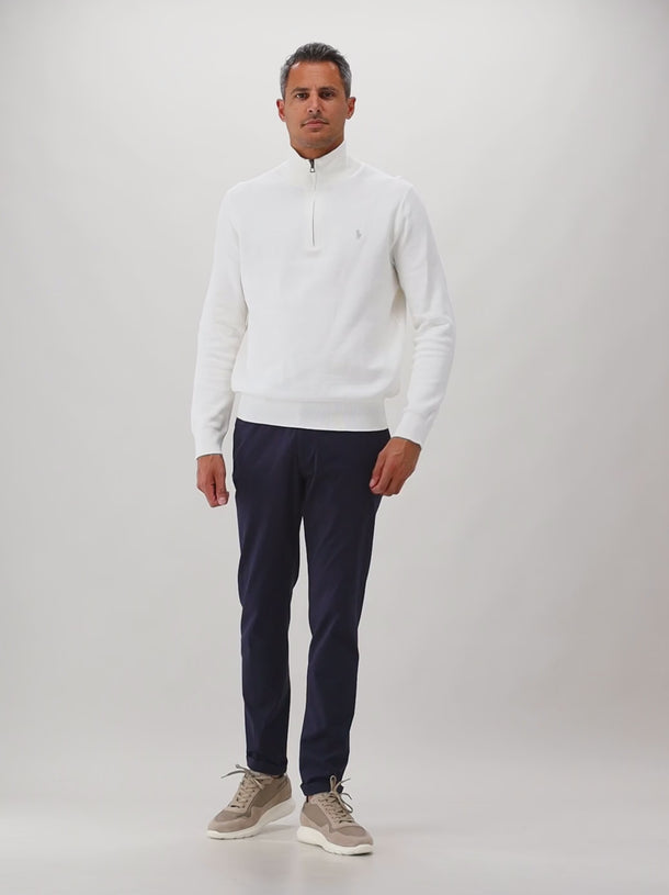 Kies voor deze blauwe pantalon van Genti. De pantalon bestaat uit een mix van katoen, polyamide en elastaan. Dit zorgt voor comfort en rekbaarheid in de stof.