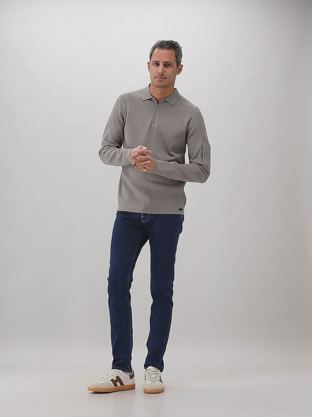 Genti Polo Grijs Zip LS
