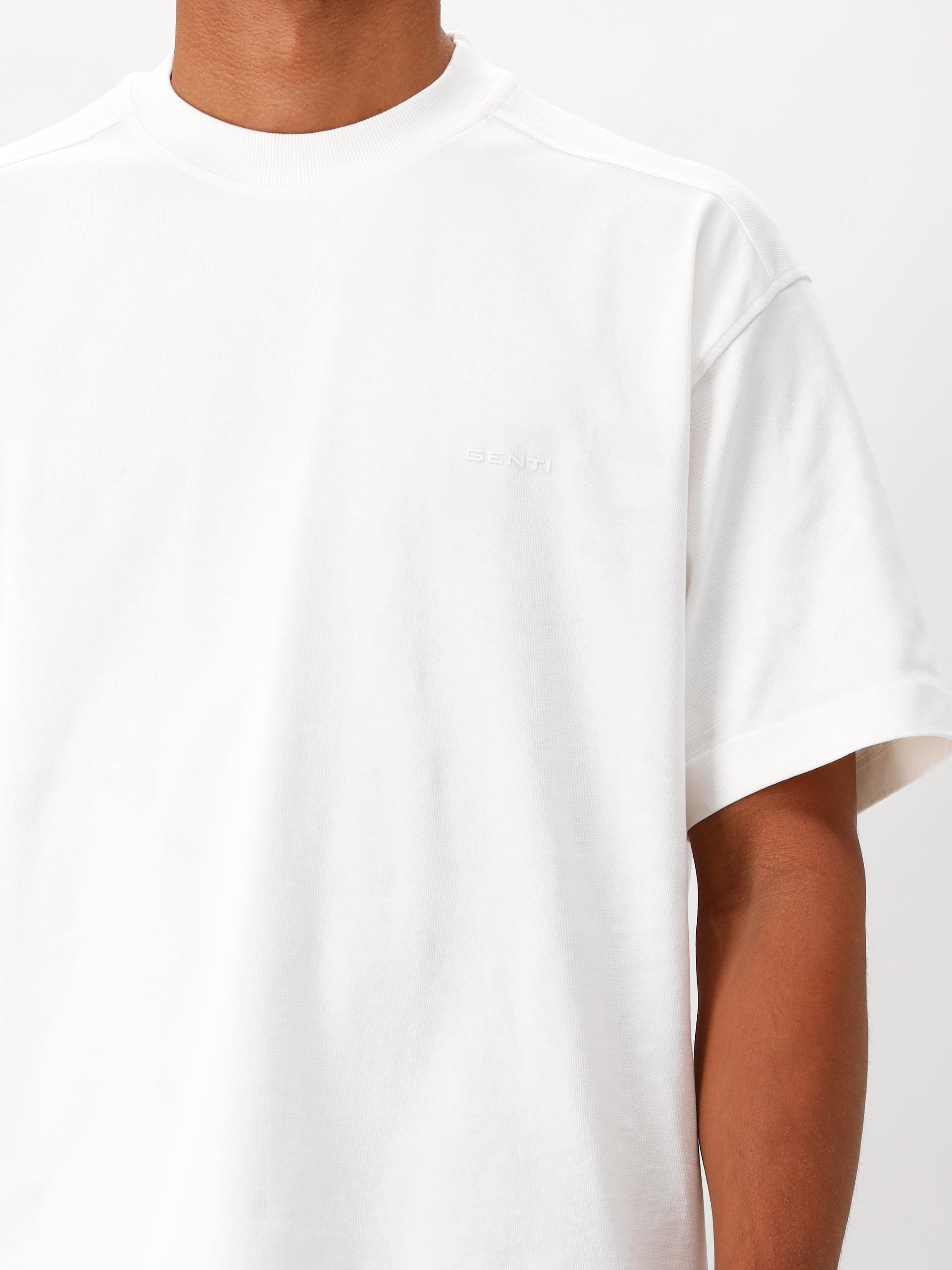 Ga voor een perfecte streetwear look dankzij dit oversized T-shirt van Genti! De witte kleur is gemakkelijk te stijlen op verschillende broeken. Op de rug vind je een merkdesign terug.