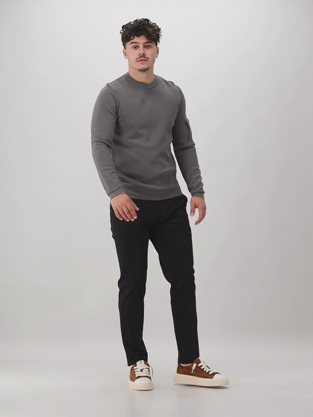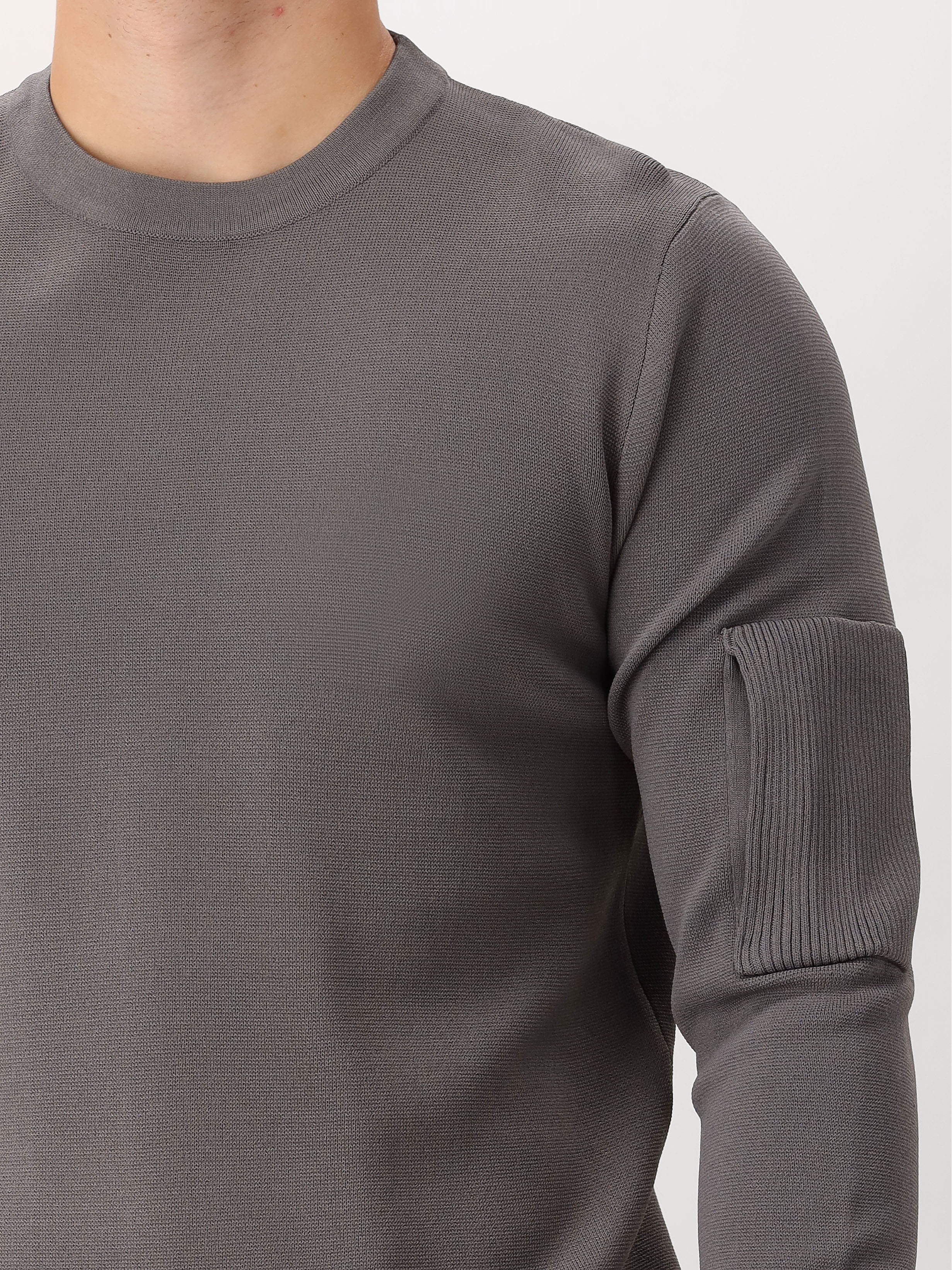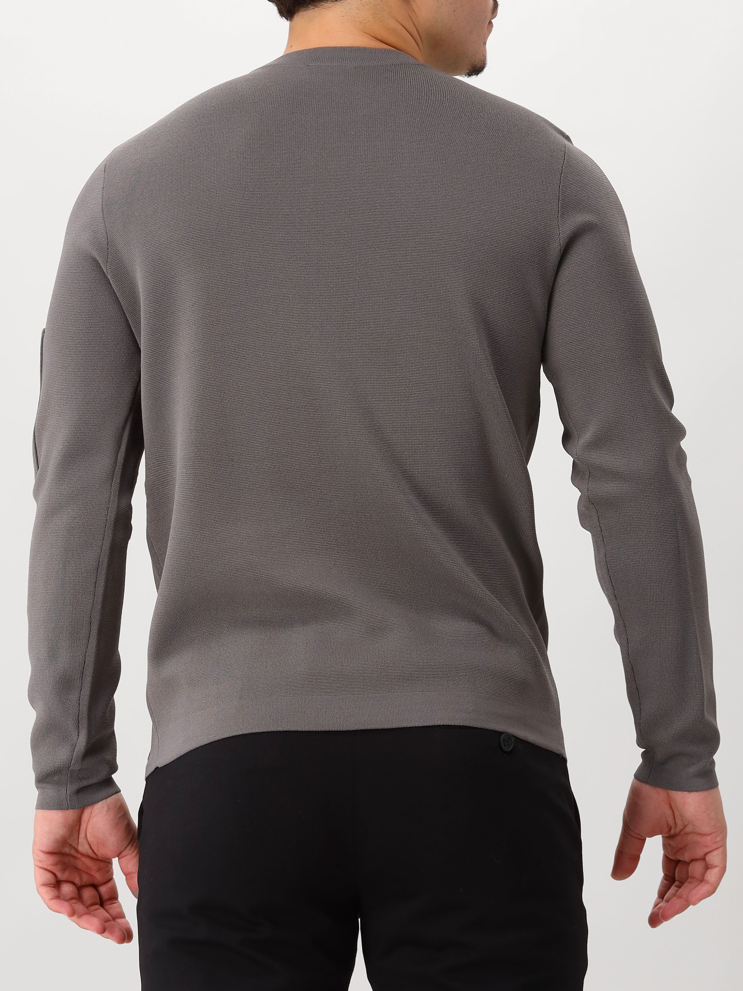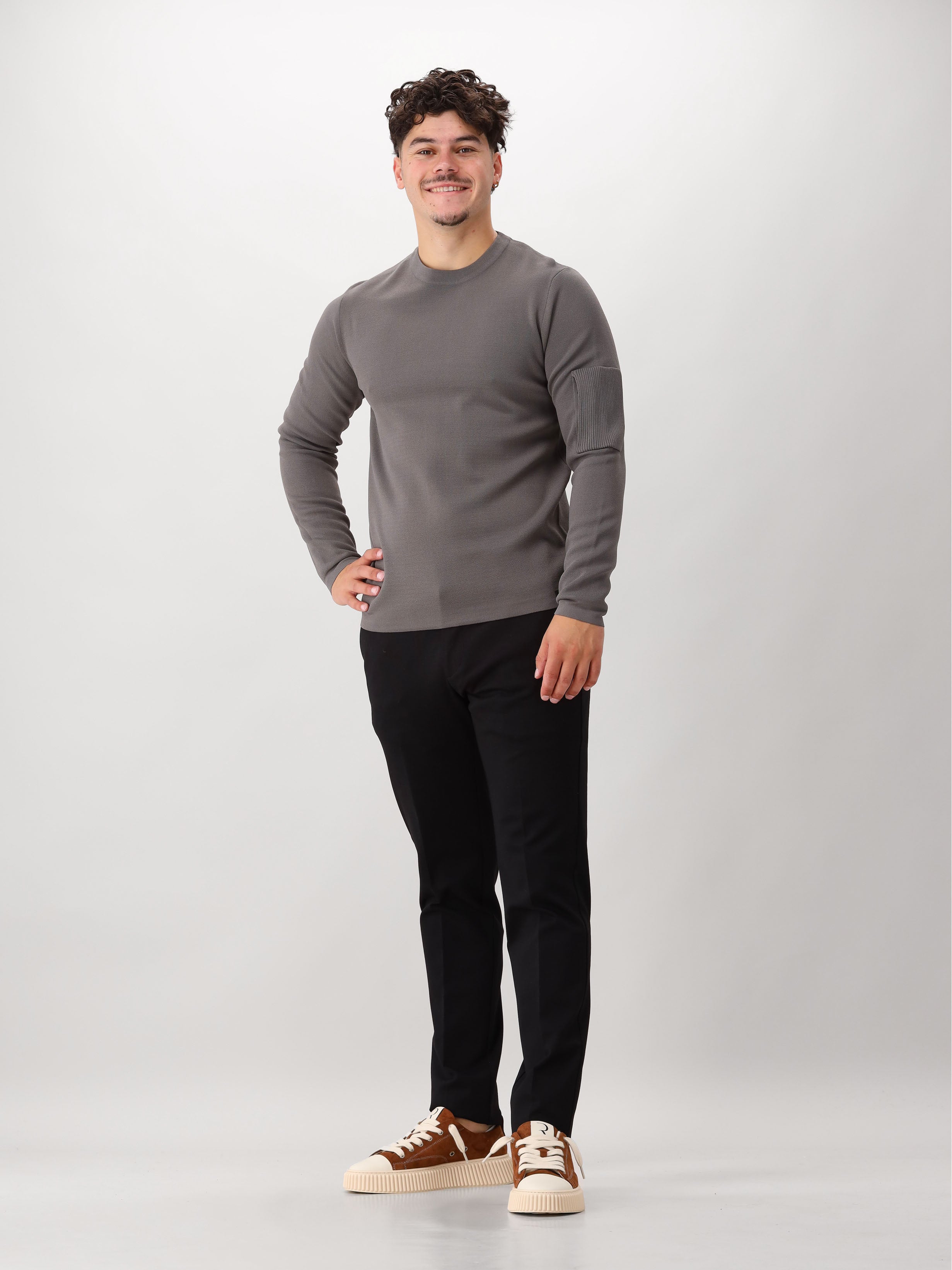 Deze grijze gebreide trui van Genti is ontzettend comfortabel. De trui bestaat uit een mix van viscose en polyamide. Dit maakt het item rekbaar. De gebreide trui heeft een getailleerde fitting, op de onderzijde vind je een klein merklabel.