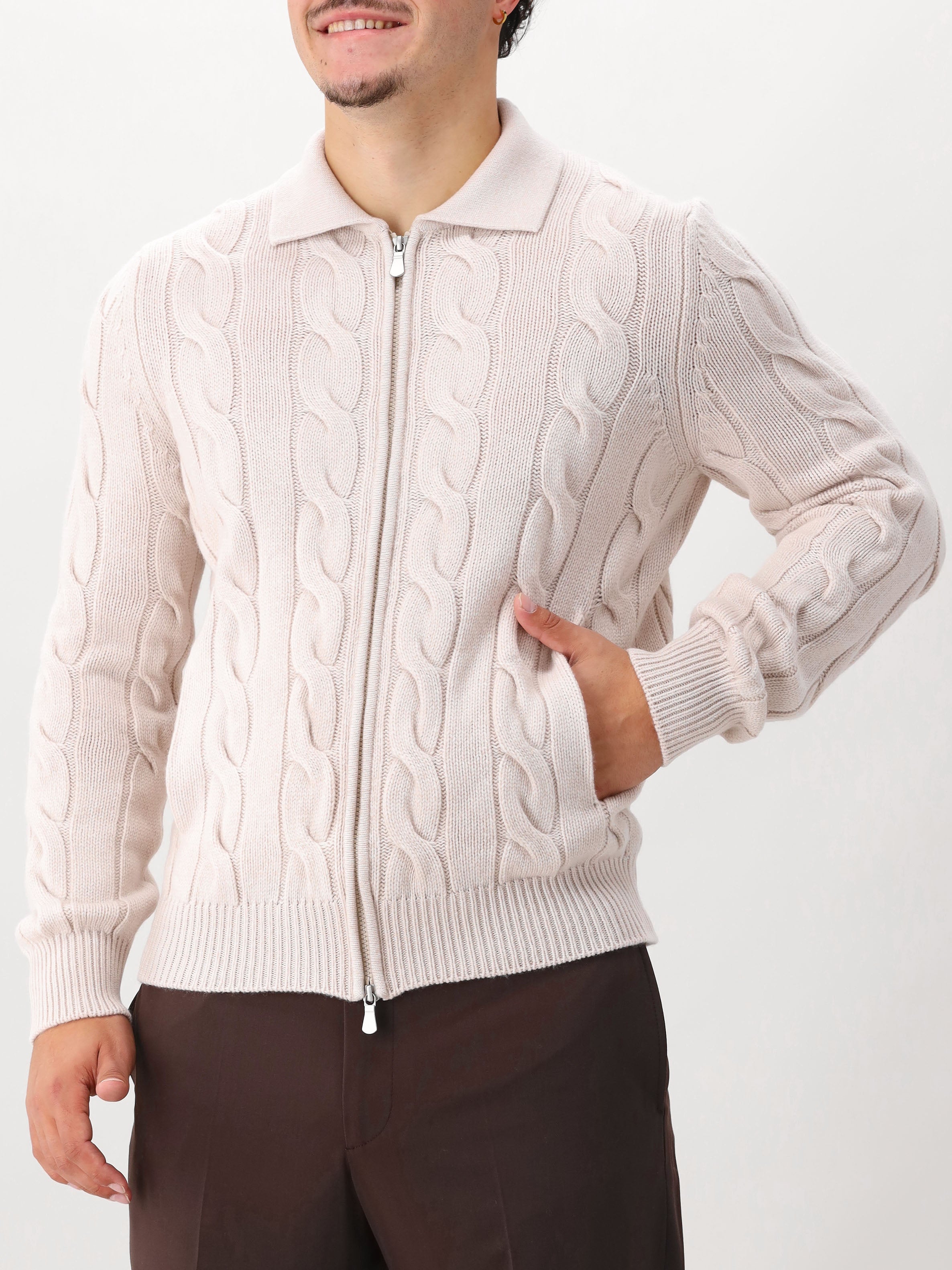 Dit beige gebreide vest van Gran Sasso is tijdloos, elegant en stijlvol. Het vest bestaat uit een mix van wol, kajsmier en viscose. Hierdoor voelt het vest ontzettend zacht aan, wat het comfort aanzienlijk verhoogd. Het gebreide patroon is tijdloos en een leuke touch aan het vest!