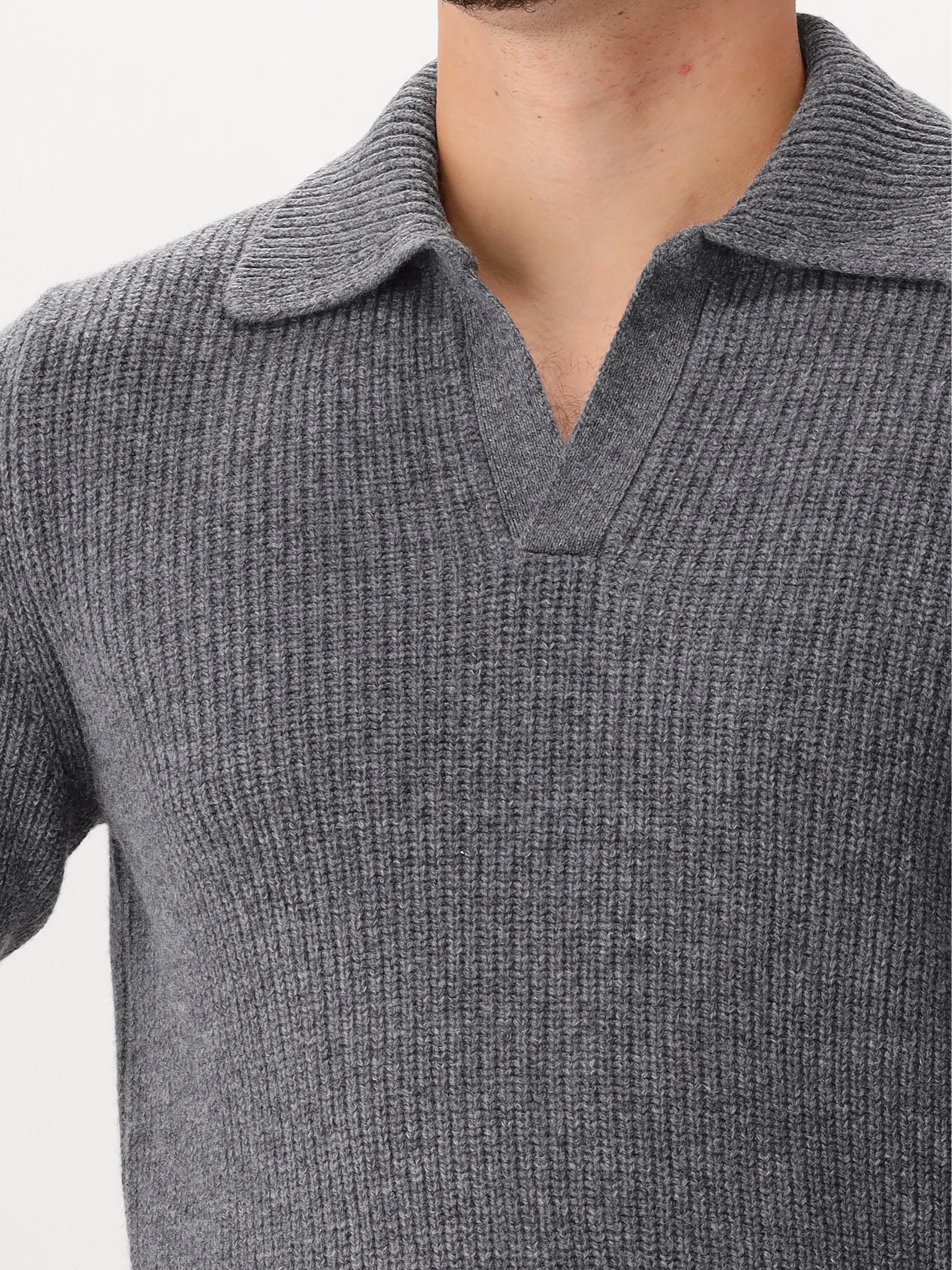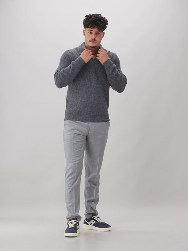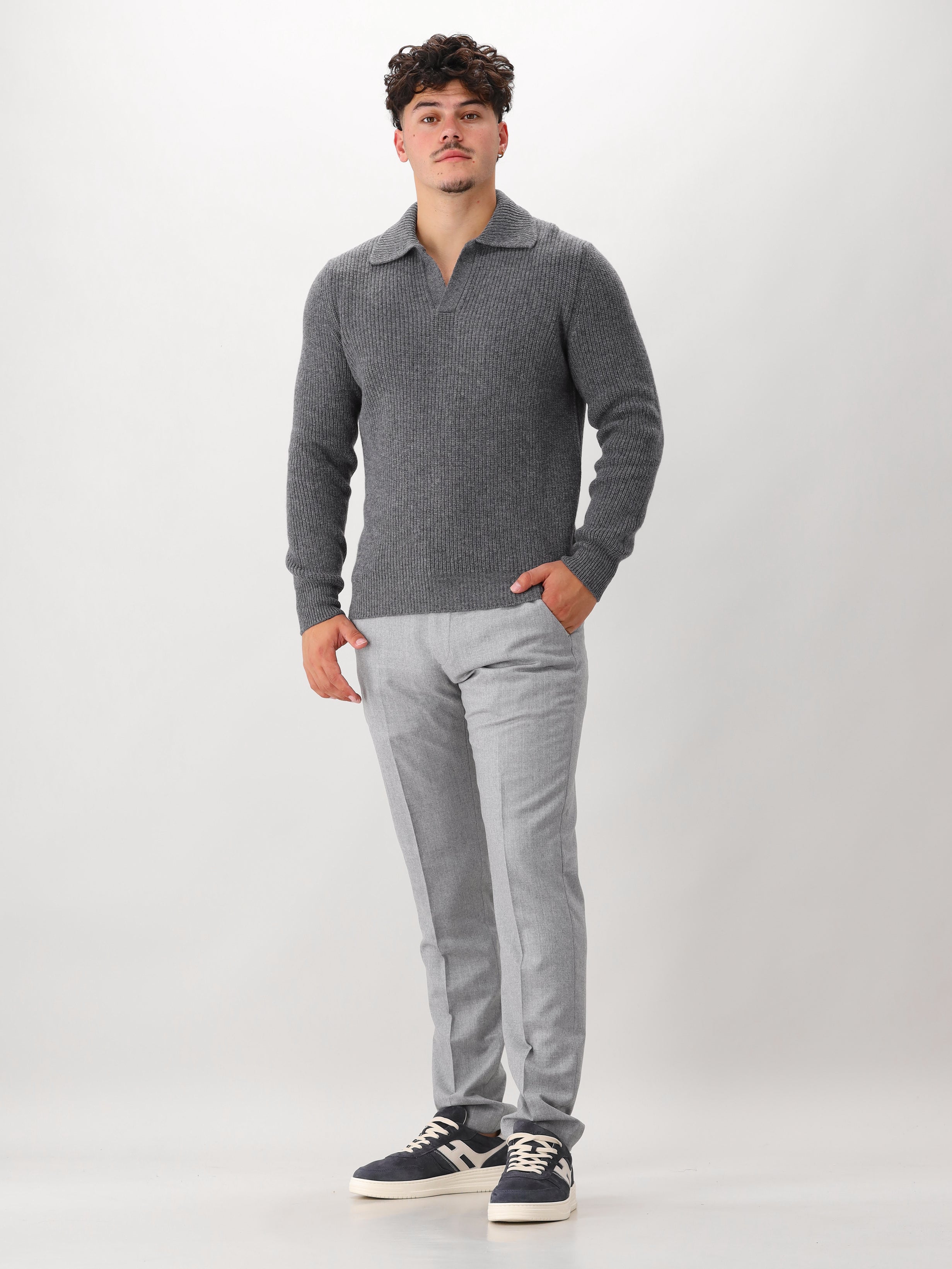 Gran Sasso Gebreide Longsleeve Polo Grijs