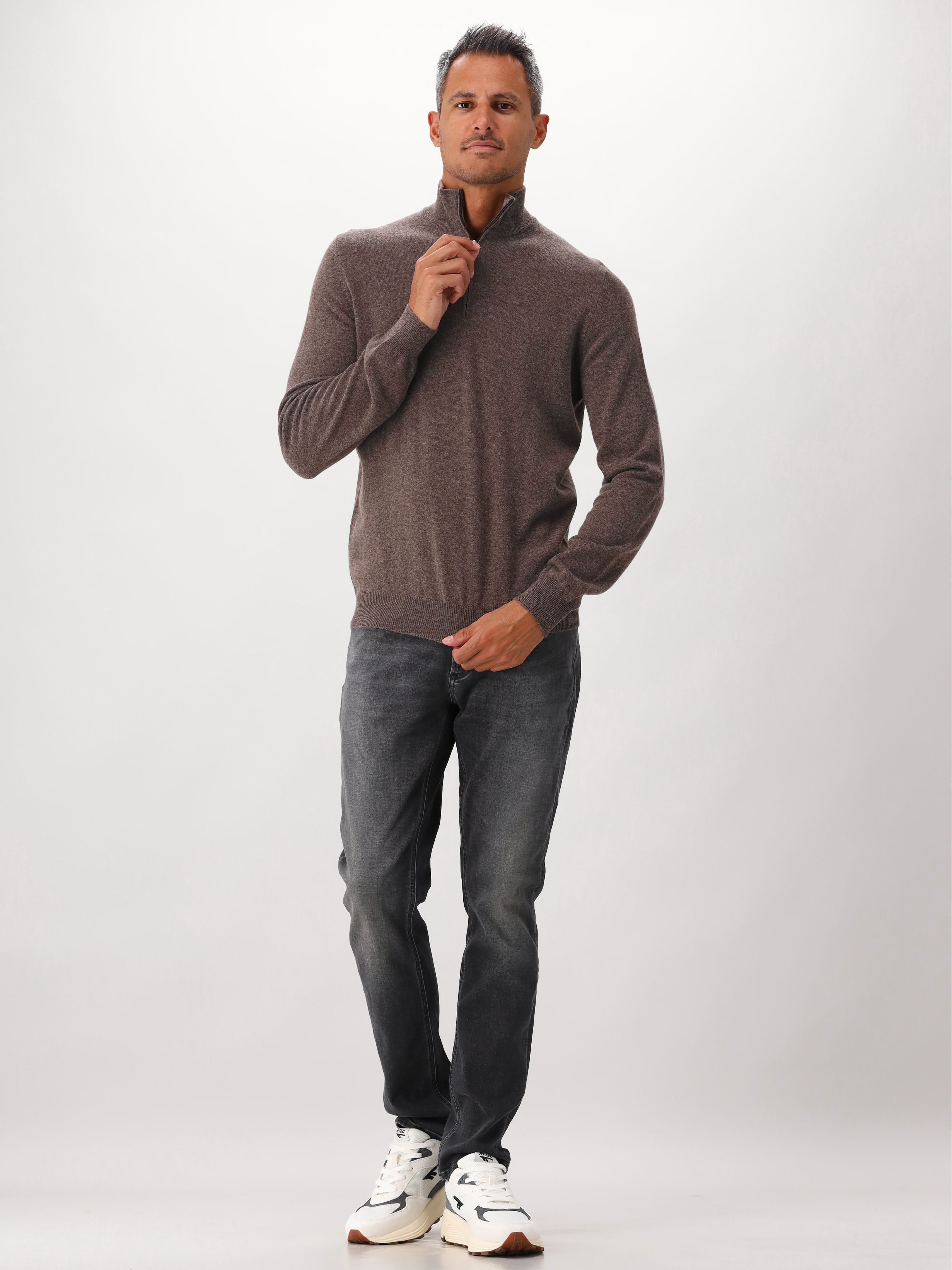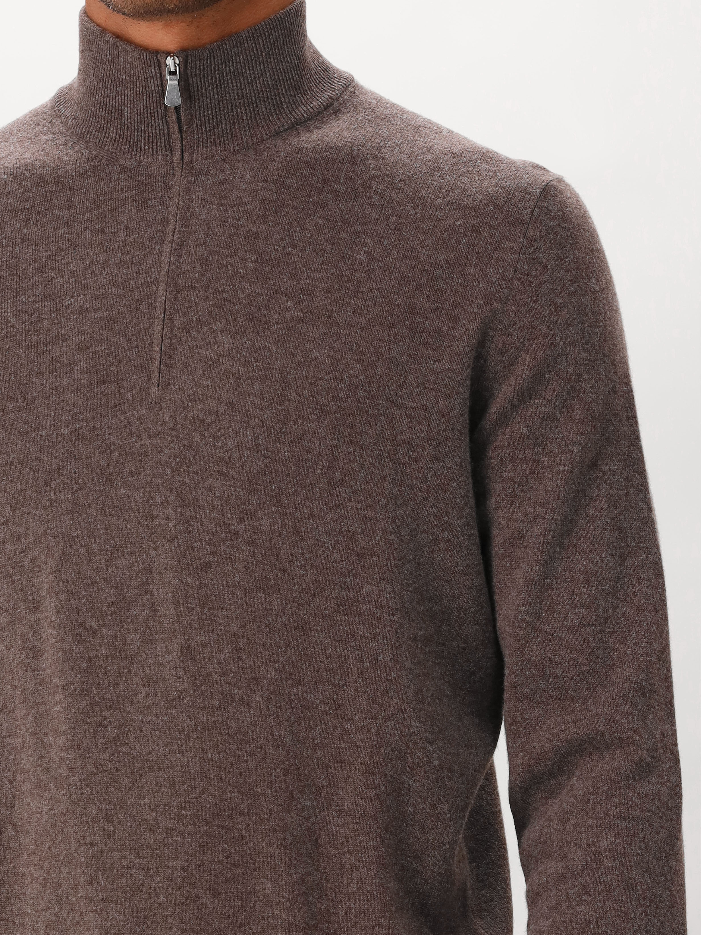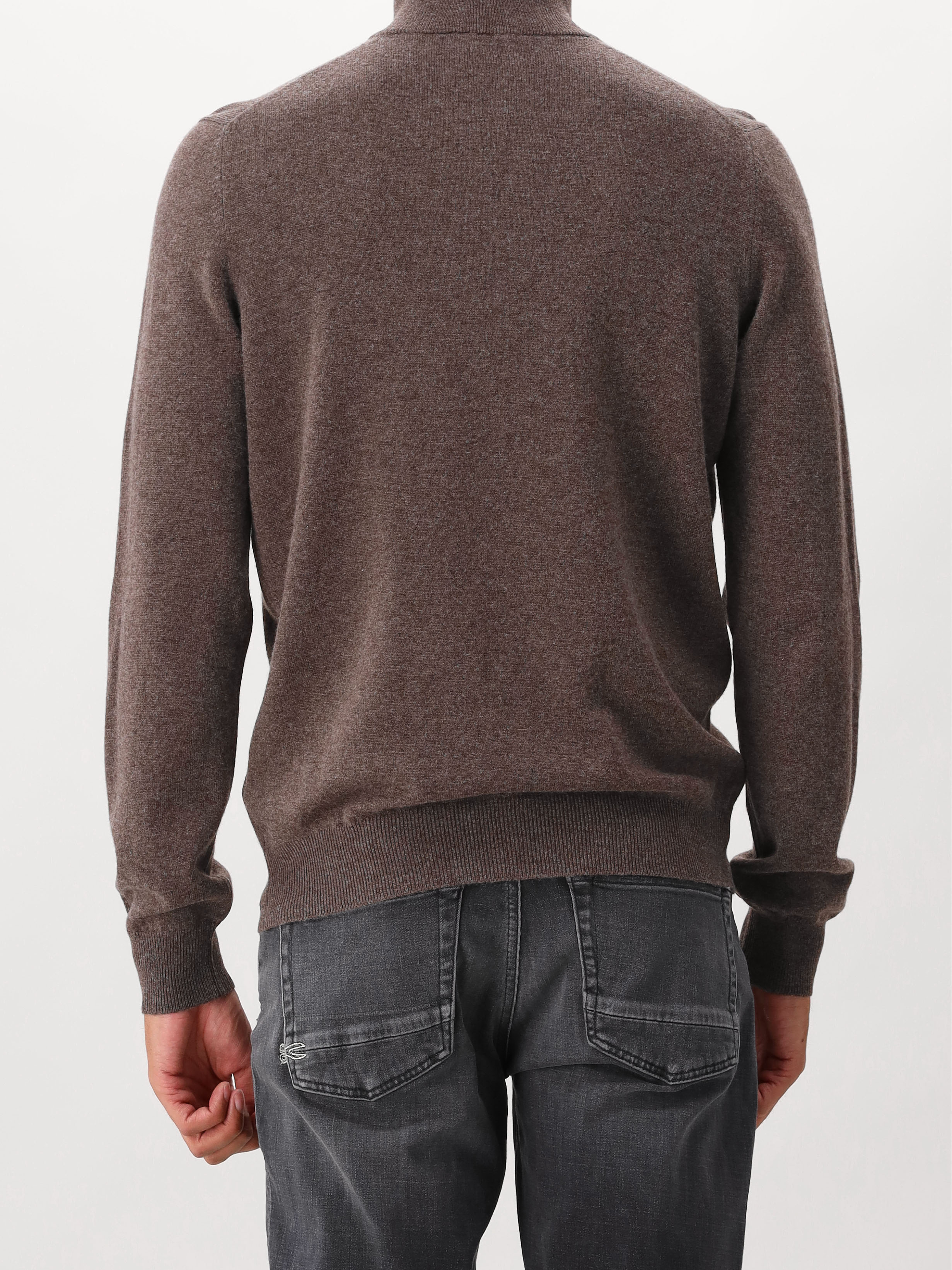 Kies voor deze gebreide half-zip trui van Gran Sasso. De trui bestaat uit een mix van onbewerkte wol, kasjmier en viscose. De bruine kleur is tijdloos en perfect te stijlen op verschillende jeans en pantalons.