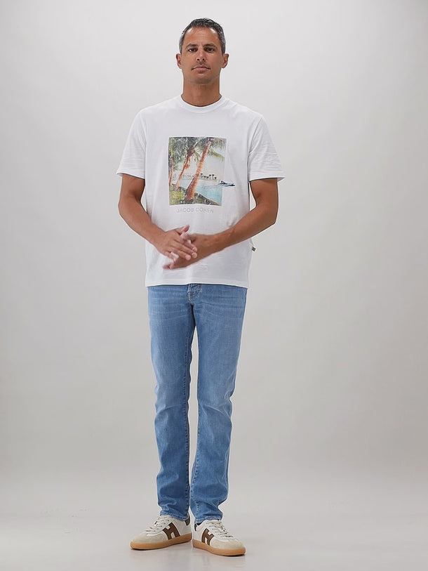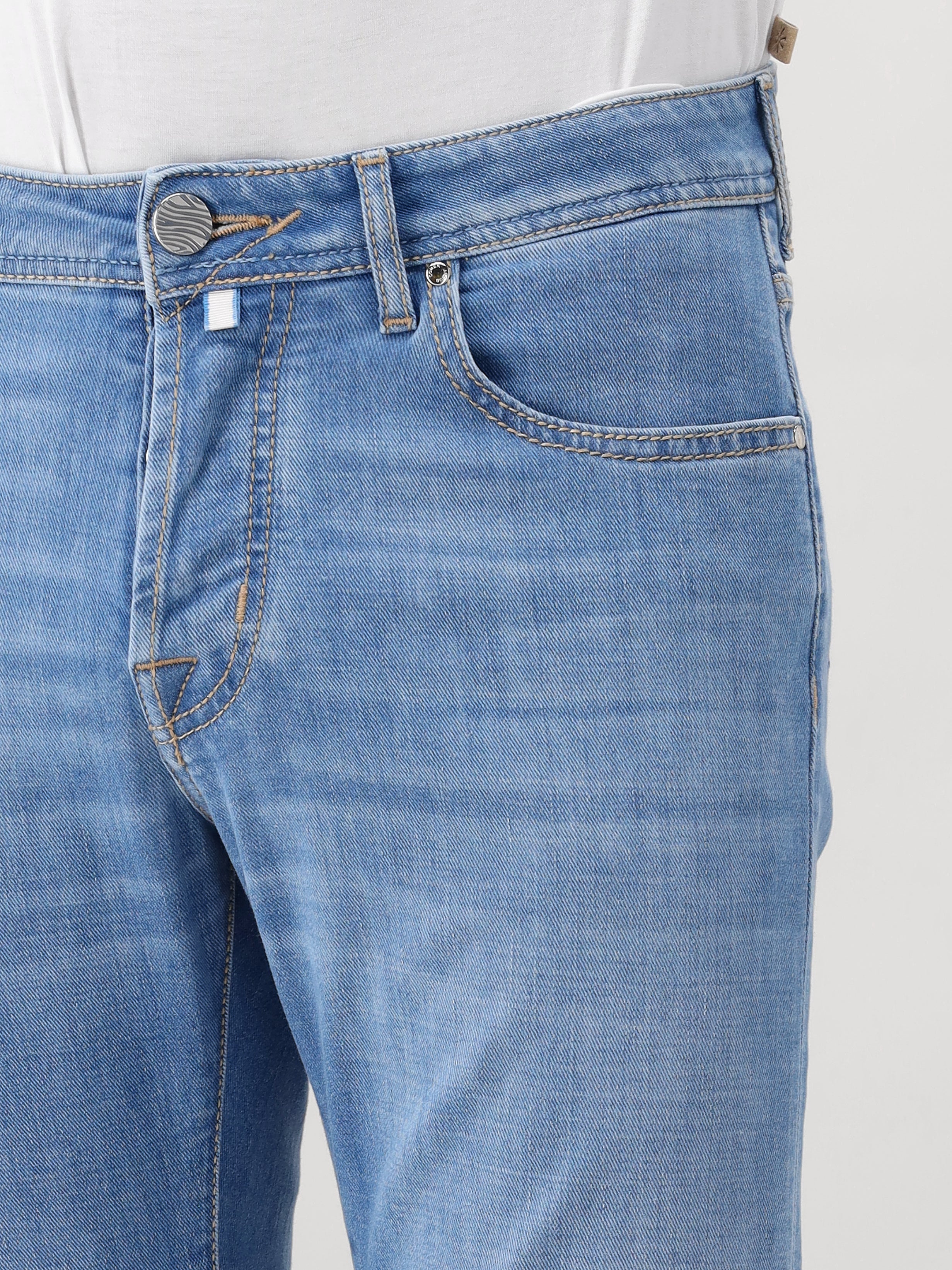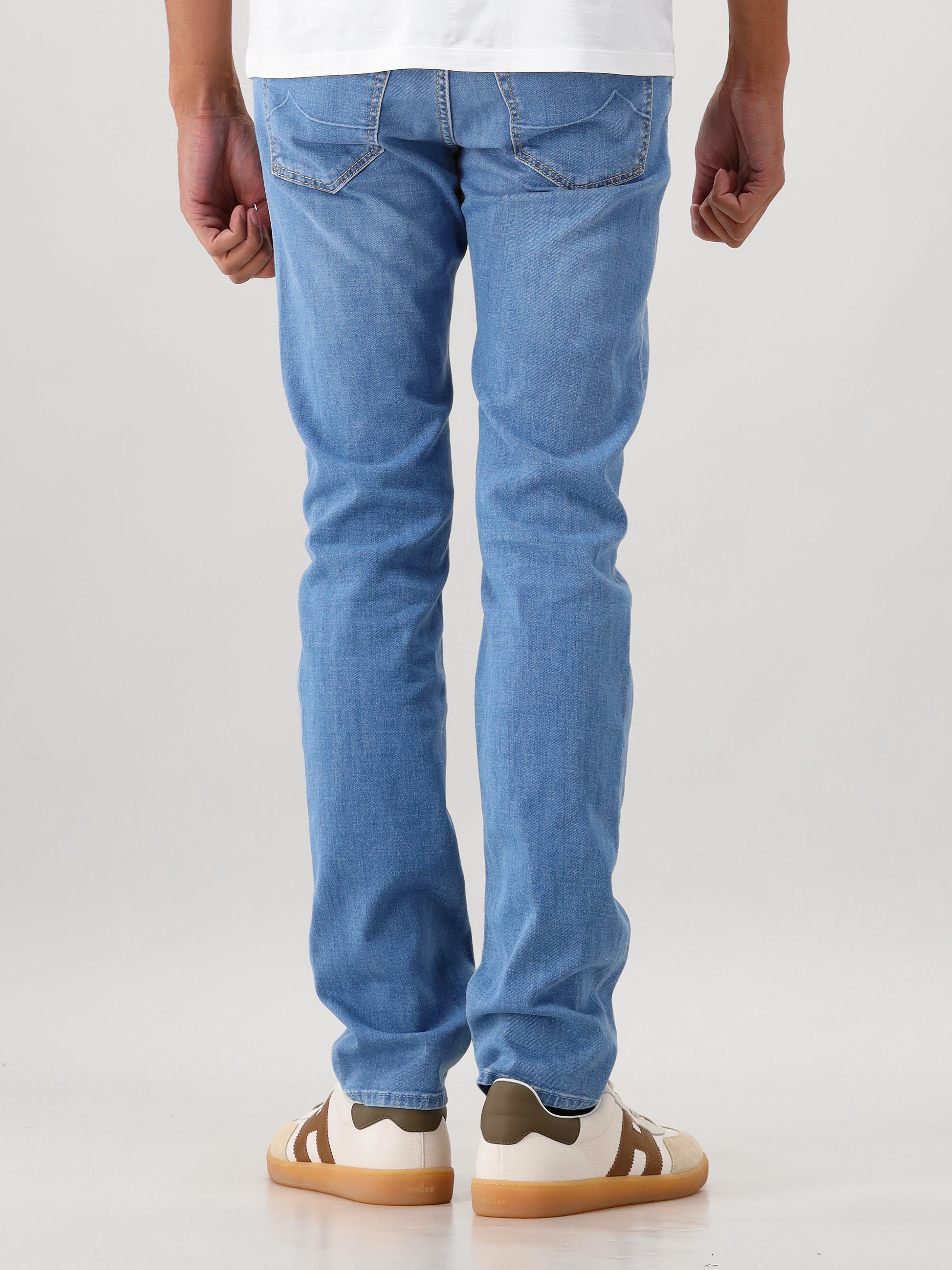 Deze lichtblauwe jeans van Jacob Cohën uit de Bard collectie biedt een iets ruimere pasvorm dan het Nick Slim model, zonder in te boeten aan stijl. De Bard fit is perfect voor wie op zoek is naar een comfortabele jeans met een getailleerde maar niet te strakke pasvorm.