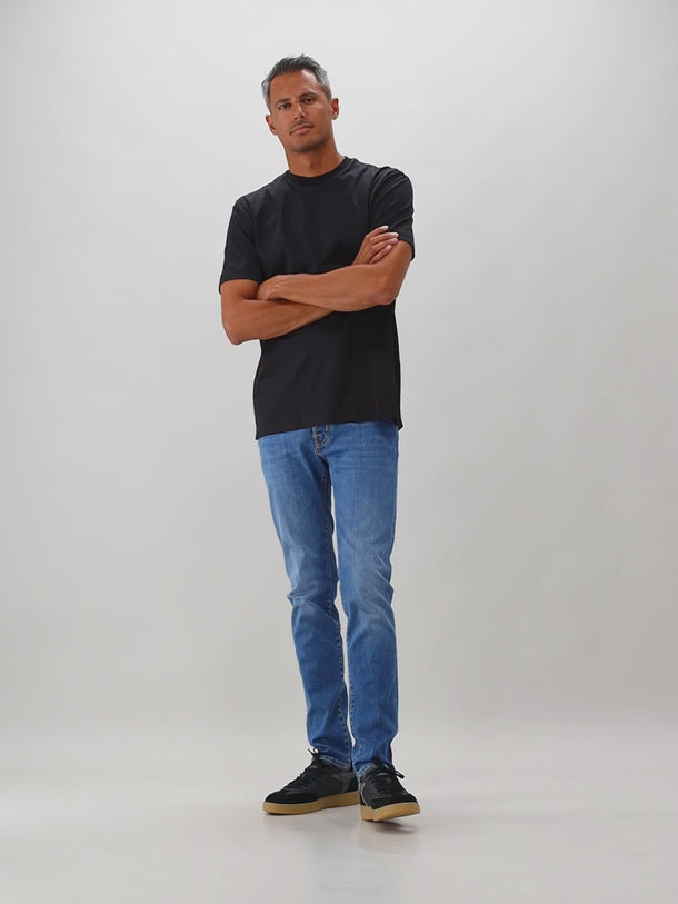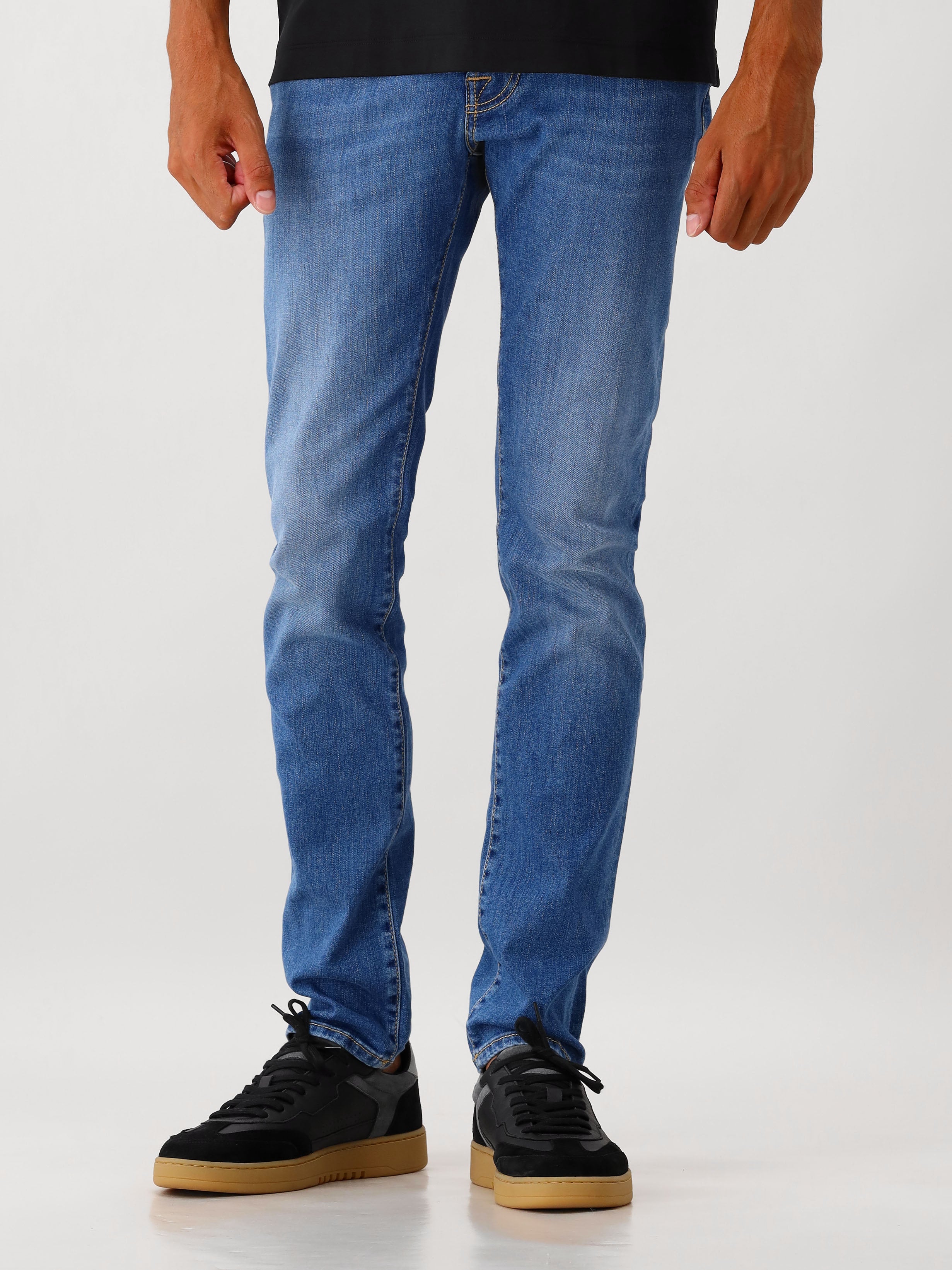Deze blauwe jeans van Jacob Cohën zijn elegant en hebben een slim-fitting. Door de gehele broek vind je details die tot in de puntjes zijn afgewerkt. Op de achterzijde van de tailleband vind je de merkpatch van Cohën terug.