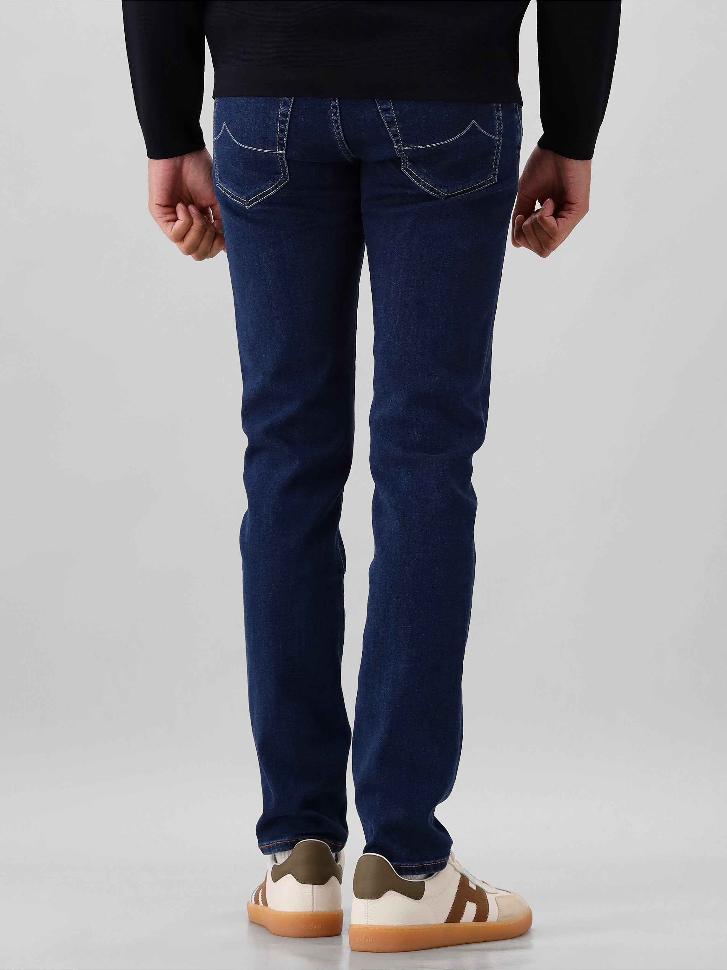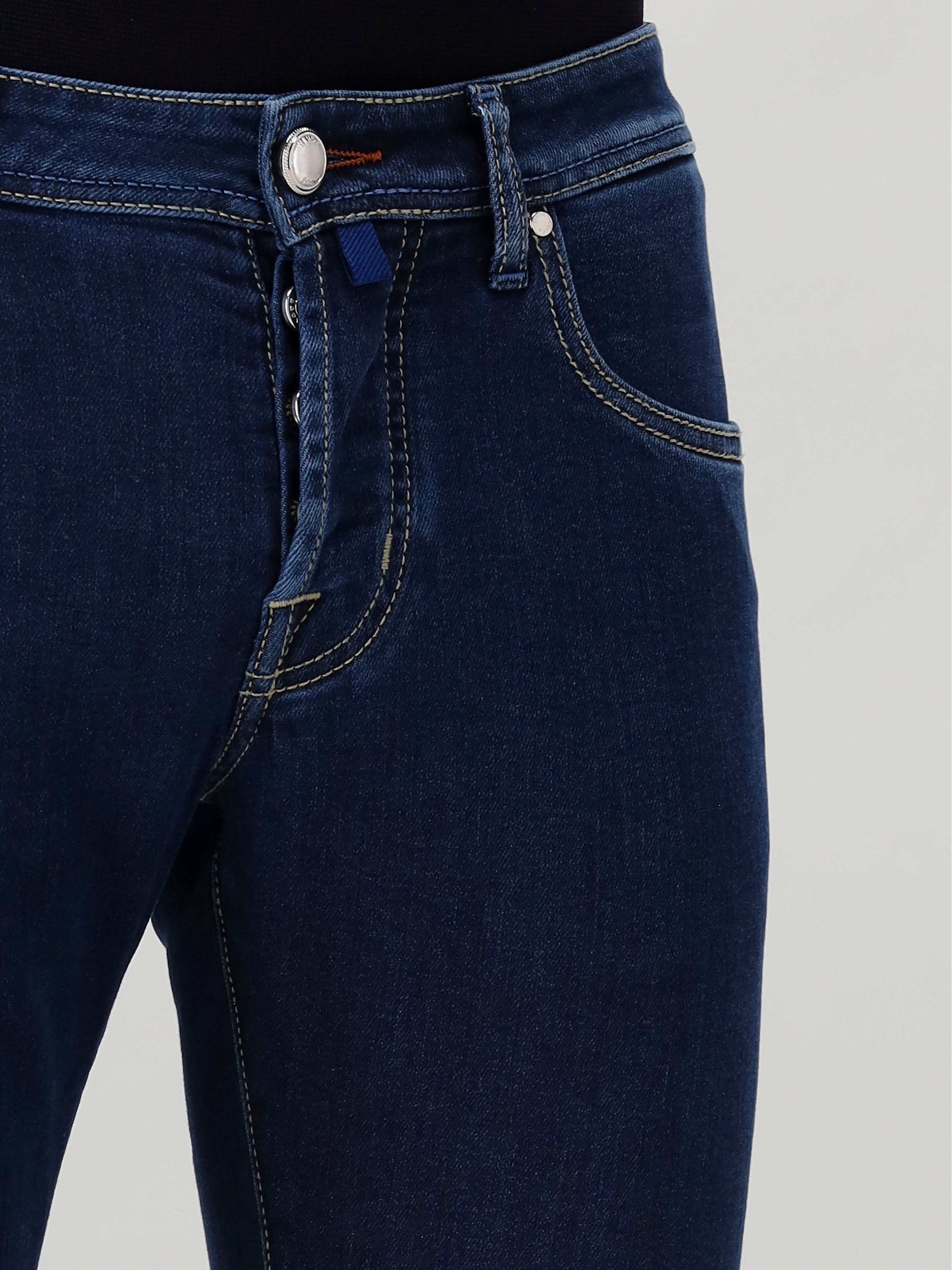Ondanks de strakke pasvorm biedt deze jeans uitstekend draagcomfort dankzij het premium denim met een doordachte stretch. De donkerblauwe wassing is veelzijdig en geschikt voor zowel casual als formele gelegenheden. Jacob Cohën's kenmerkende aandacht voor detail komt tot uiting in de handgemaakte leren patch, de zorgvuldig afgewerkte naden en de hoogwaardige hardware.