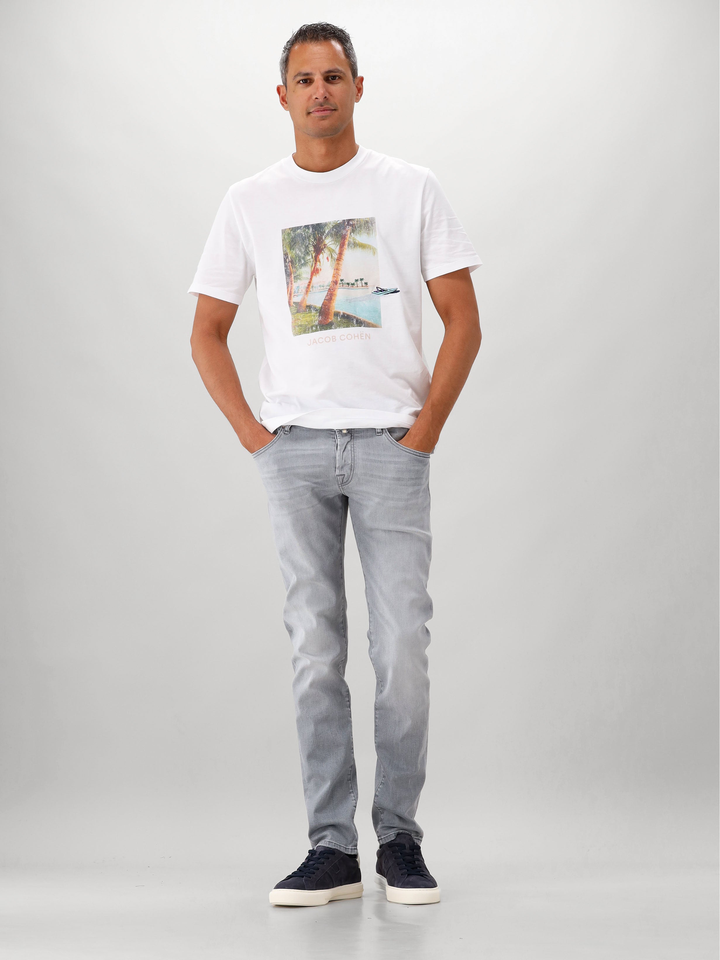 Jacob Cohën's kenmerkende aandacht voor detail is zichtbaar in elk aspect van deze jeans: van de handgemaakte leren patch op de achterzijde tot de zorgvuldig afgewerkte stiksels en hoogwaardige hardware. De klassieke vijf-zakken indeling en knoopsluiting completeren het design. Draag deze grijze jeans met een wit overhemd voor een frisse look of met een donkere trui voor een stijlvol contrast.