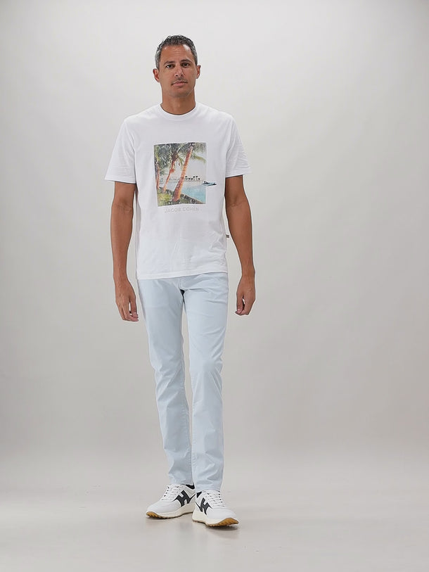 Deze lichtblauwe jeans van Jacob Cohën uit de Nick Slim collectie biedt een frisse, zomerse uitstraling. De lichte wassing maakt deze jeans perfect voor de warmere maanden en geeft je outfit een ontspannen maar verzorgde look die geschikt is voor diverse gelegenheden.