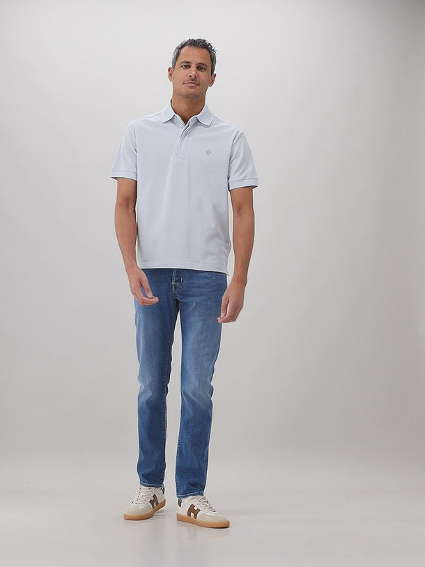 Deze lichtblauwe polo van Jacob Cohën brengt een frisse, zomerse uitstraling naar je garderobe. De lichtblauwe kleur is perfect voor de warmere maanden en geeft je outfit een ontspannen maar verzorgde look die geschikt is voor diverse gelegenheden.
