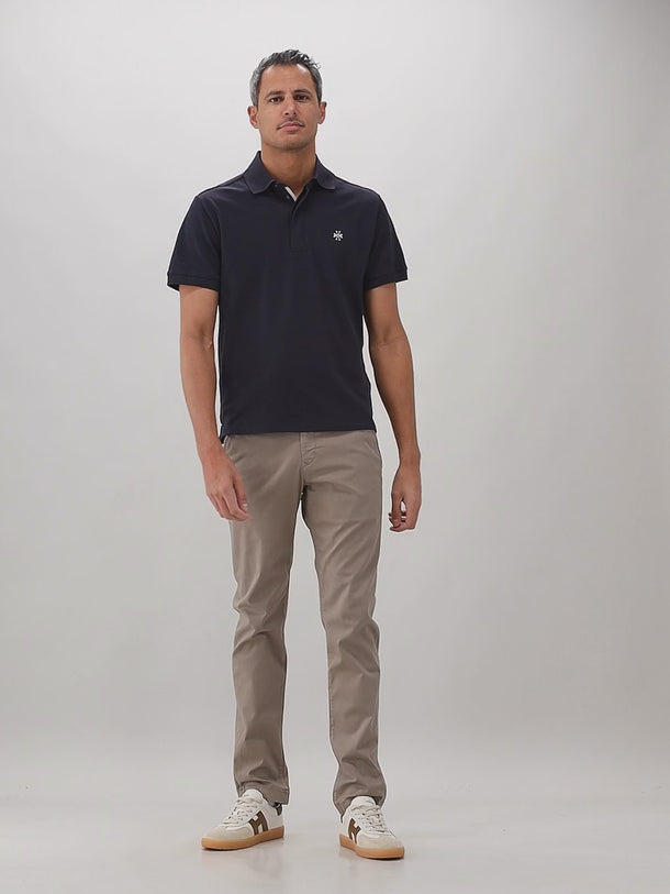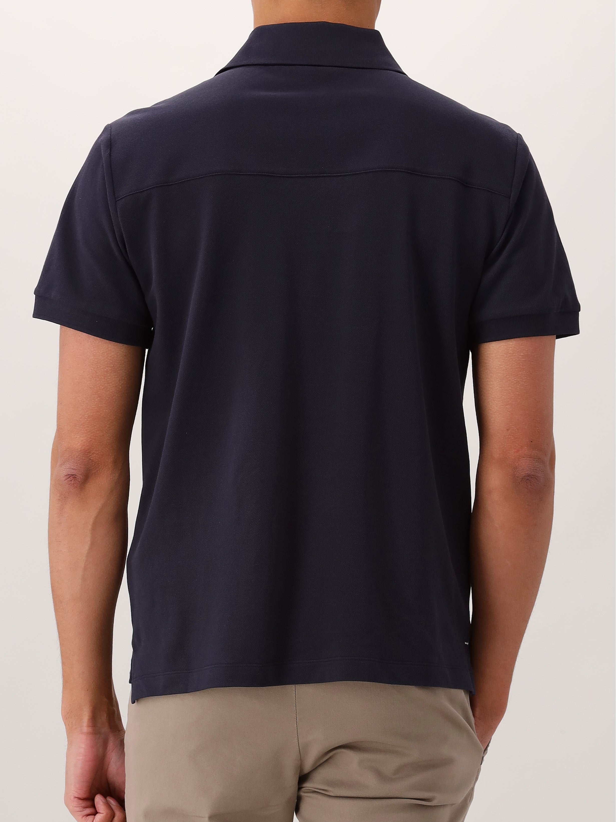 Vervaardigd uit hoogwaardige, ademende materialen, biedt deze polo optimaal draagcomfort gedurende de hele dag. De klassieke polokraag en knoopsluiting zorgen voor een nette uitstraling, terwijl de moderne pasvorm flatterend is en perfect aansluit bij hedendaagse modetrends. De donkerblauwe kleur is tijdloos en combineert prachtig met zowel lichte als donkere broeken.