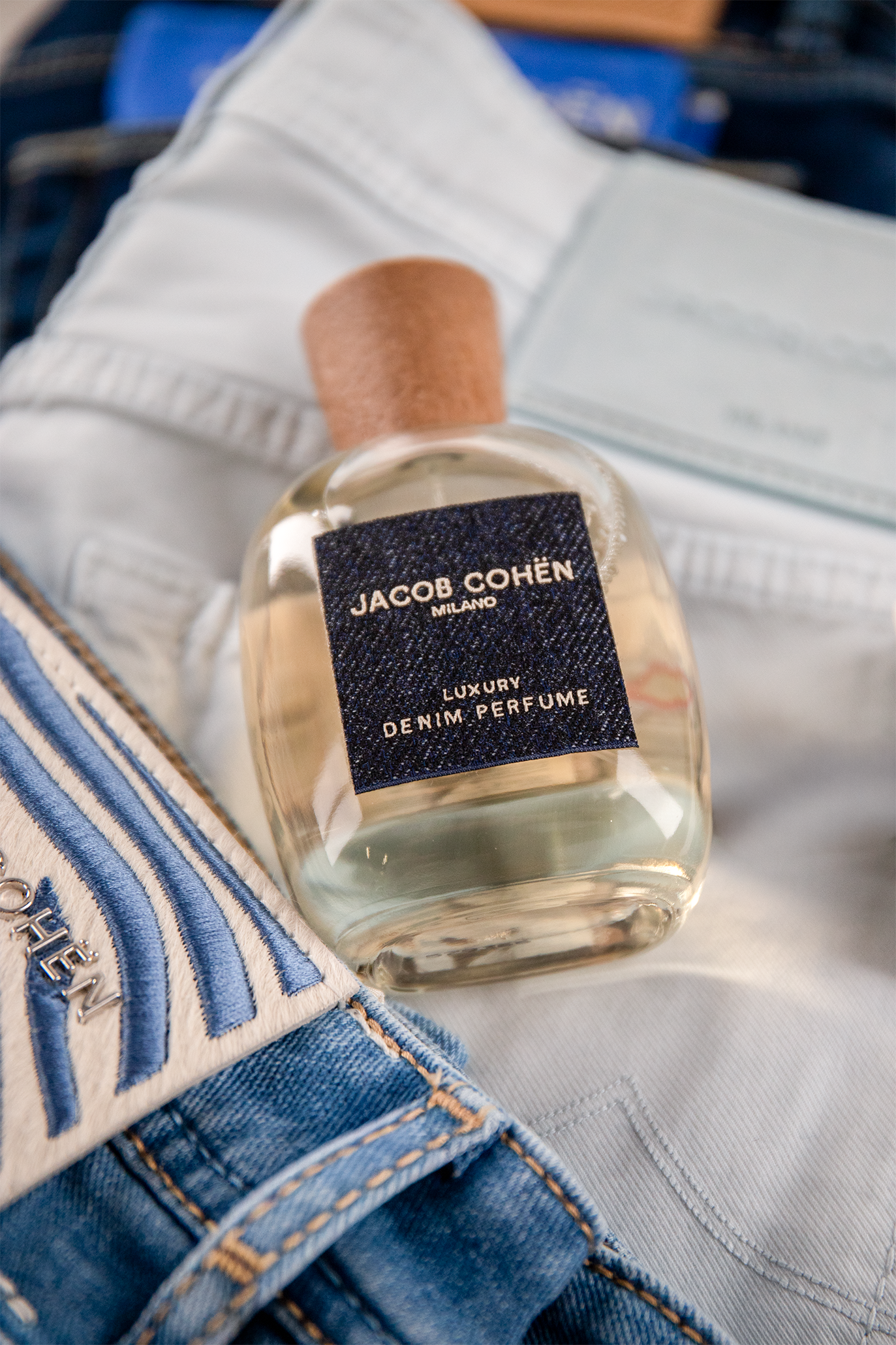 Textielgeur van Jacob Cohen. Deze ontzettend lekkere geur kun je op je denim jeans spuiten. Zo blijft je jeans altijd lekker ruiken naar de bekende Jacob Cohen denim jeans.