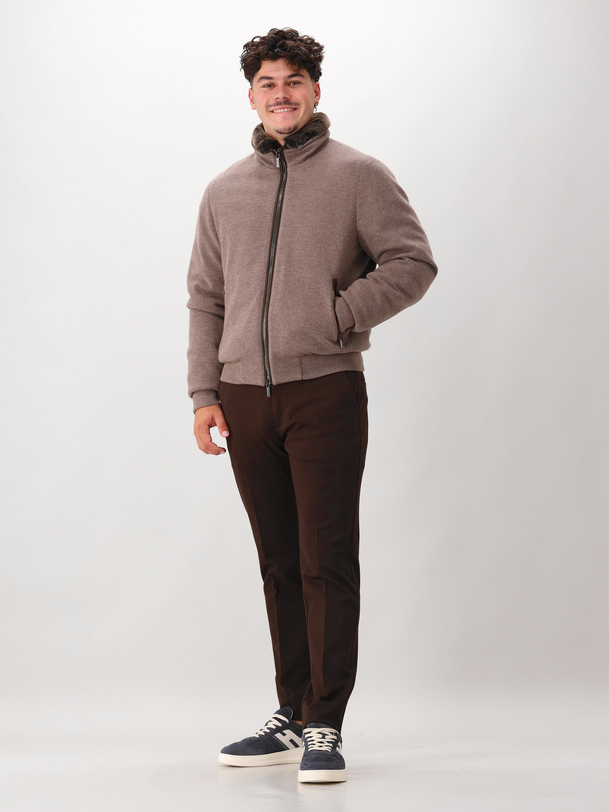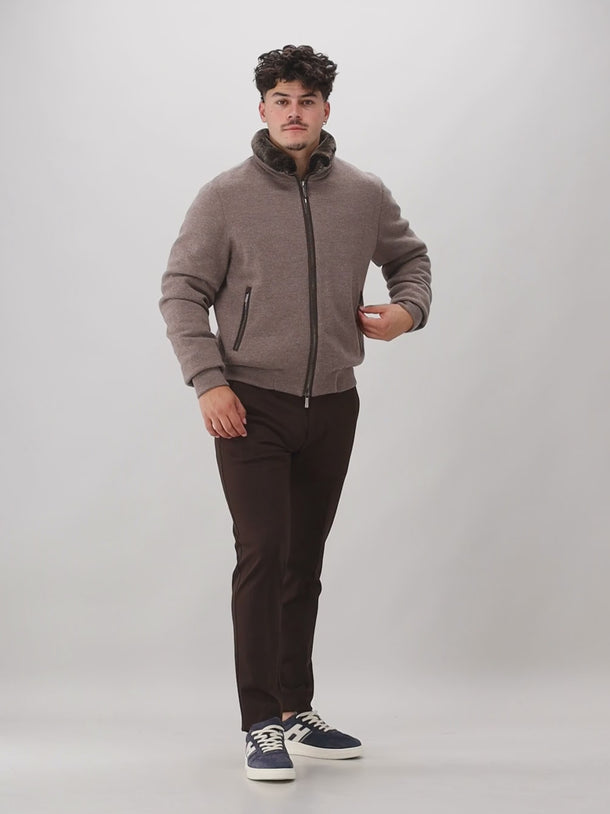 Deze stijlvolle en unieke bomberjas van Moorer bestaat aan de buitenzijde uit kasjmier en onbewerkte wol. De vacht bij de kraag is eventueel afneembaar. De afwerking van deze bomberjas is tot in de perfectie afgewerkt. De dons in de jas bestaat uit de meest verfijnde dons voor ultiem comfort.