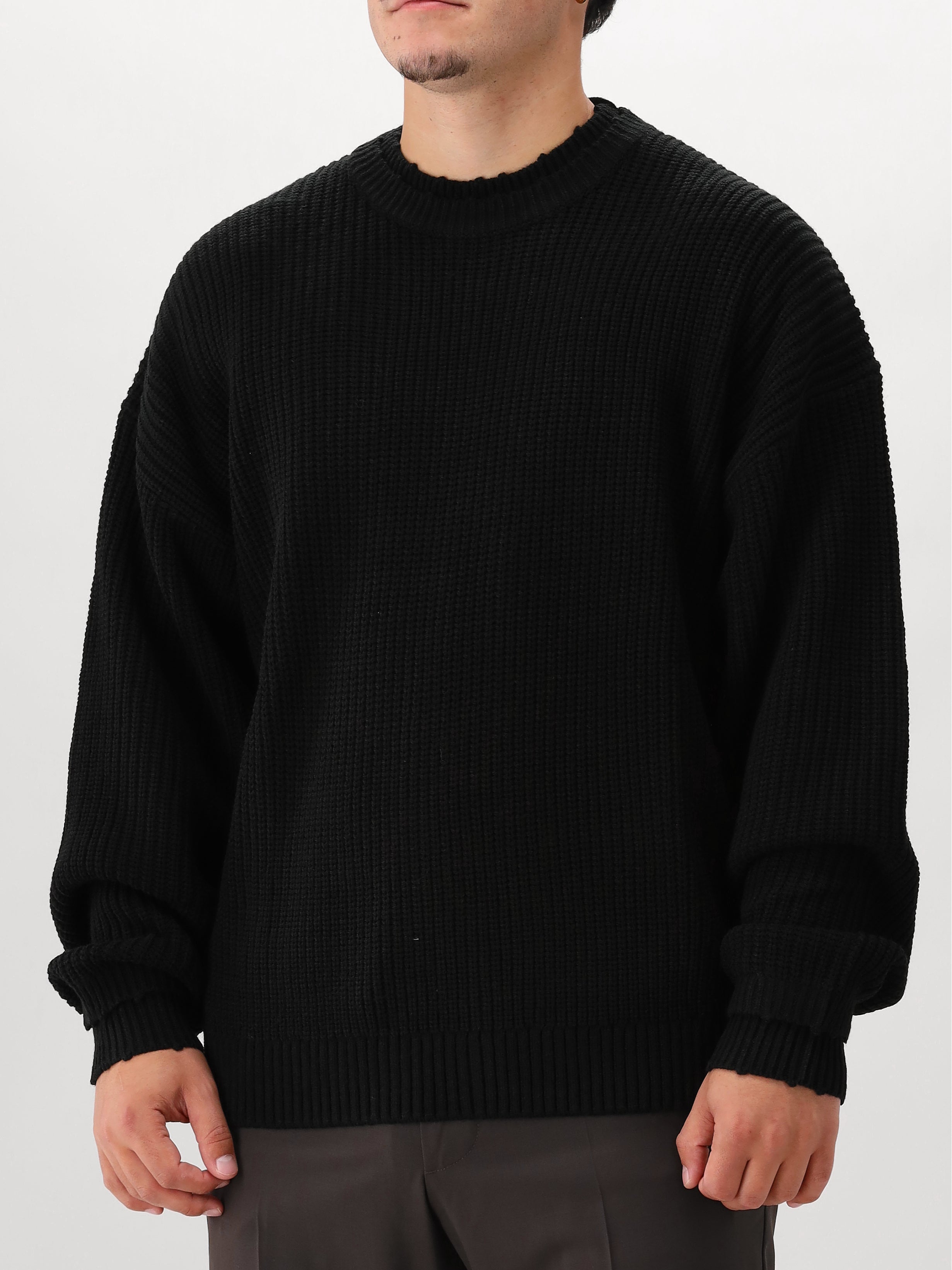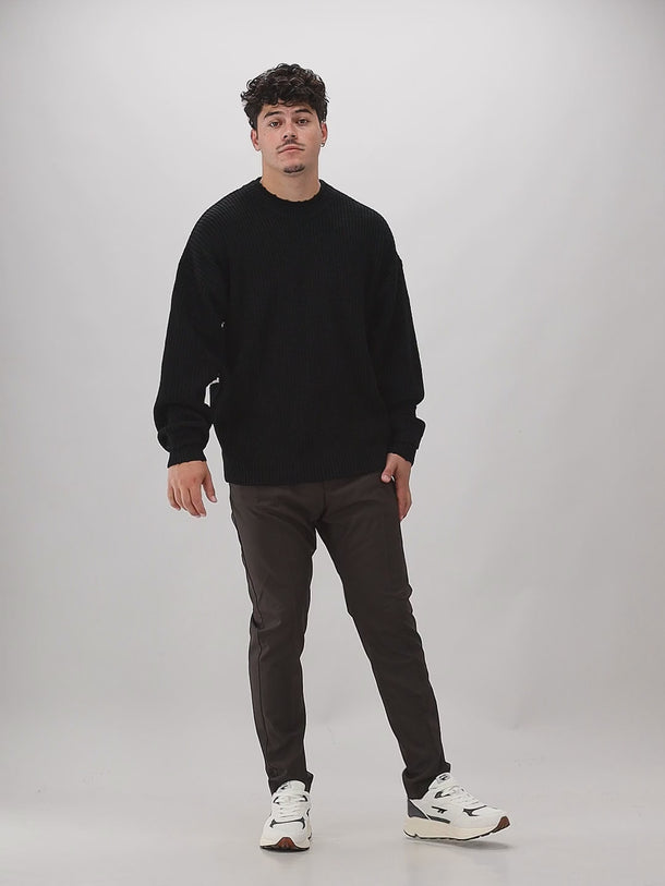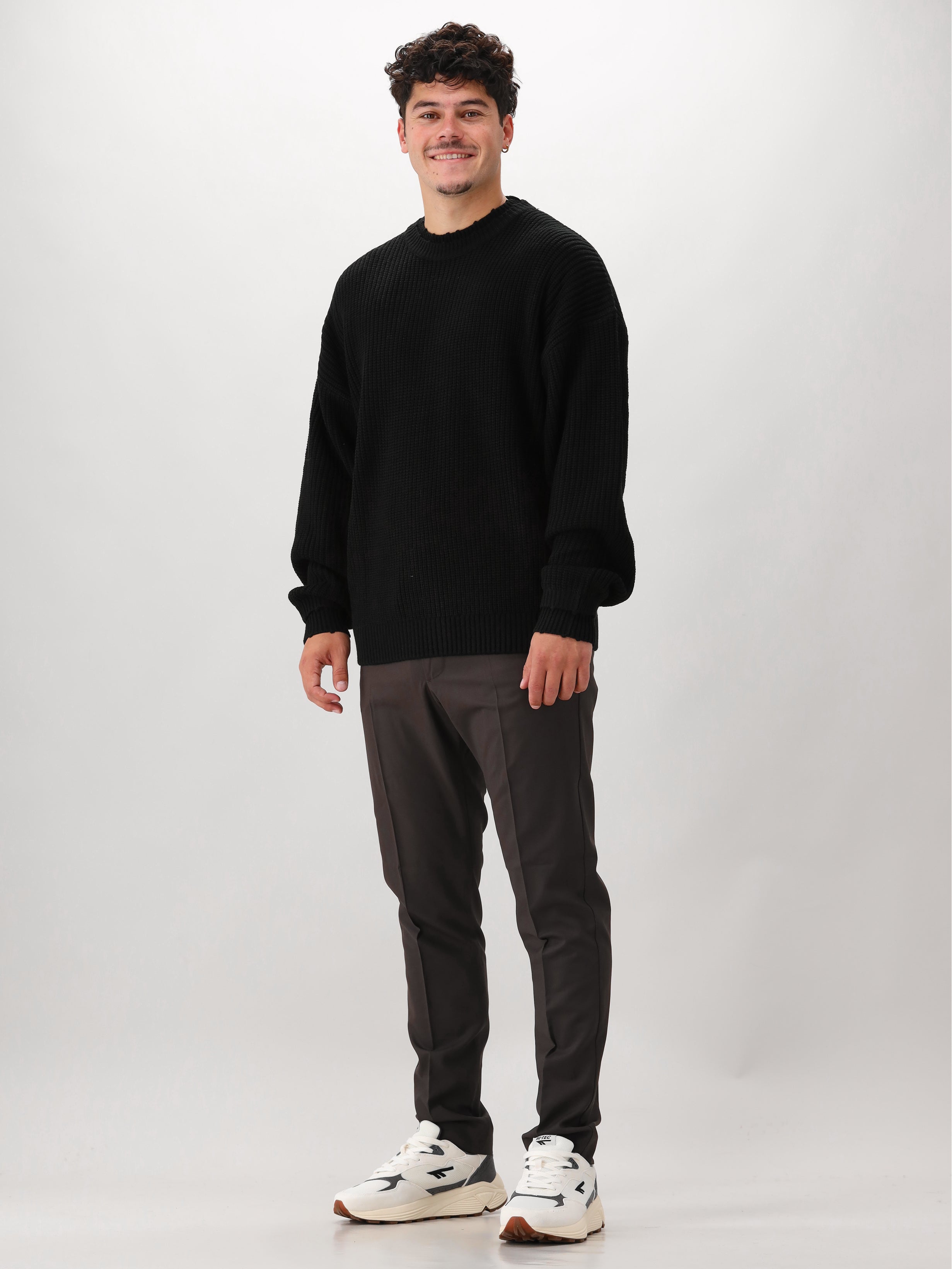 New Amsterdam Gebreide Trui Zwart Logo Raw Edge