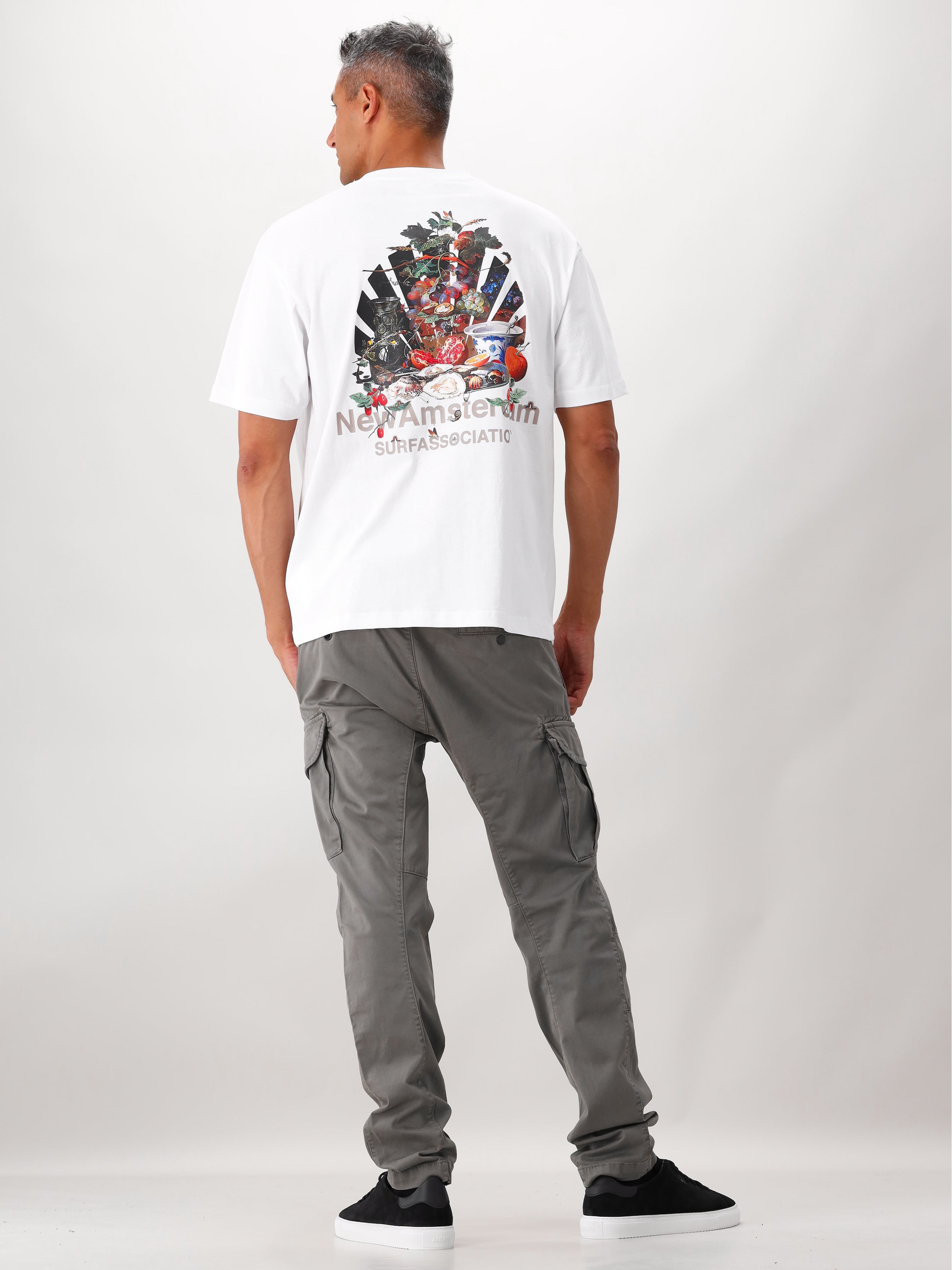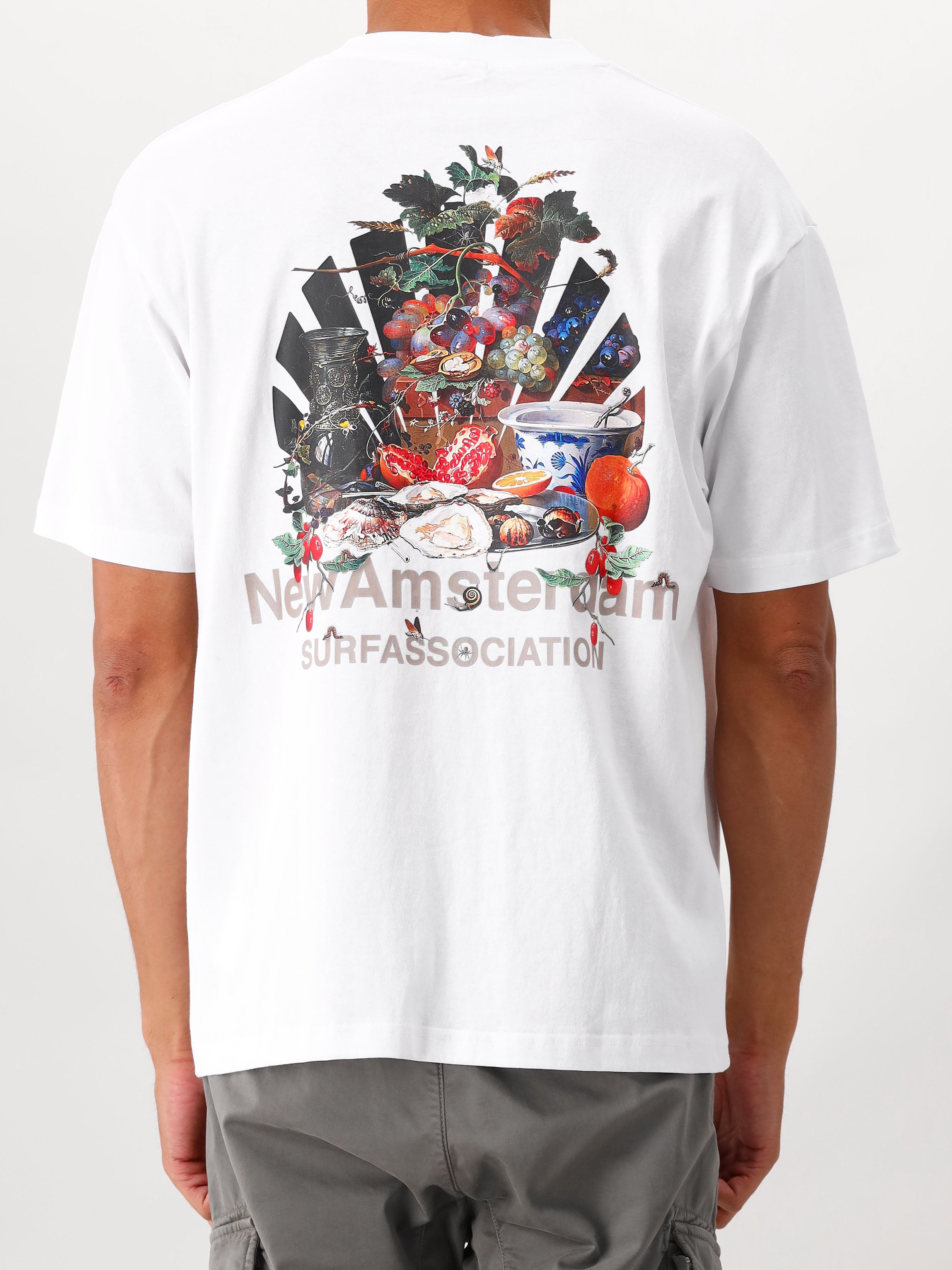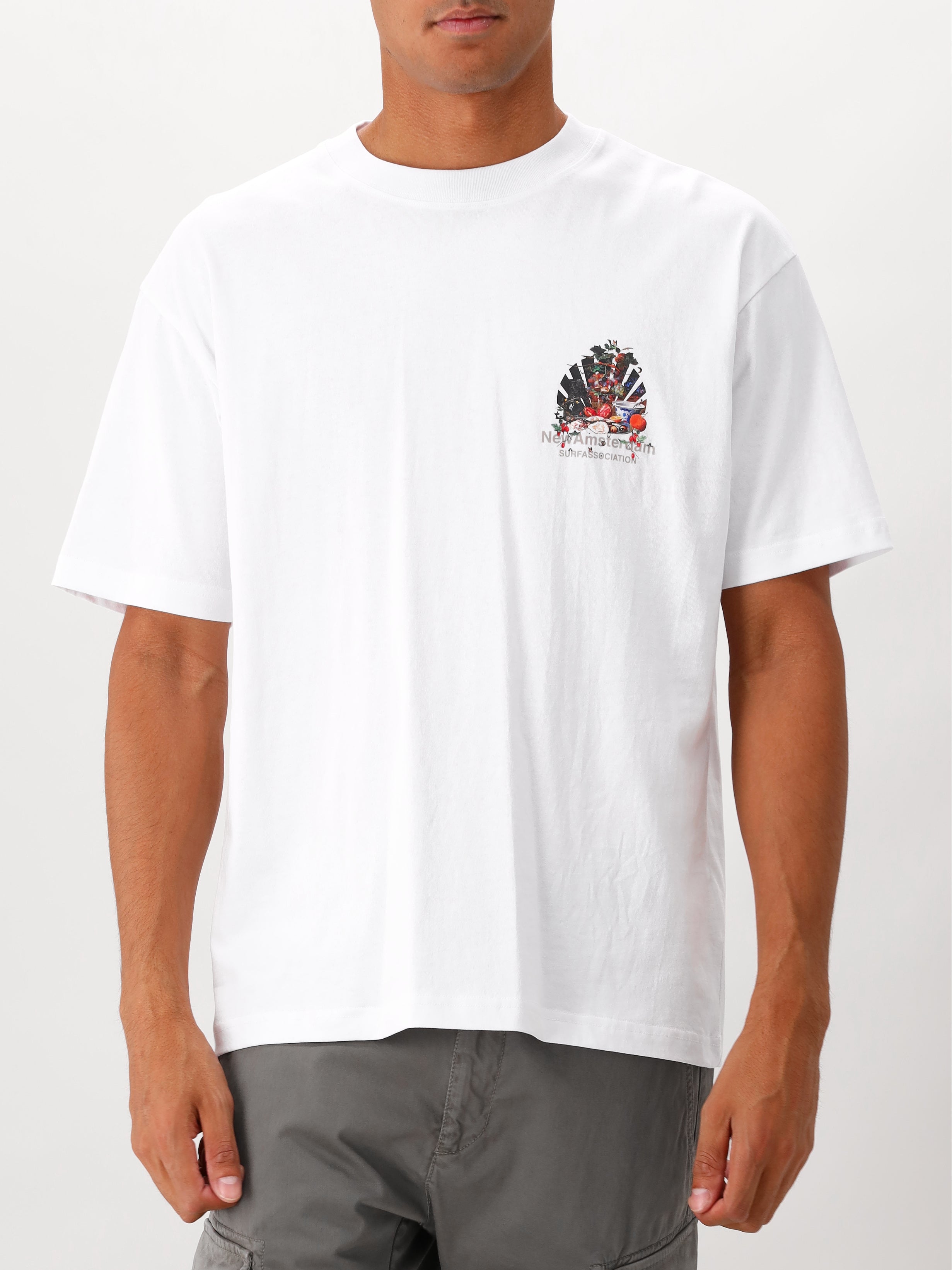 Maak een statement met dit excentrieke T-shirt van New Amsterdam Surf Association! Het T-shirt heeft een groot merkdesign op de rug in regelrechte herfstvibes. De witte kleur is perfect te stijlen op allerlei broeken. Het T-shirt heeft een oversized tot relaxed fitting.