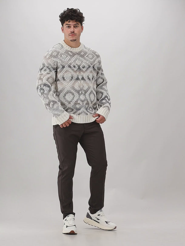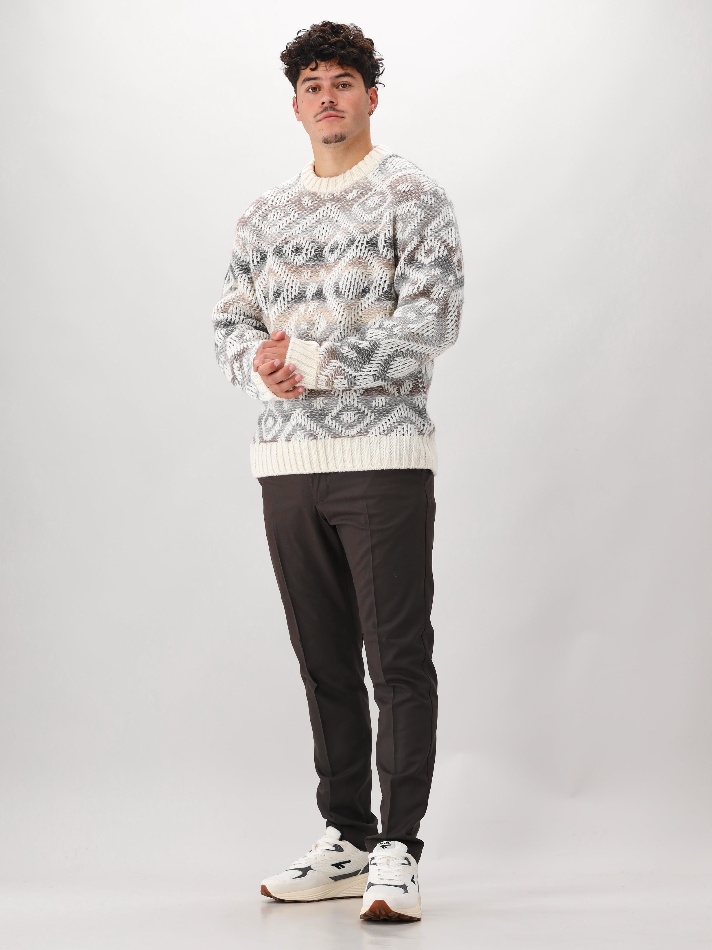 Deze gebreide trui van NN.07 heeft een stijlvol patroon. De grijze en beige kleuren zijn stijlvol en elegant. De gebreide trui bestaat uit een mix van onbewerkte wol en acryl.
