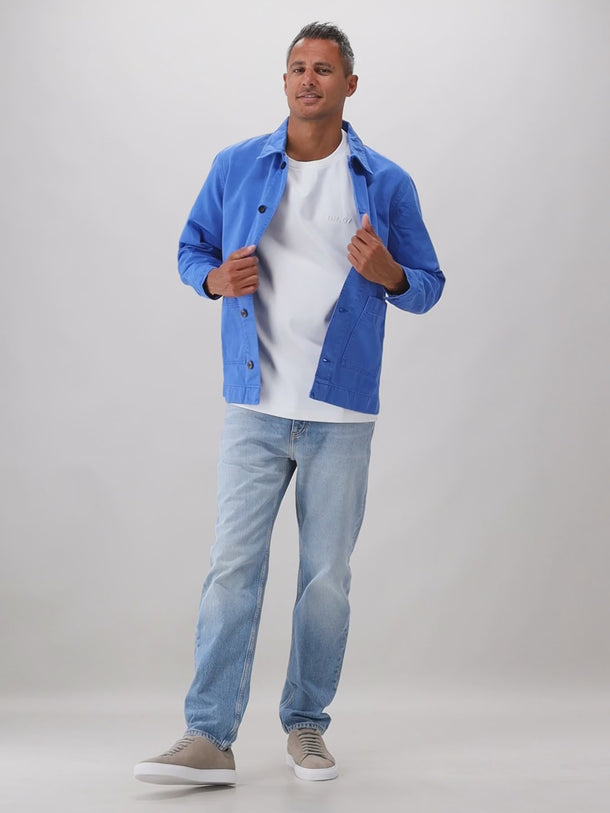 Steel de show dankzij deze blauwe spijkerjas van NN.07. De jas heeft een knoopsluiting, op een van de steekzakken aan de voorzijde vind je het merklogo geborduurd terug in eenzelfde kleur.