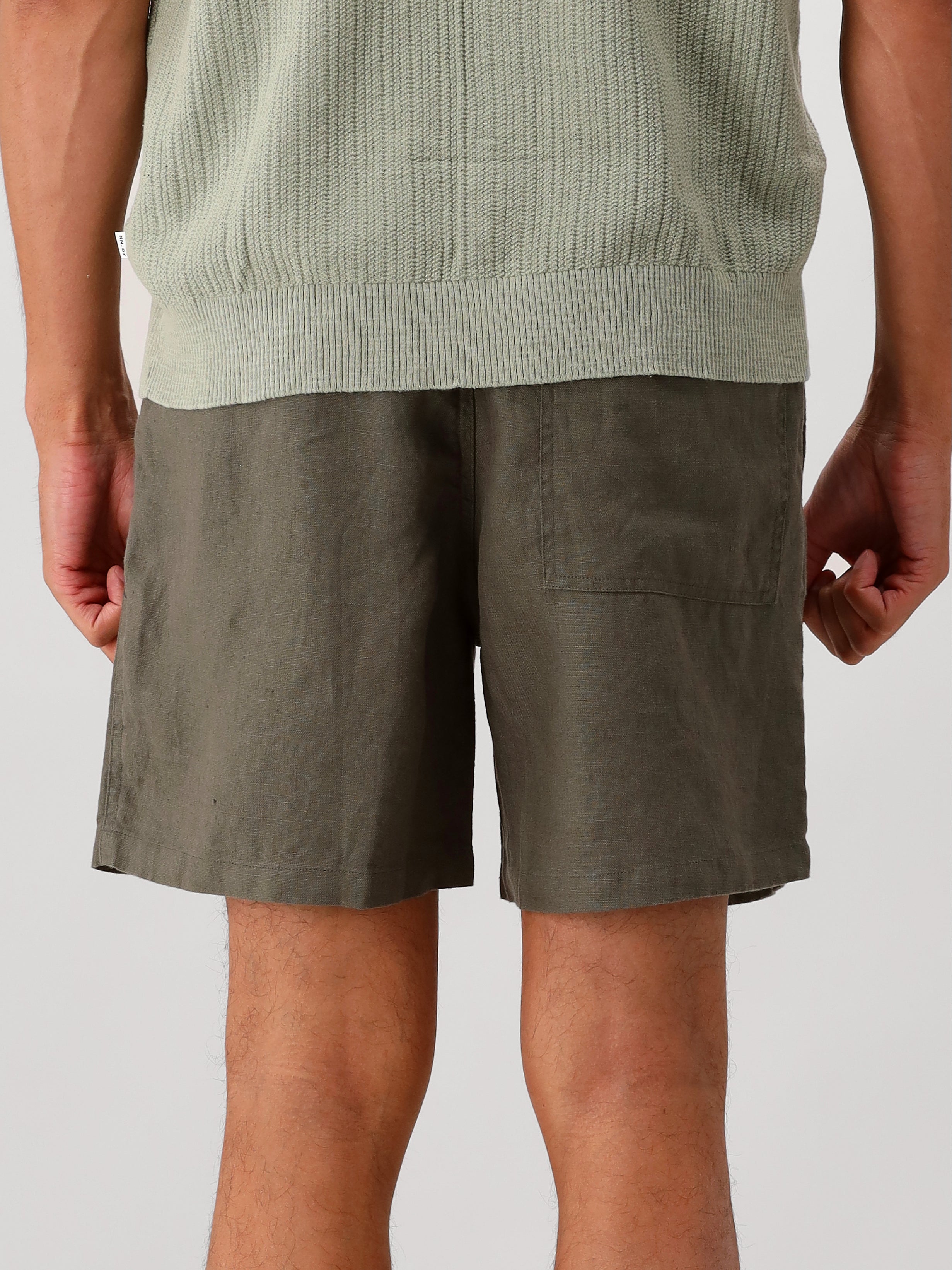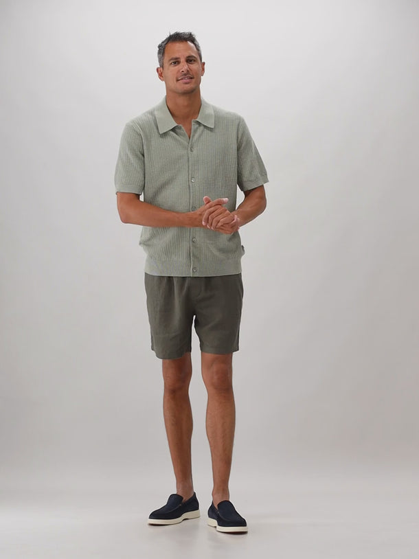 De NN.07 Korte Broek Gregor Shorts 1454 in groen zijn comfortabele, moderne korte broeken voor heren. Ze hebben een elastische tailleband met een beige trekkoord voor een verstelbare pasvorm. De broek is voorzien van twee zijzakken en een achterzak. Door het materiaal van de broek is het ideaal voor de warme dagen.