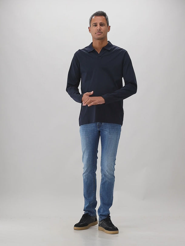 NN.07 Lange Mouwen Polo Blauw Paul LS 3525