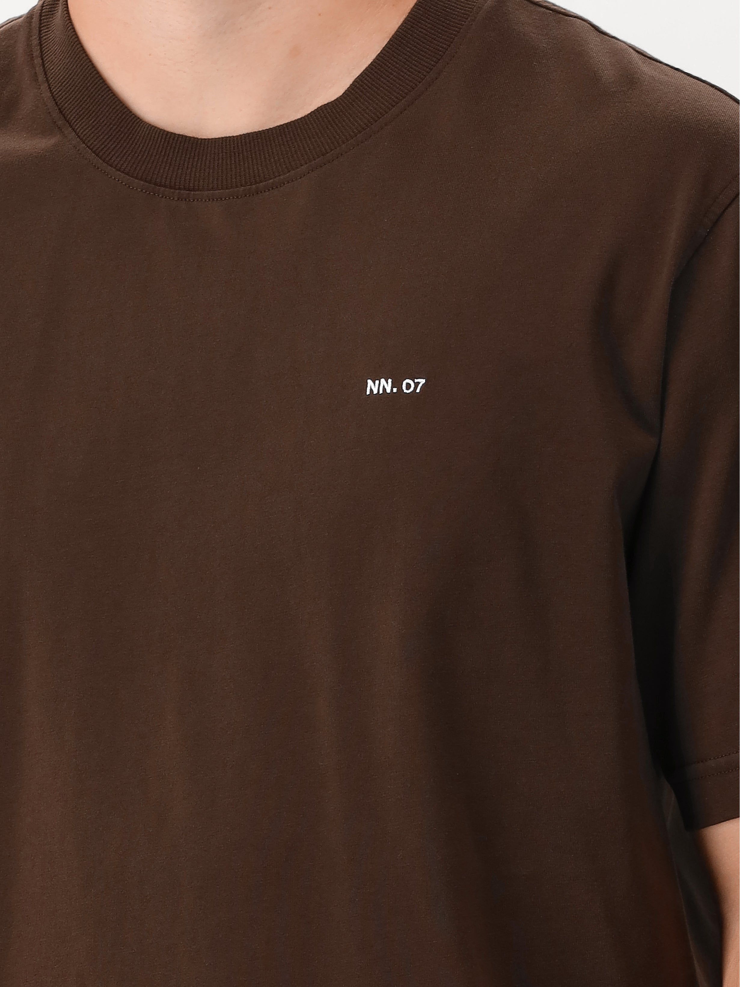 Dit bruine T-shirt van NN.07 bestaat volledig uit hoogwaardig supima katoen en heeft hierdoor een lichte glans. Op de borst vind je een klein merklogo geborduurd terug. Hierdoor heeft het item een minimalistische look. Het T-shirt heeft een relaxed fitting.