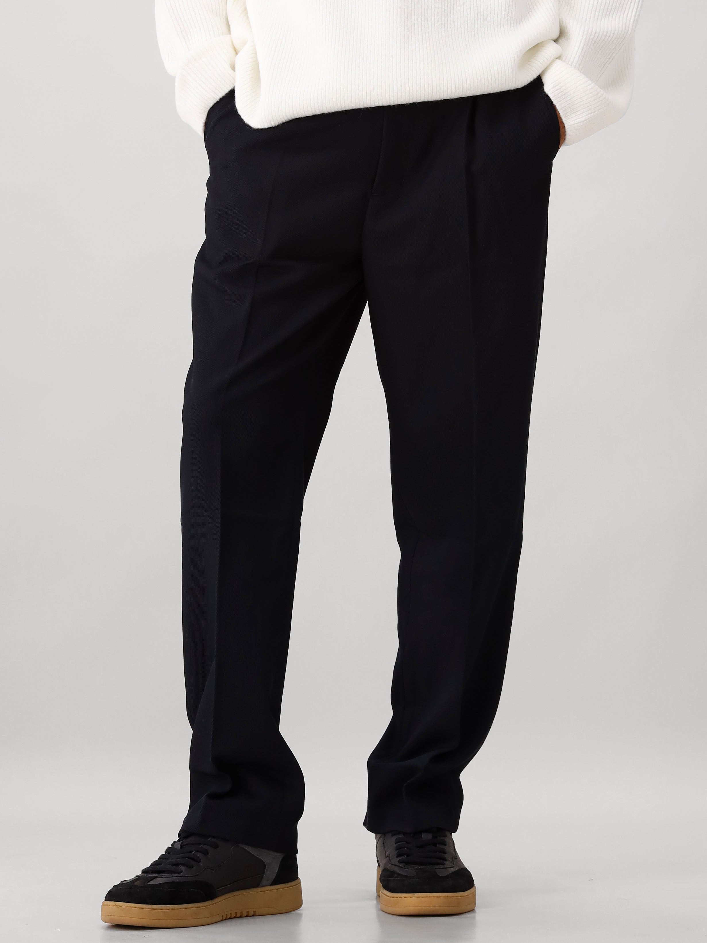 Ølaf Broek Navy Blauw Regular Twill Pleated