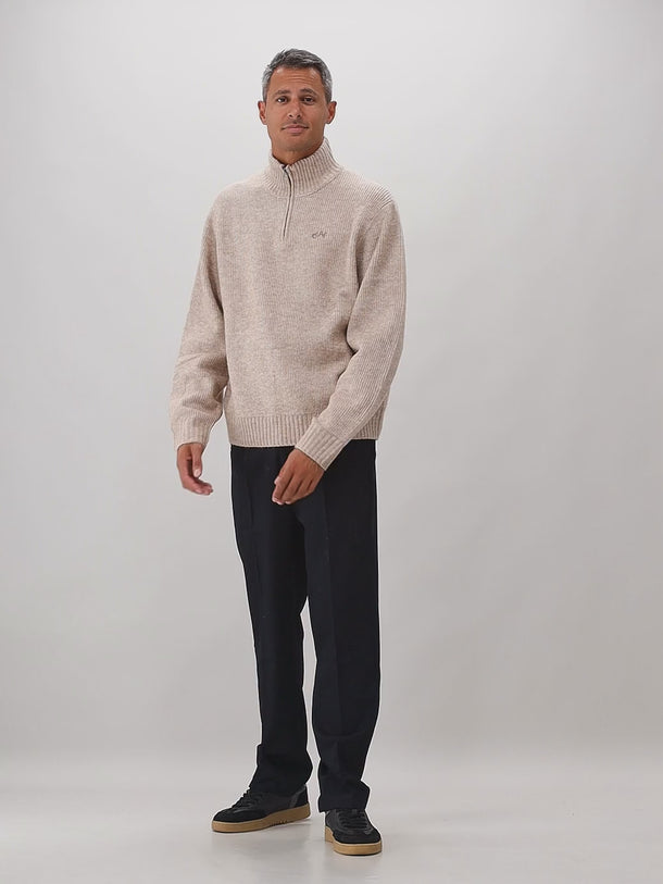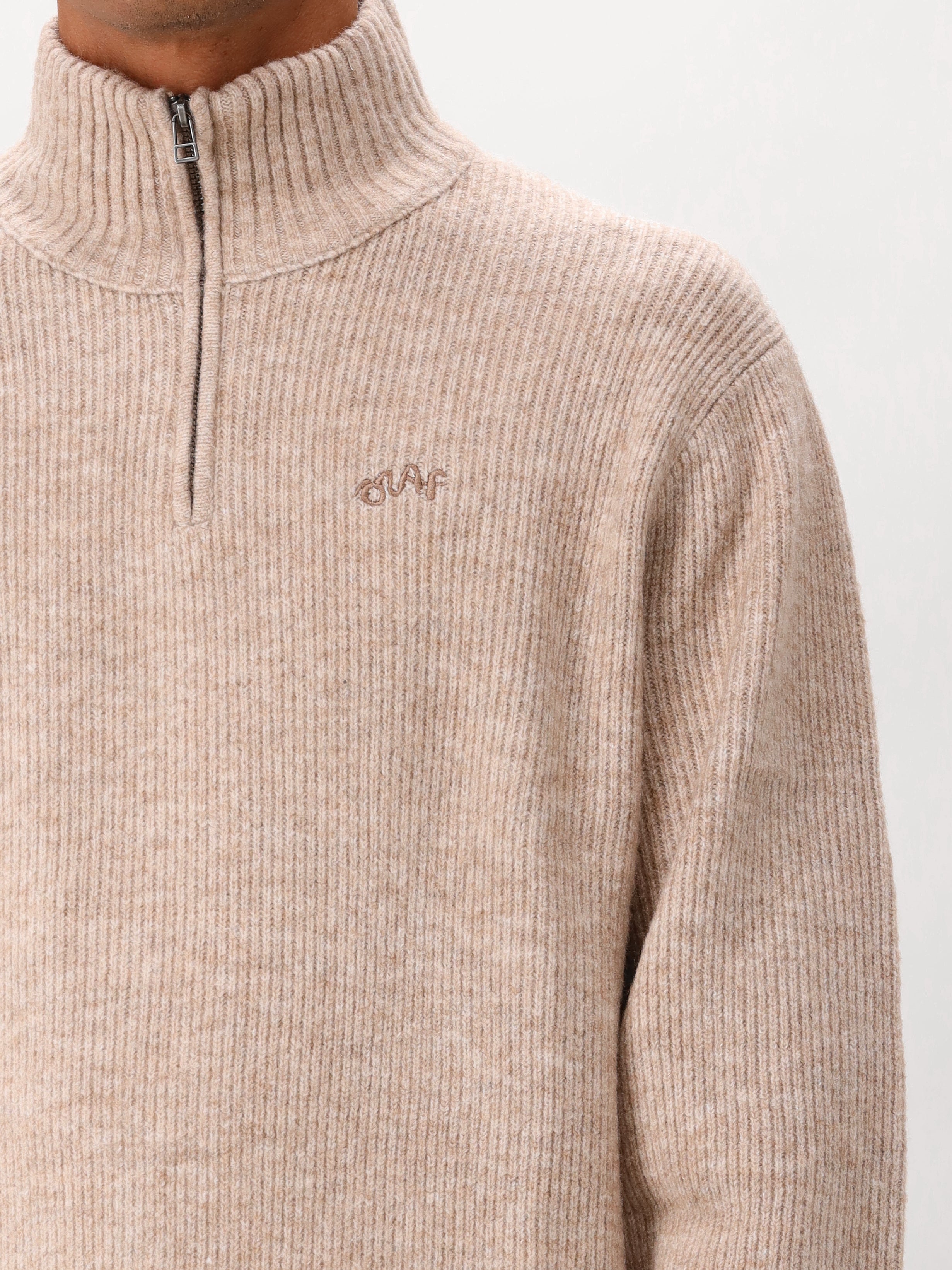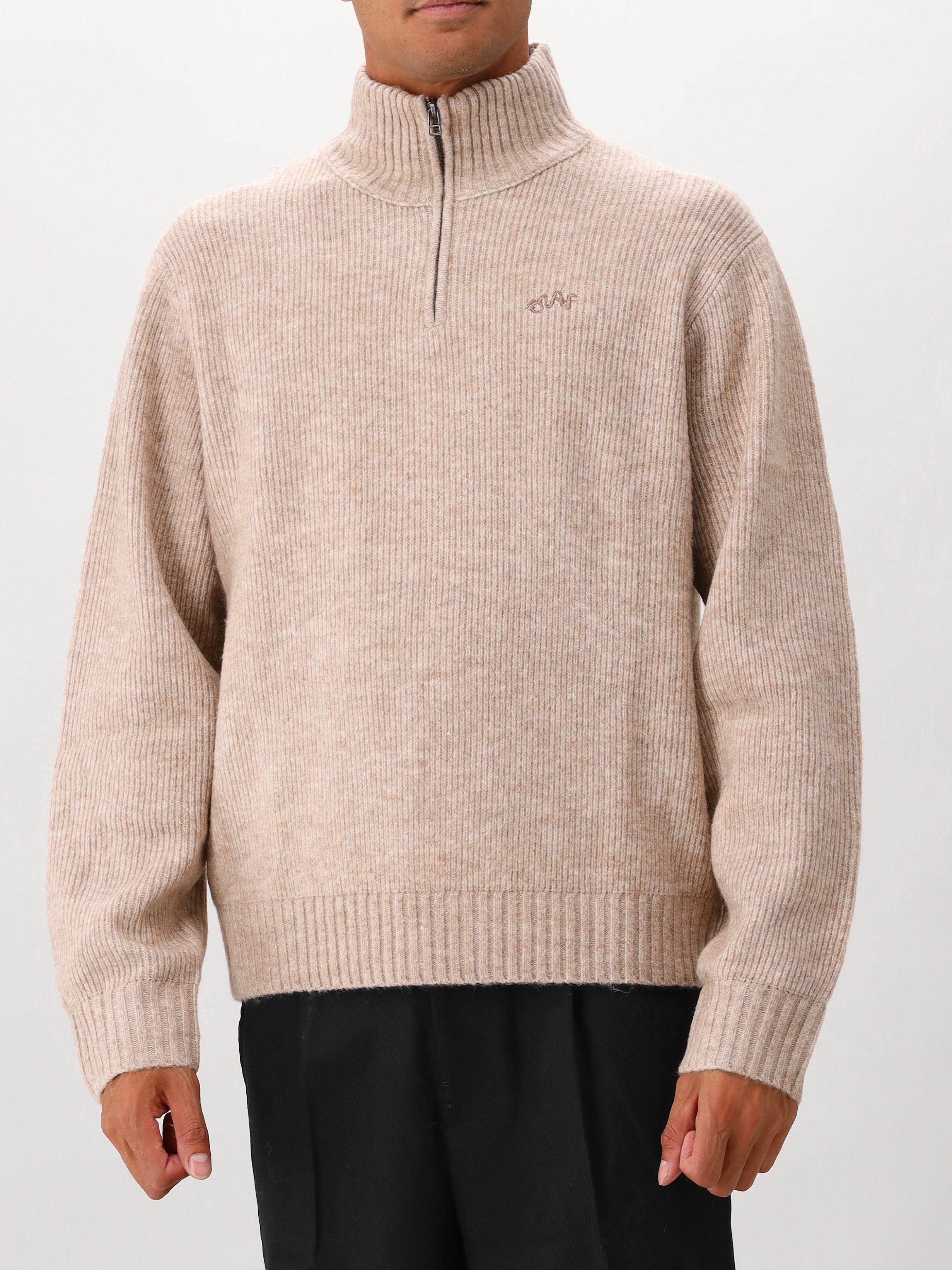 Ølaf Gebreide Trui Beige Signature Knitted Zip Mock