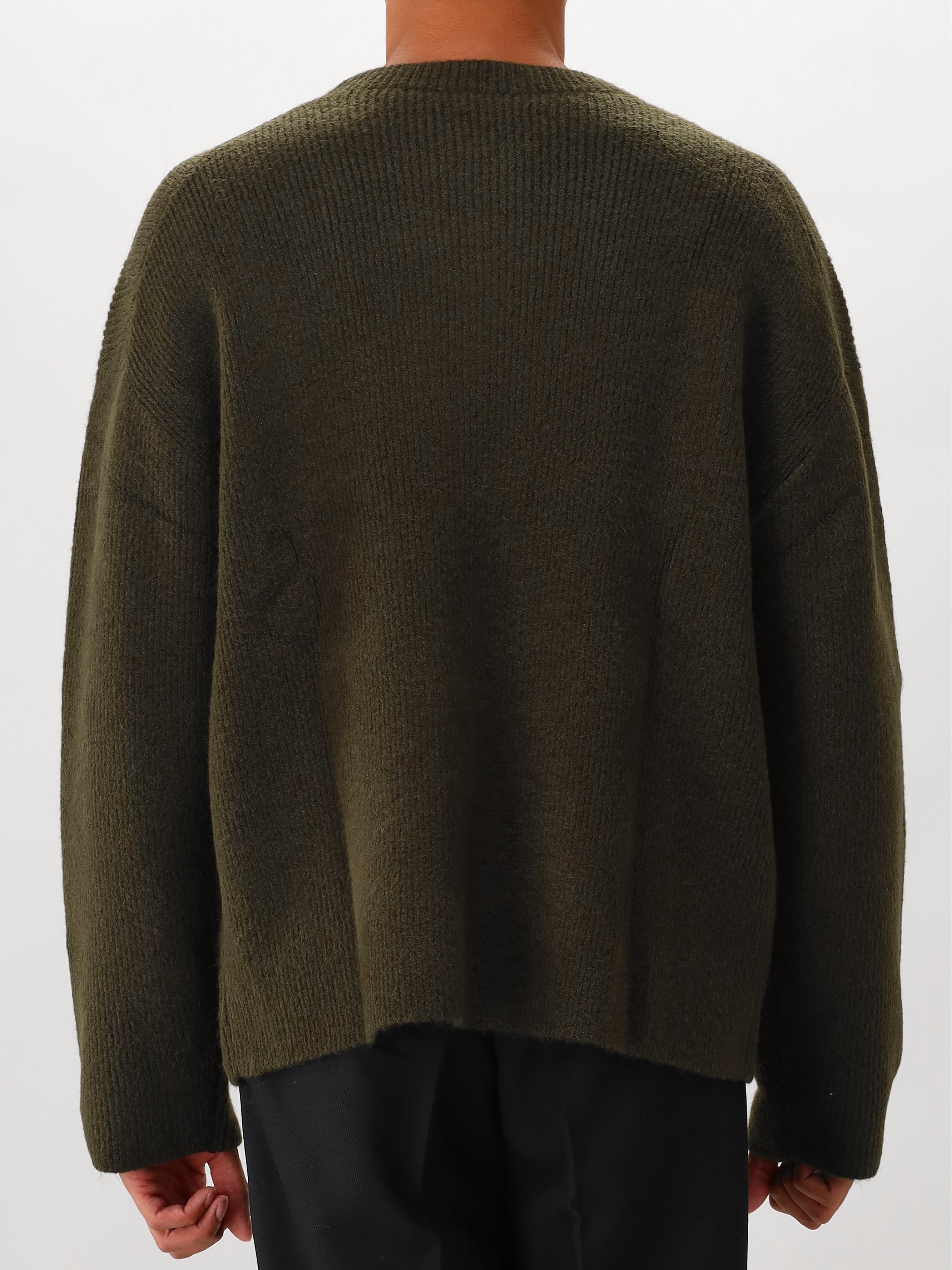 Deze oversized groene gebreide trui van ØLÅF bestaat uit een mix van verschillende stoffen. Op de borst vind je een klein merklogo terug. De groene kleur is stijlvol en een waar statement op jouw outfit!